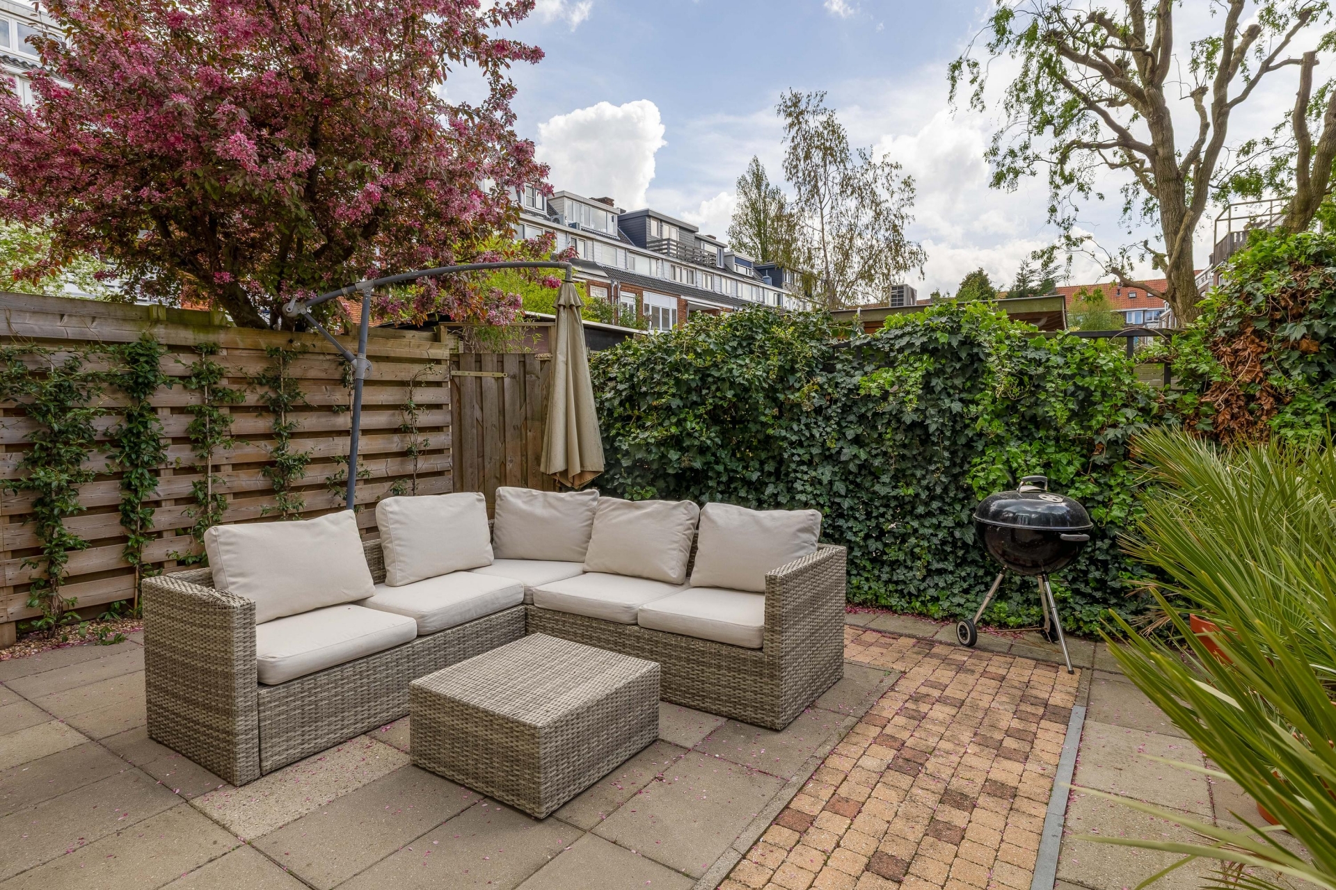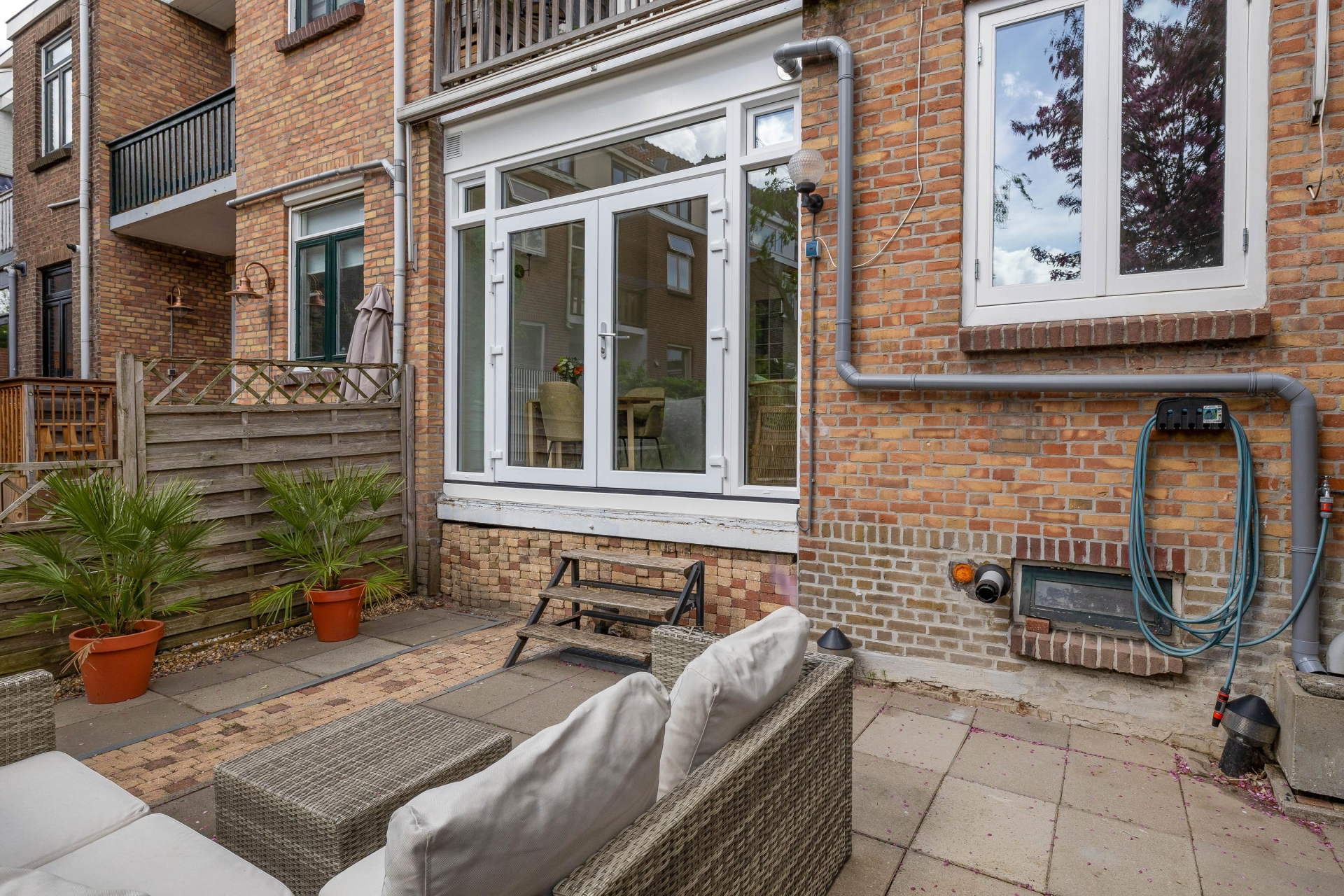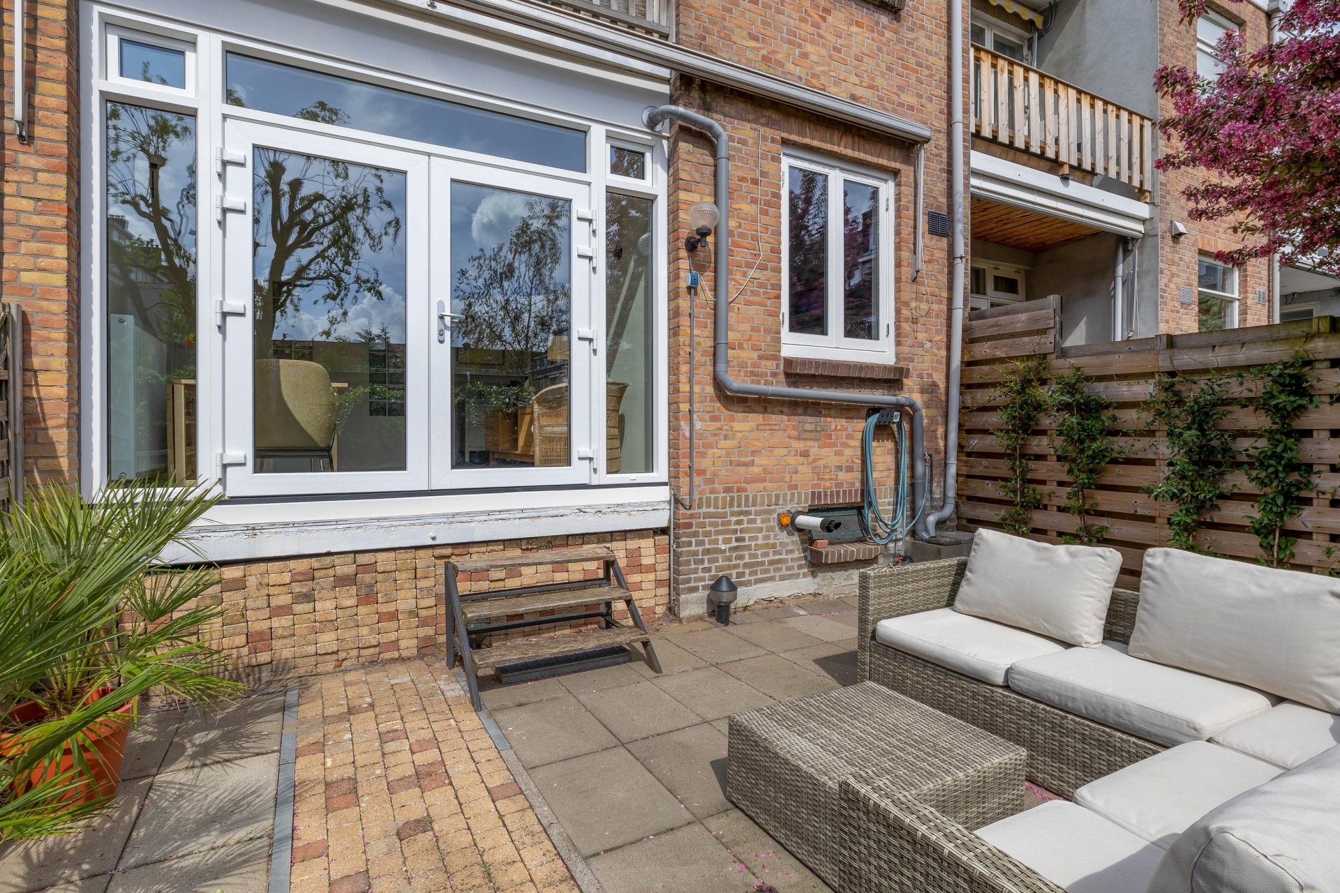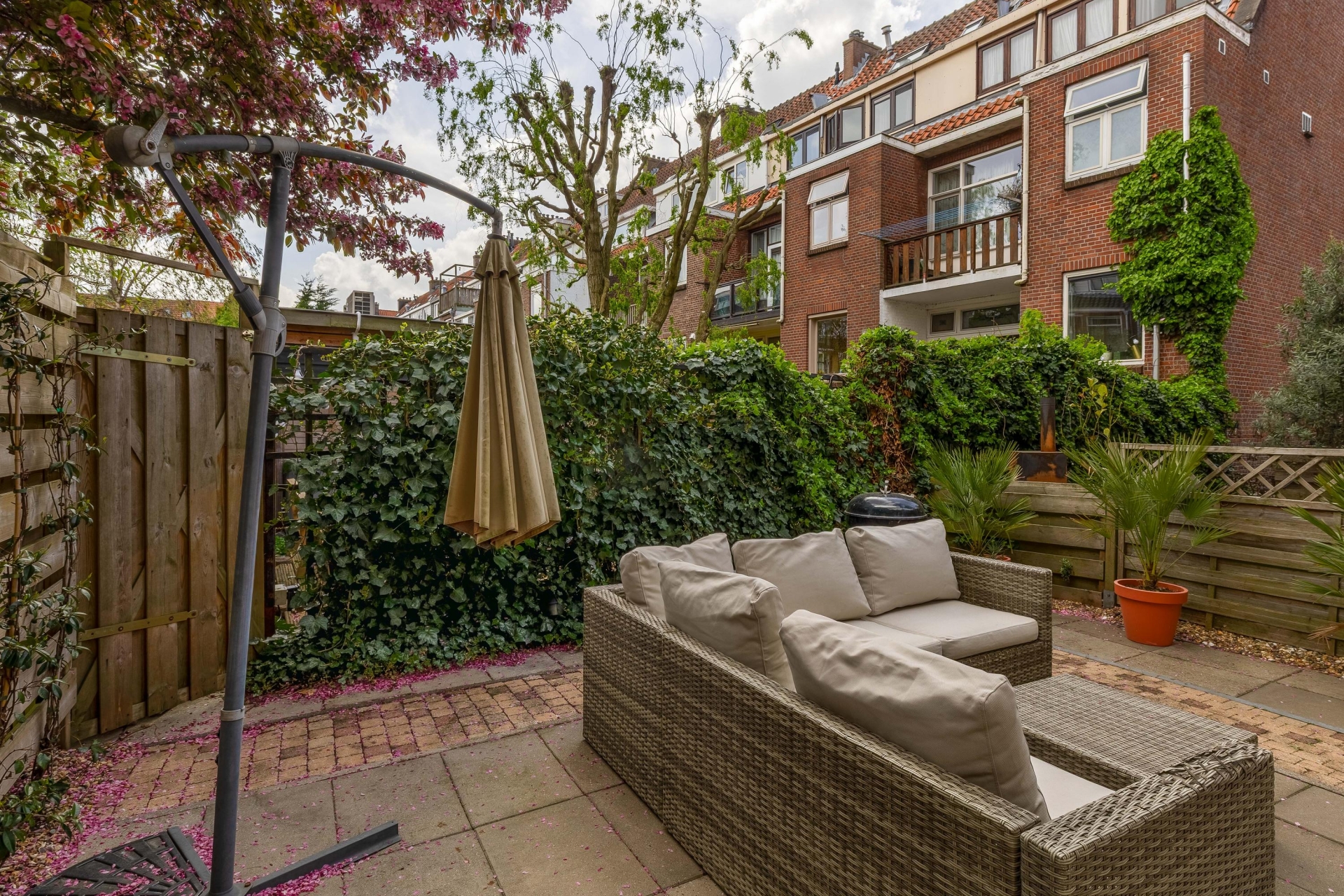 De tuin is netjes aangelegd en biedt voldoende privacy. Een fijne buitenruimte zoals deze kom je niet vaak tegen bij een appartement, zeker niet op zo’n centrale locatie.