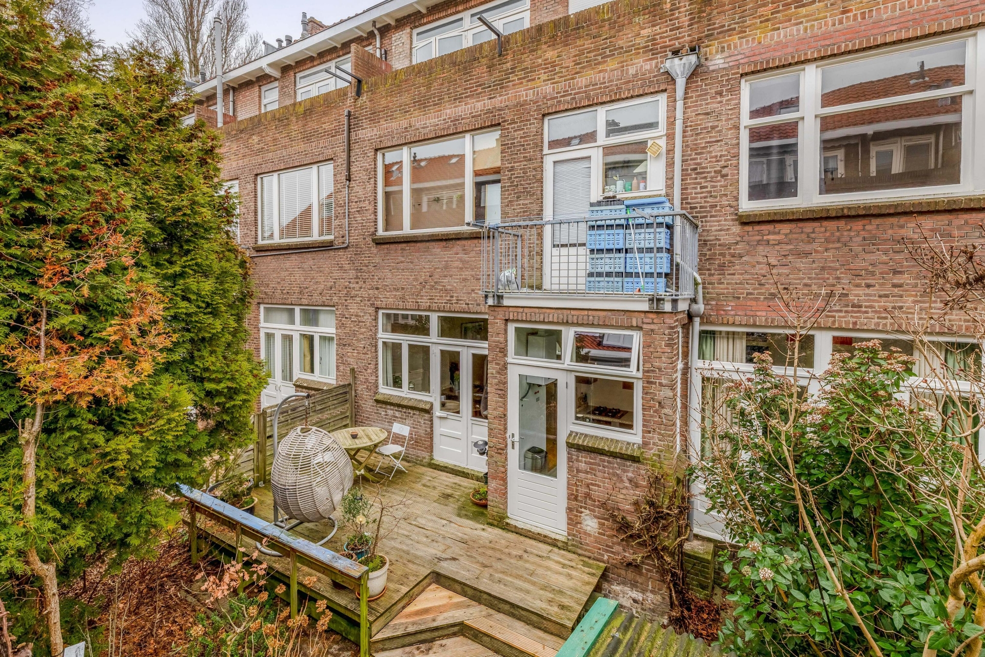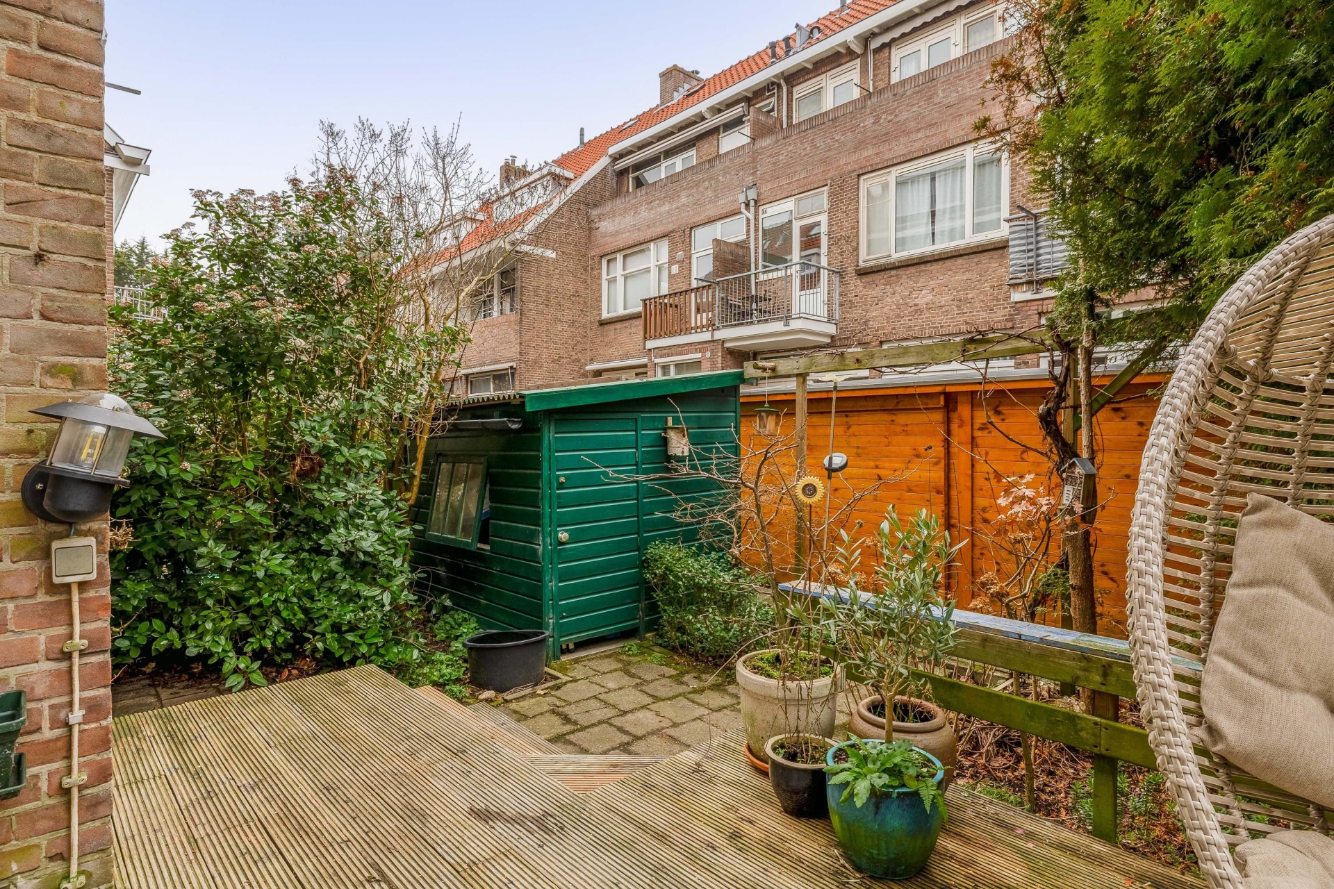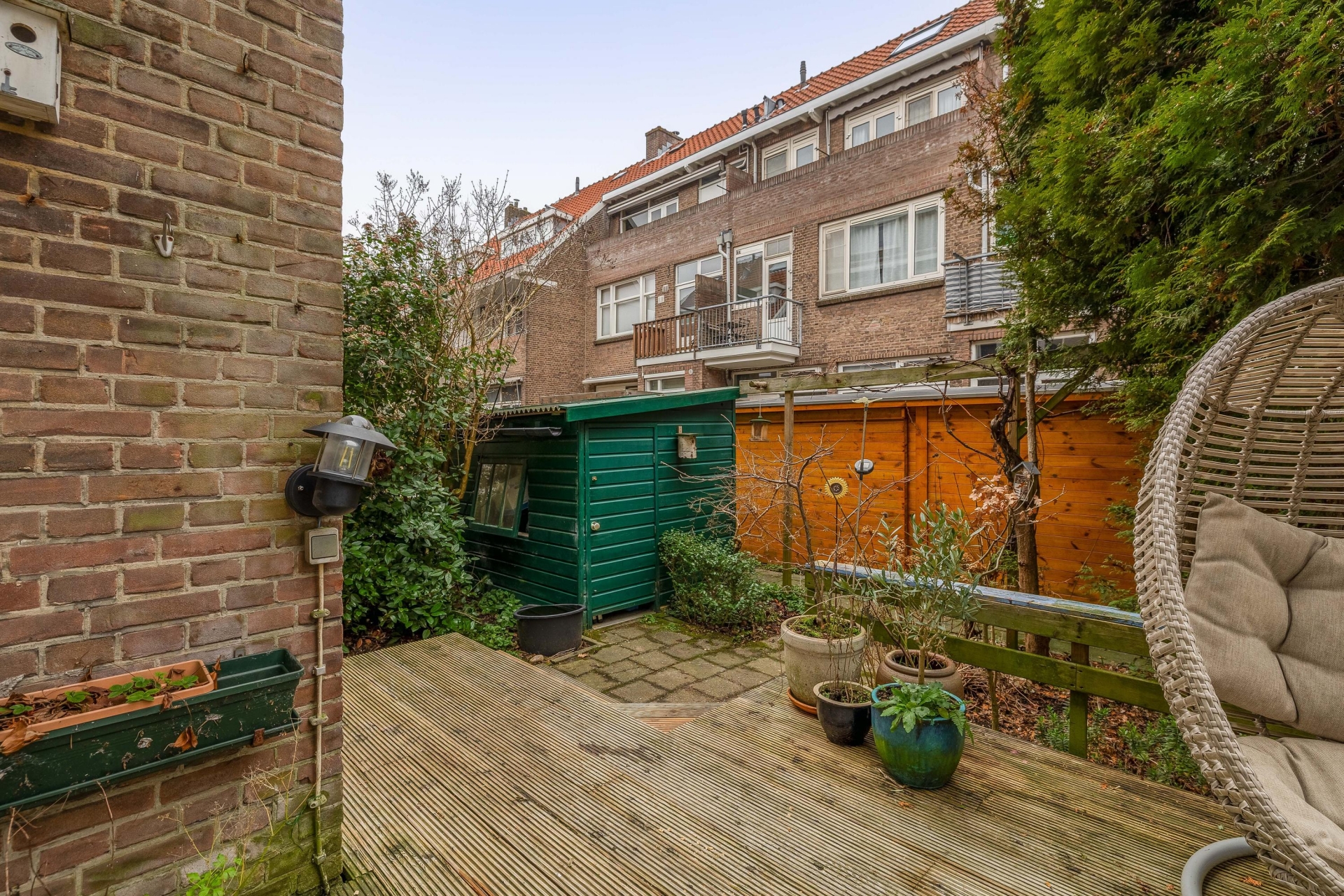 Aan de voorzijde van het huis ligt een nette voortuin die zorgt voor een prettige entree en extra privacy. De achtertuin op het noordwesten is een echte bonus in de stad: hier geniet je van middag- en avondzon. Perfect voor een borrel na werk of ontspannen barbecue met vrienden.