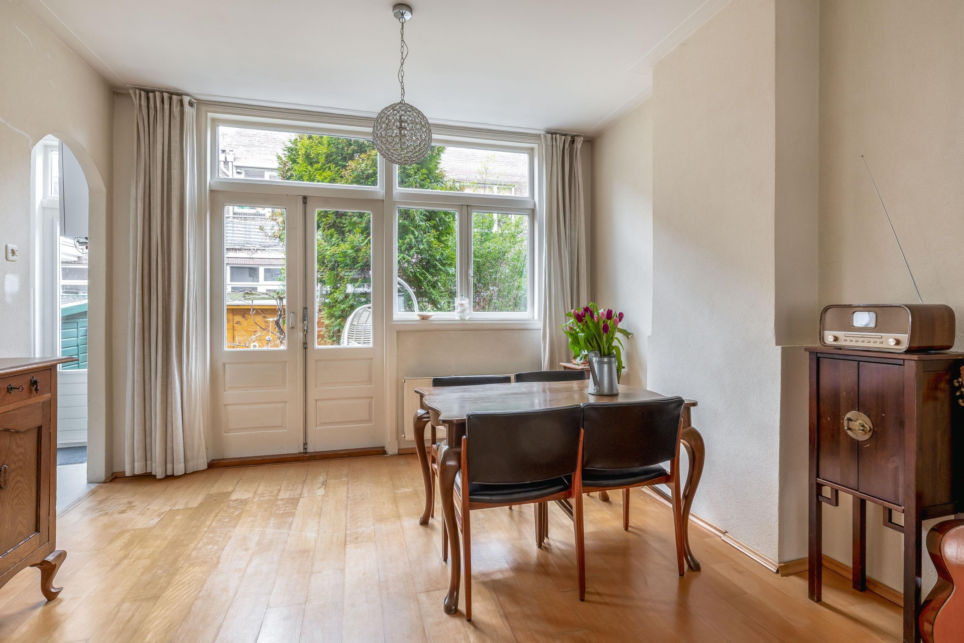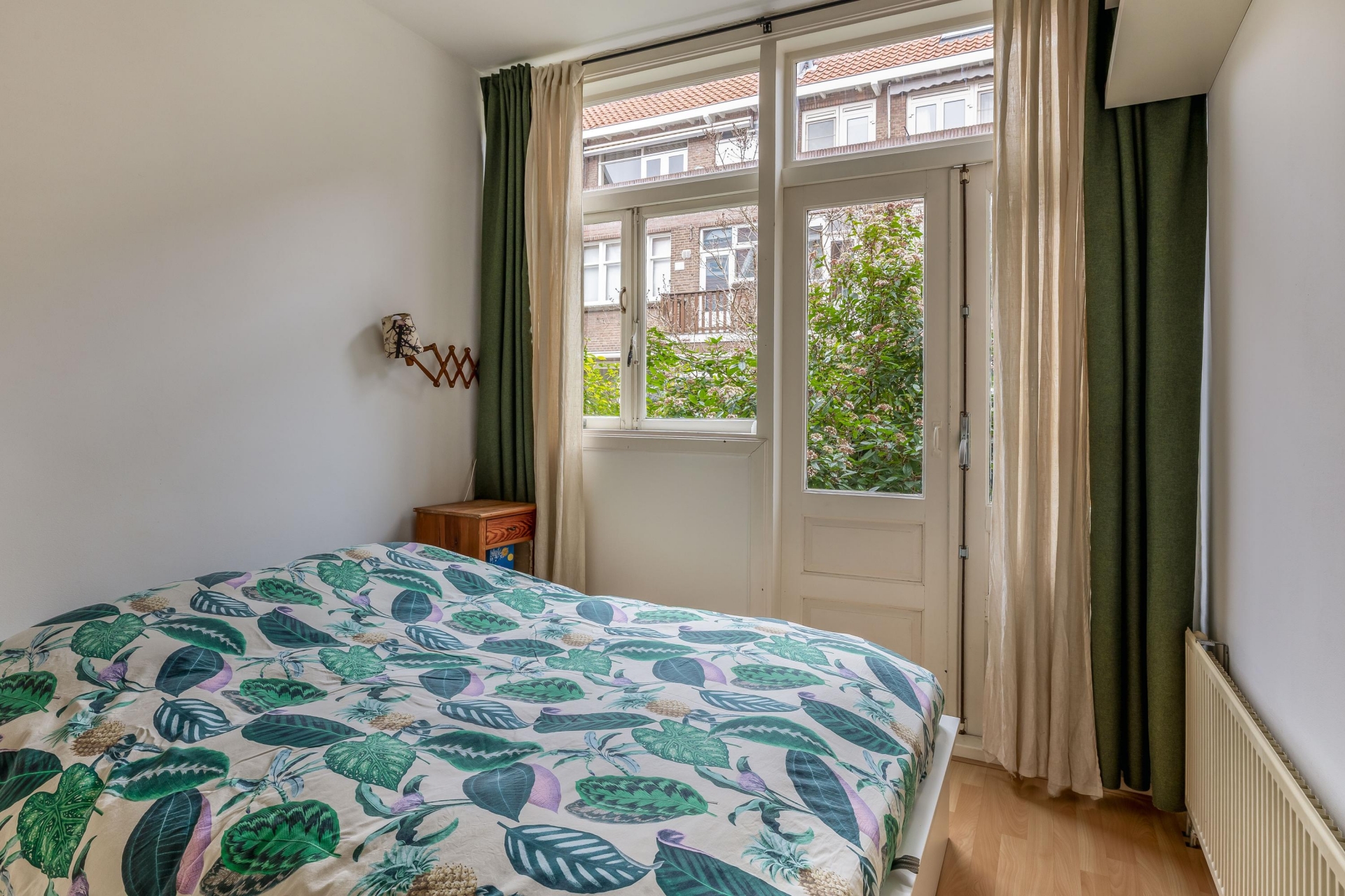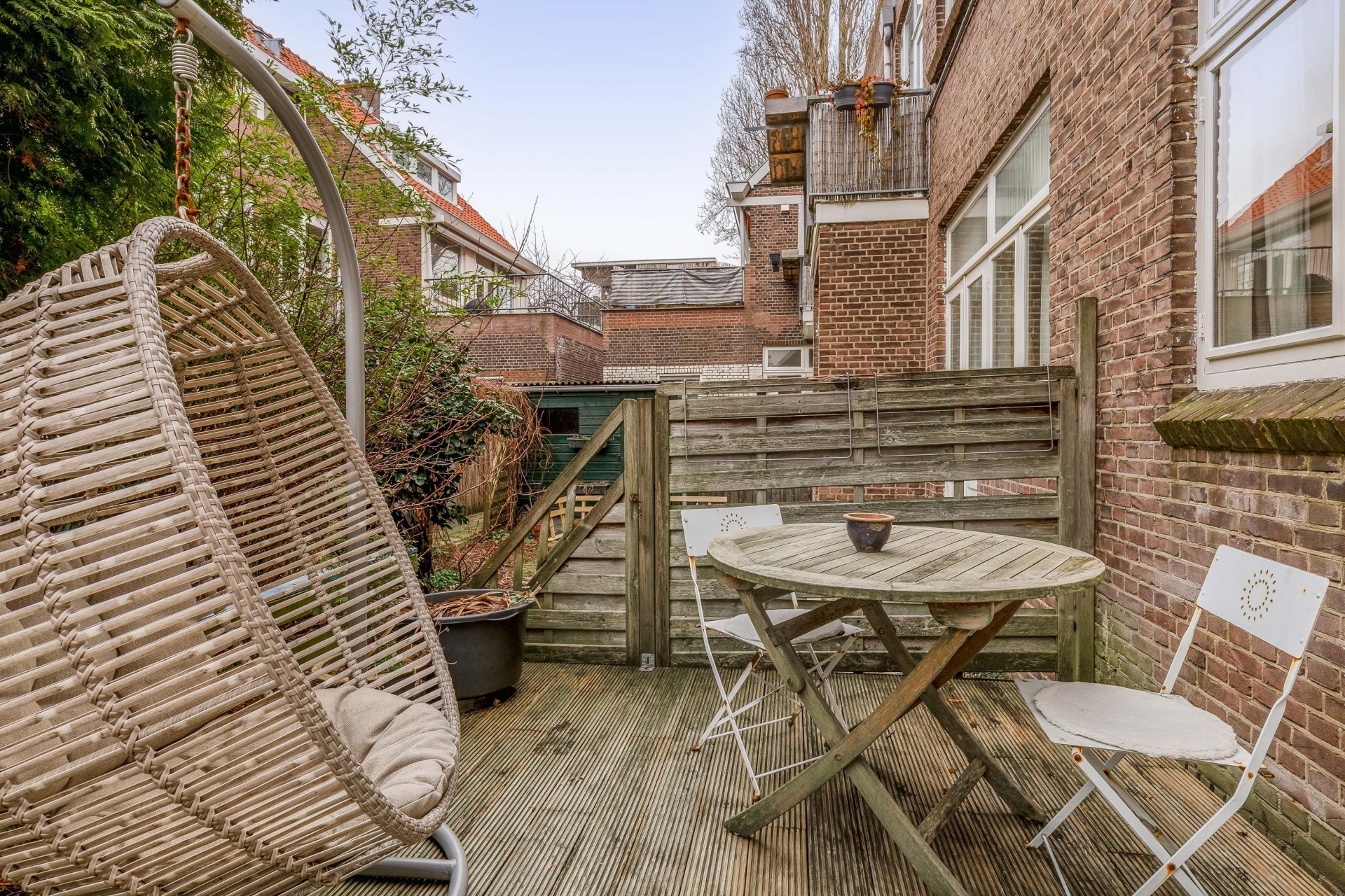Aan de voorzijde van het huis ligt een nette voortuin die zorgt voor een prettige entree en extra privacy. De achtertuin op het noordwesten is een echte bonus in de stad: hier geniet je van middag- en avondzon. Perfect voor een borrel na werk of ontspannen barbecue met vrienden.