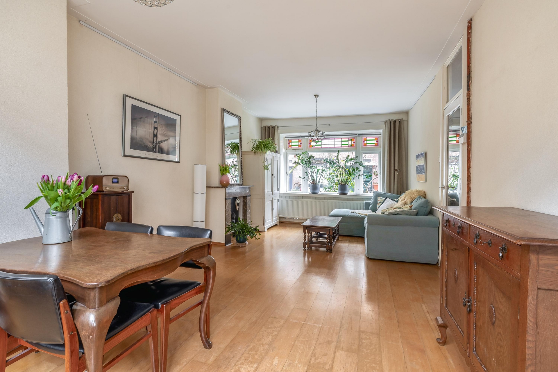 Toen ik 19 jaar geleden dit huis zag, was ik op slag verliefd op de erker met het glas in lood, de lichtinval, de openslaande deuren. Met heel veel plezier heb ik geleefd in dit fijne huis, in deze rustige straat. Meesjes en merels heb ik hun vleugeltjes zien uitslaan in mijn achtertuin. Rust in huis en tuin of in 10 minuten in de reuring van de stad, de keuze is aan jou/jullie.