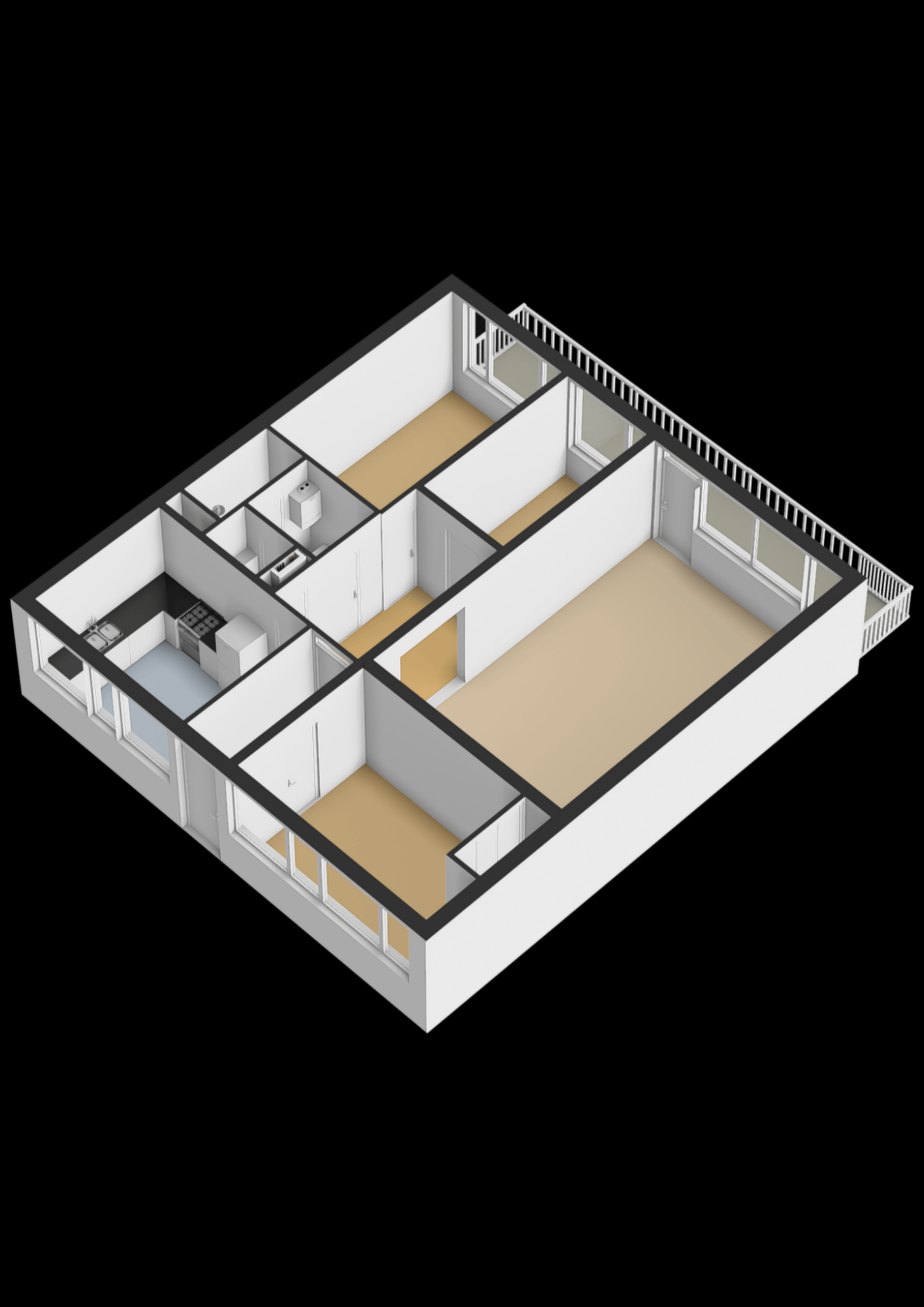 De indeling van het appartement is efficiënt en overzichtelijk. De woonkamer biedt ruimte voor een fijne zithoek én een eethoek, terwijl de aangrenzende keuken praktisch is ingedeeld en beschikt over voldoende opberg- en werkruimte. Via de hal bereik je de drie verschillende slaapkamers, badkamer en het separate toilet. Alles is netjes afgewerkt en biedt een prima basis voor wie direct wil wonen of het op termijn naar eigen wens wil moderniseren.