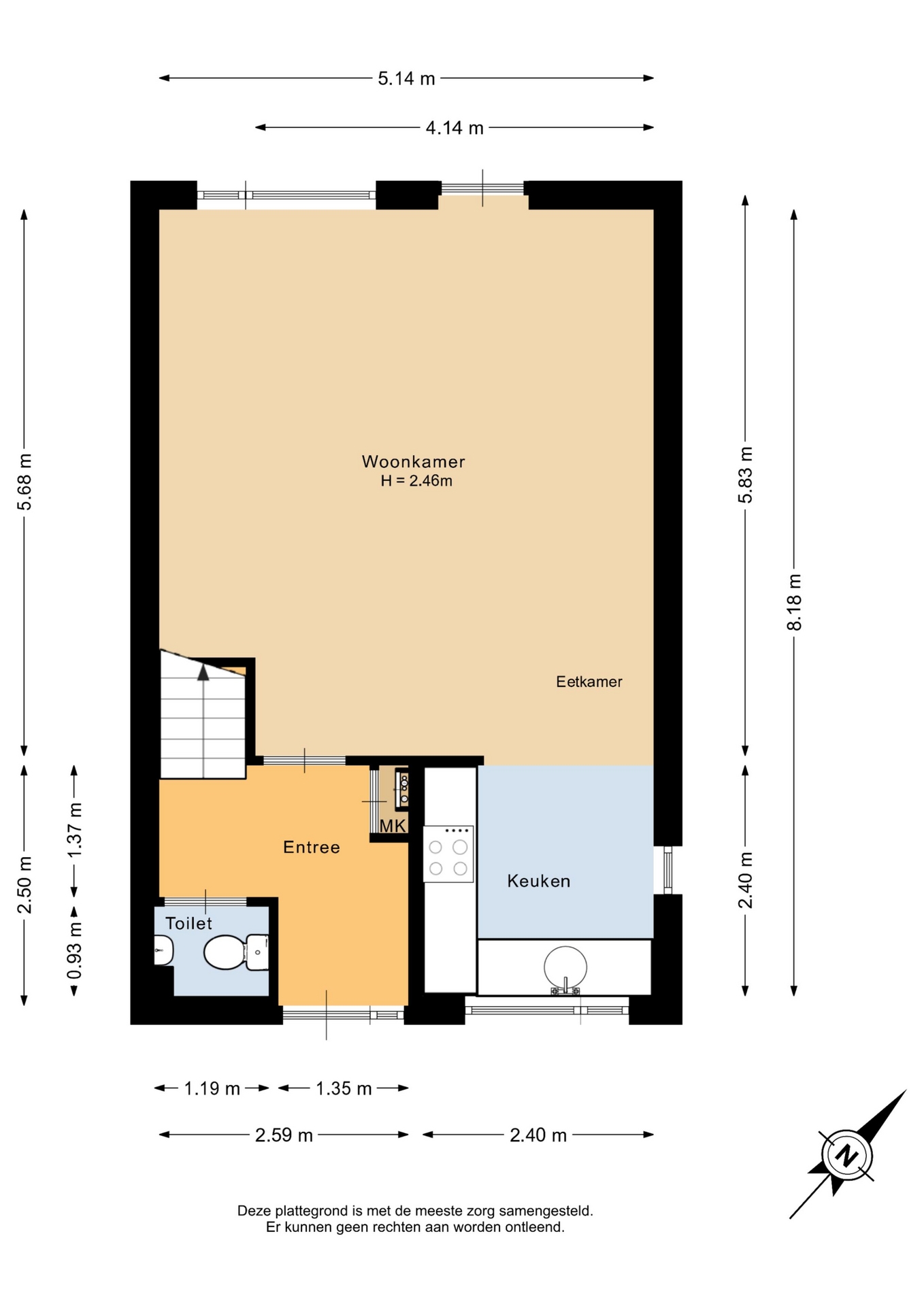 “Deze informatie is door ons met de nodige zorgvuldigheid samengesteld. Onzerzijds wordt echter geen enkele aansprakelijkheid aanvaard voor enige onvolledigheid, onjuistheid of anderszins, dan wel de gevolgen daarvan. Alle opgegeven maten en oppervlakten zijn indicatief.”