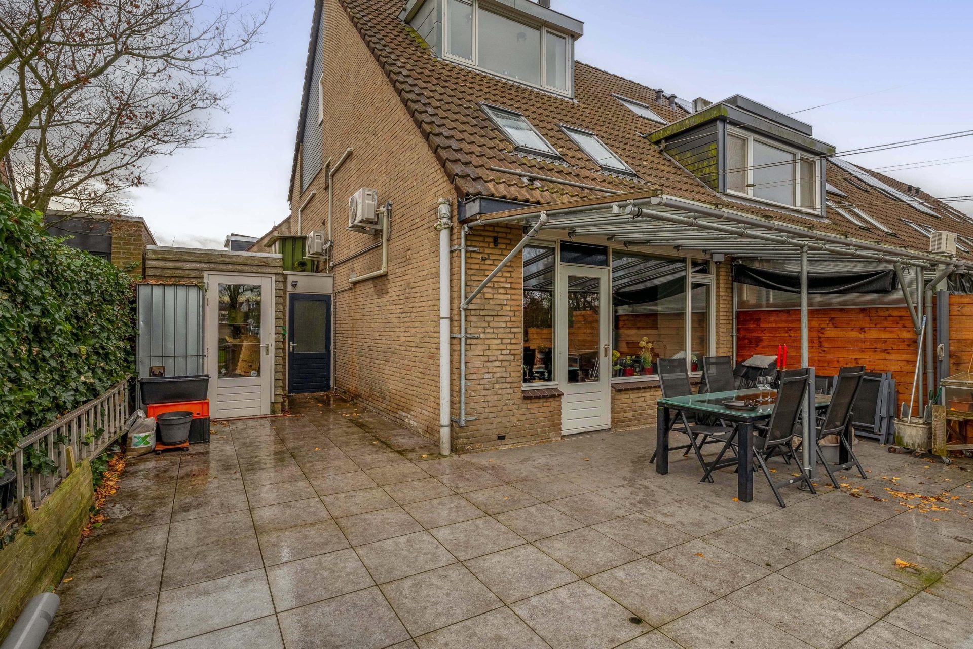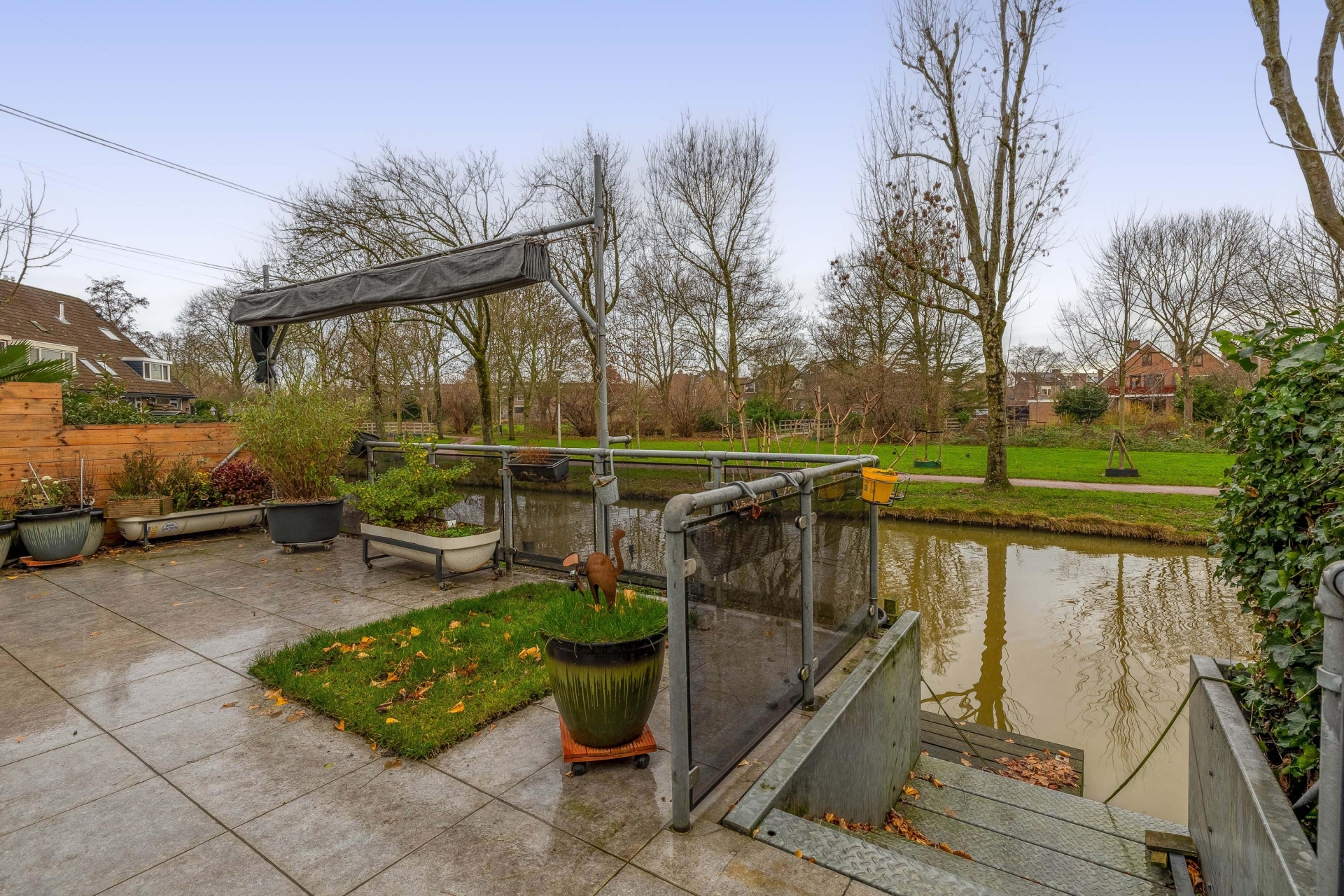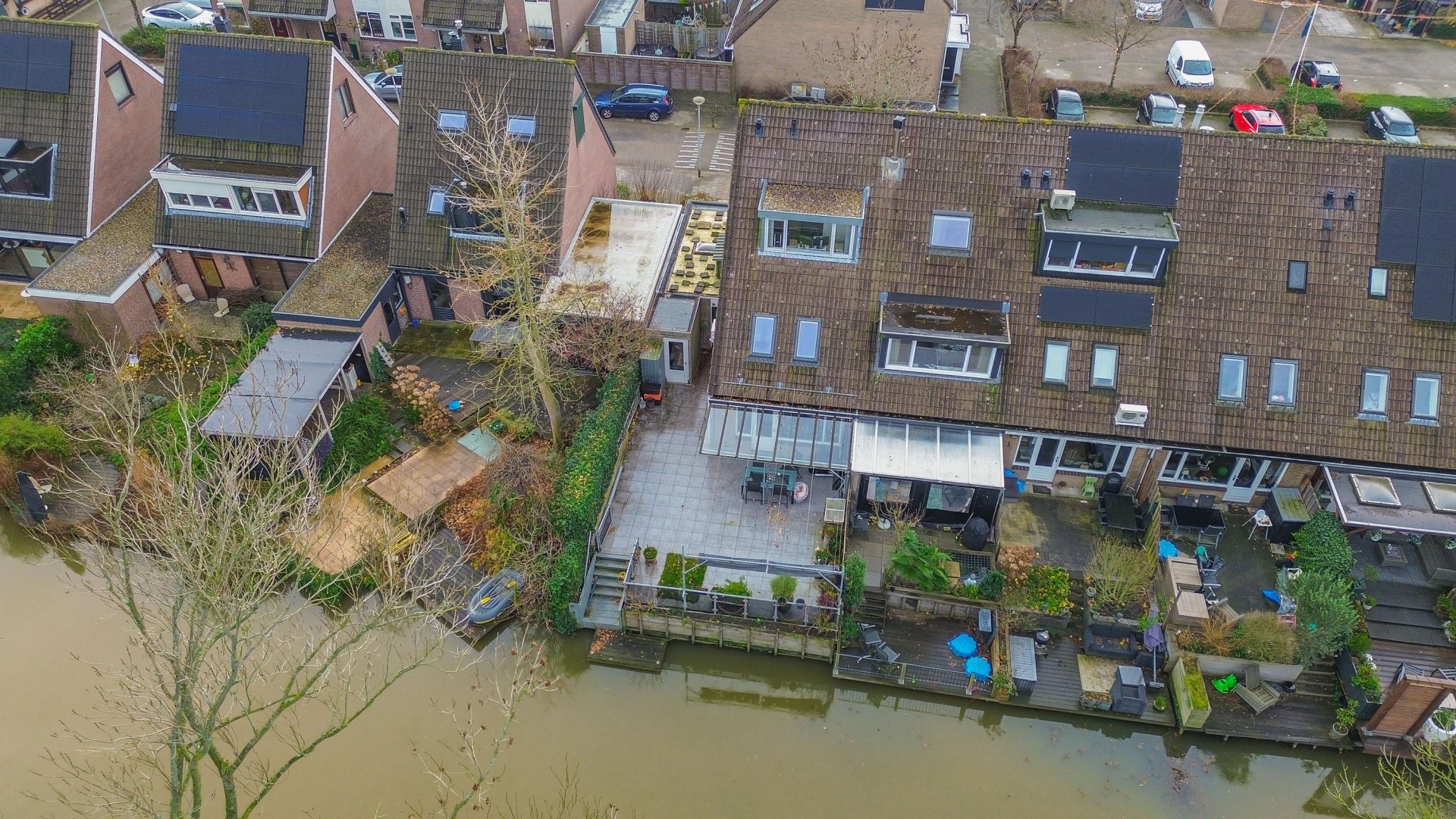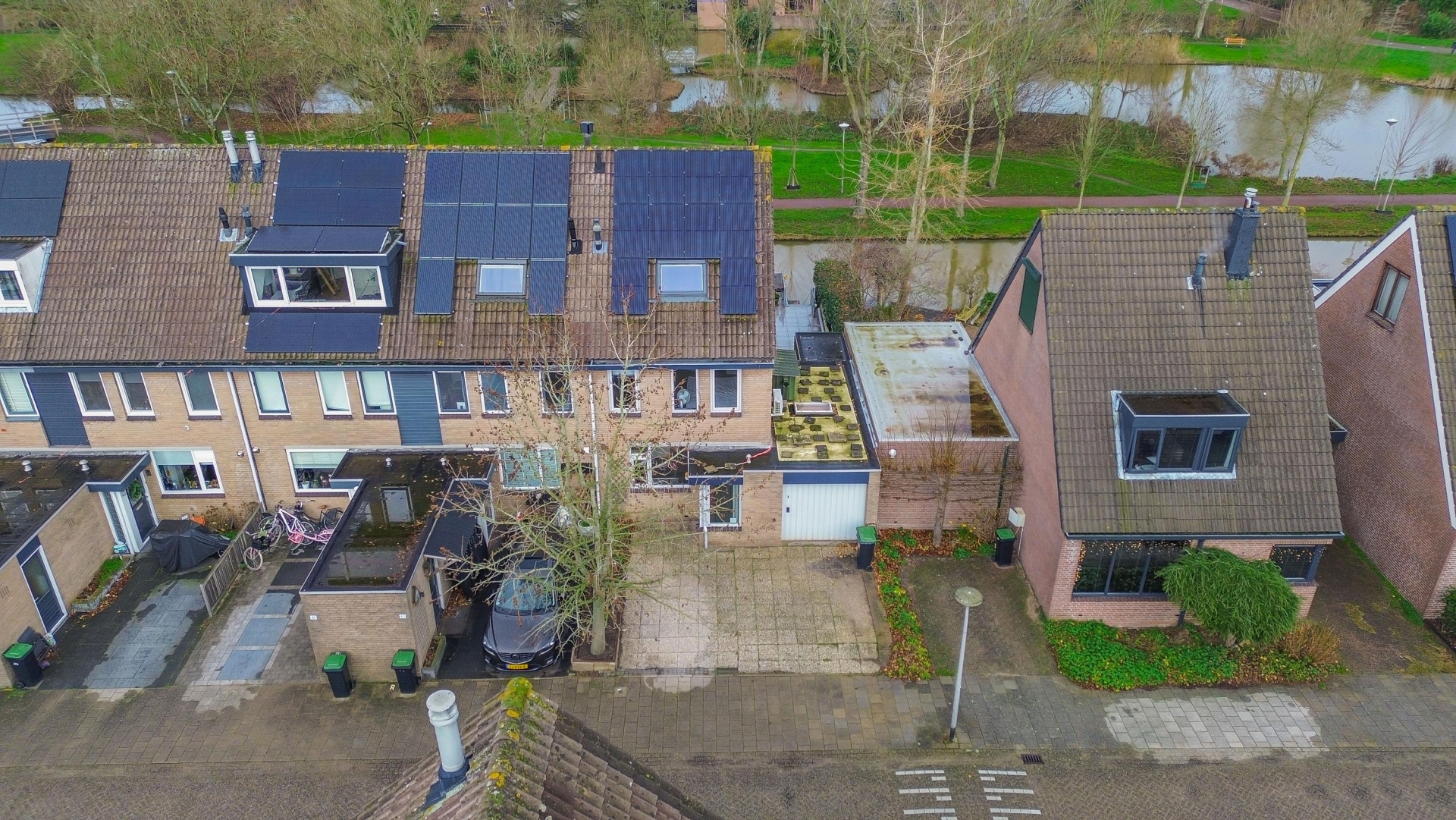 Het uitzicht aan de achterzijde is een ware eyecatcher! De tuin grenst namelijk aan een park met water waardoor er heerlijk van alle rust genoten kan worden. De achtertuin is onderheid waardoor zelfs een uitbouw mogelijk is. Er is een stalen trap naar het water, deze beschikt over een vlonder. Verder is er een stalen overkapping met veiligheidsglas aan de woning aanwezig, een houten berging en biedt de tuin toegang tot de garage. In de garage is een motorheftafel verwerkt in de vloer. Ook de ligging van de tuin is ideaal, namelijk op het noordwesten. Dit betekent dat in de middag tot laat in de avond heerlijk genoten kan worden van de zon. Wat wil je nog meer?