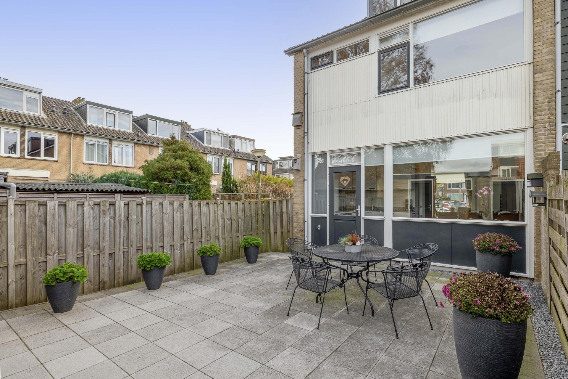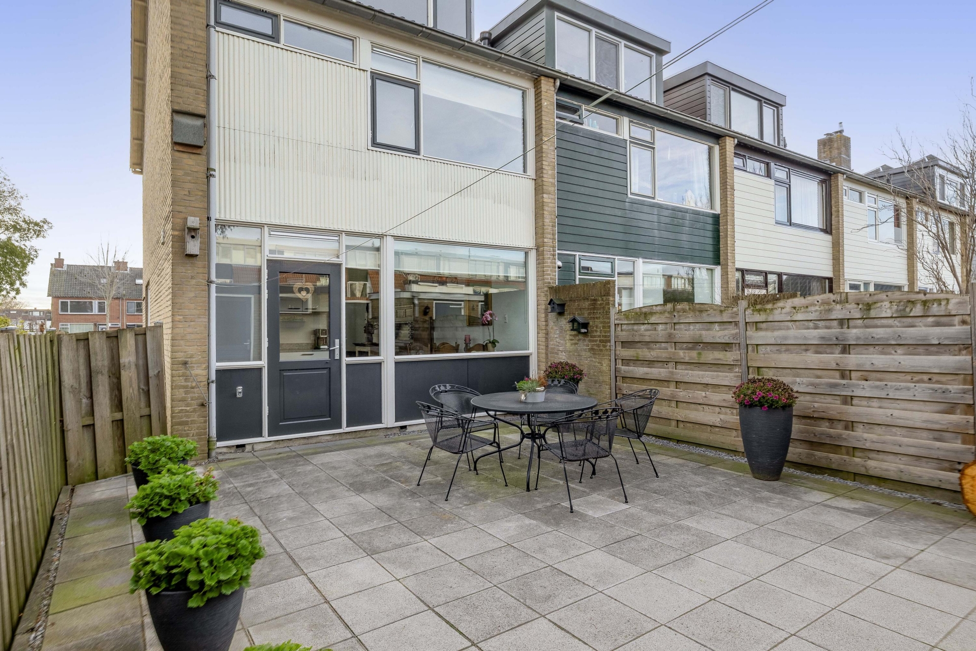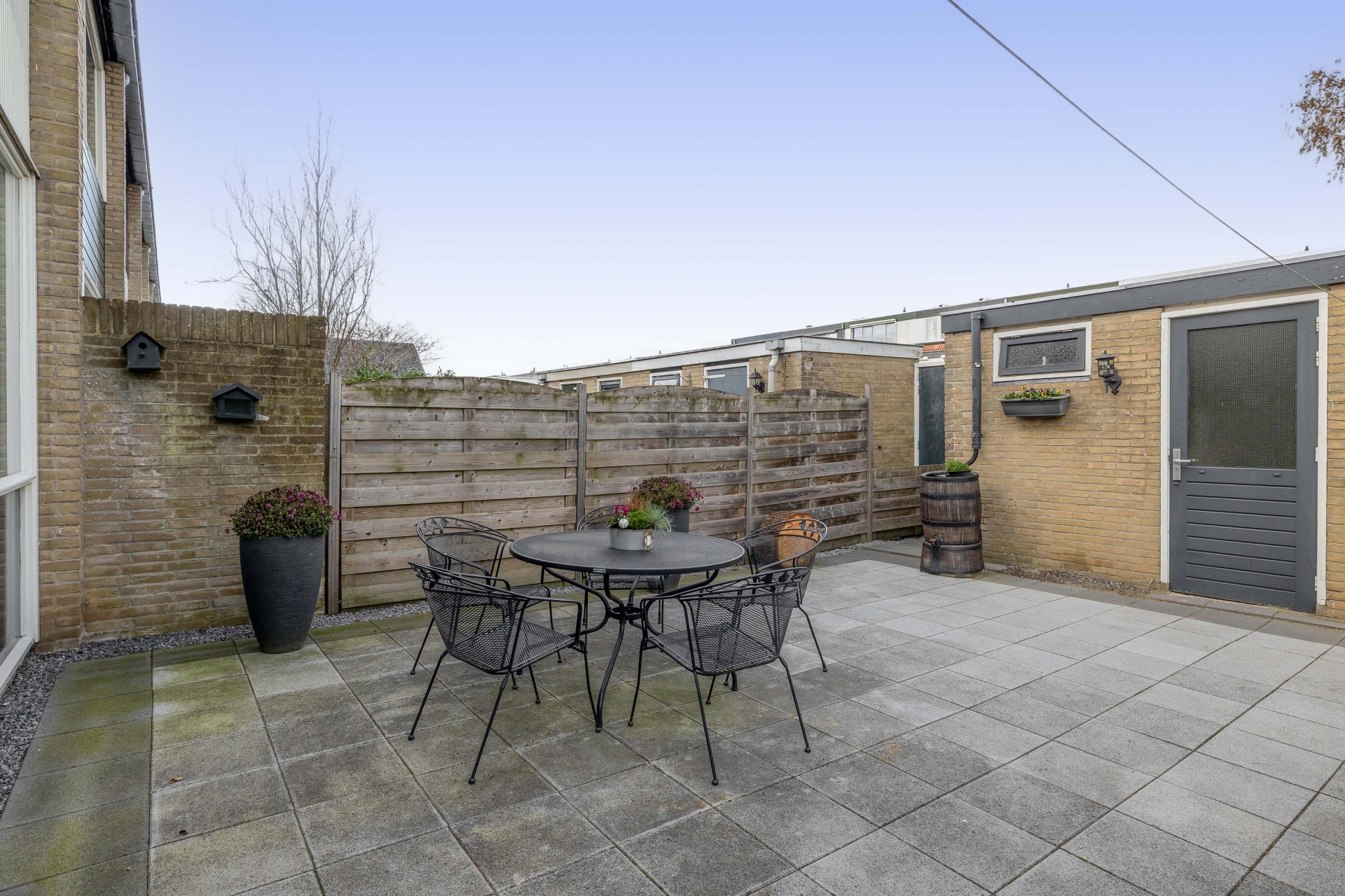 De tuin ligt op het noorden, maar dankzij de open ligging heb je hier zeker nog genoeg zonuren. De tuin is grotendeels bestraat en dus lekker onderhoudsvriendelijk. Er is voldoende ruimte voor een eettafel of loungeset. Achterin staat een stenen berging waar je fietsen, tuingereedschap of speelgoed makkelijk kwijt kunt. Via een achterom bereik je ook eenvoudig de brandgang – handig voor het vuilnis of de fietsen.