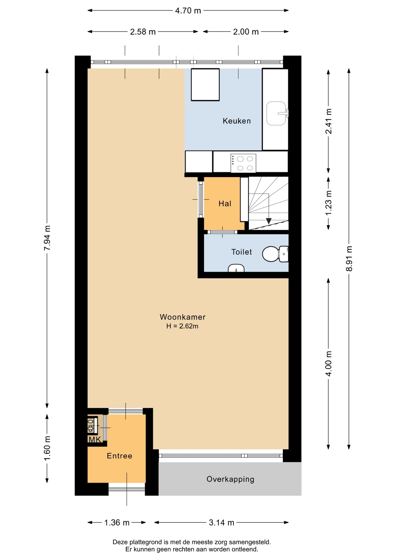 “Deze informatie is door ons met de nodige zorgvuldigheid samengesteld. Onzerzijds wordt echter geen enkele aansprakelijkheid aanvaard voor enige onvolledigheid, onjuistheid of anderszins, dan wel de gevolgen daarvan. Alle opgegeven maten en oppervlakten zijn indicatief.”