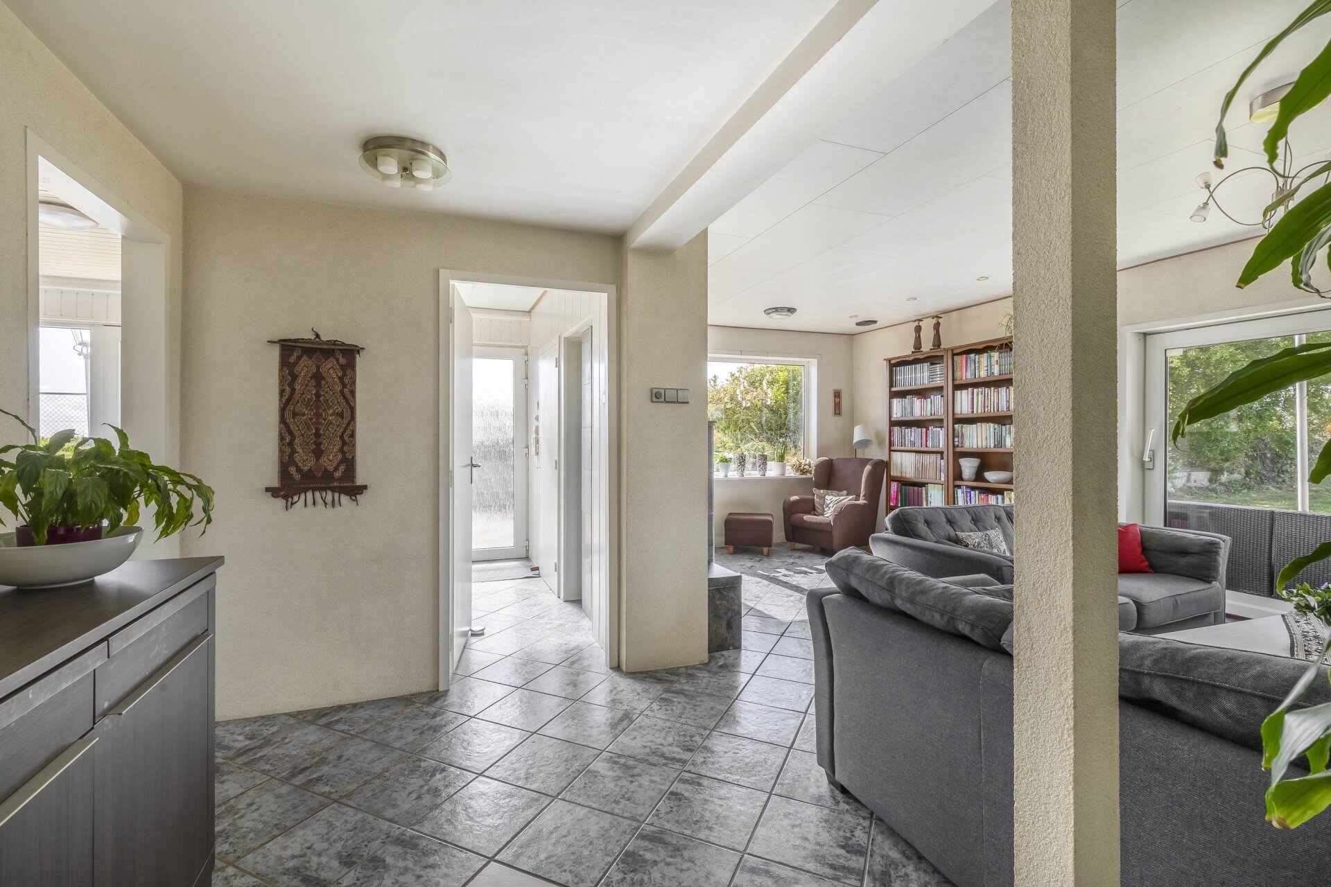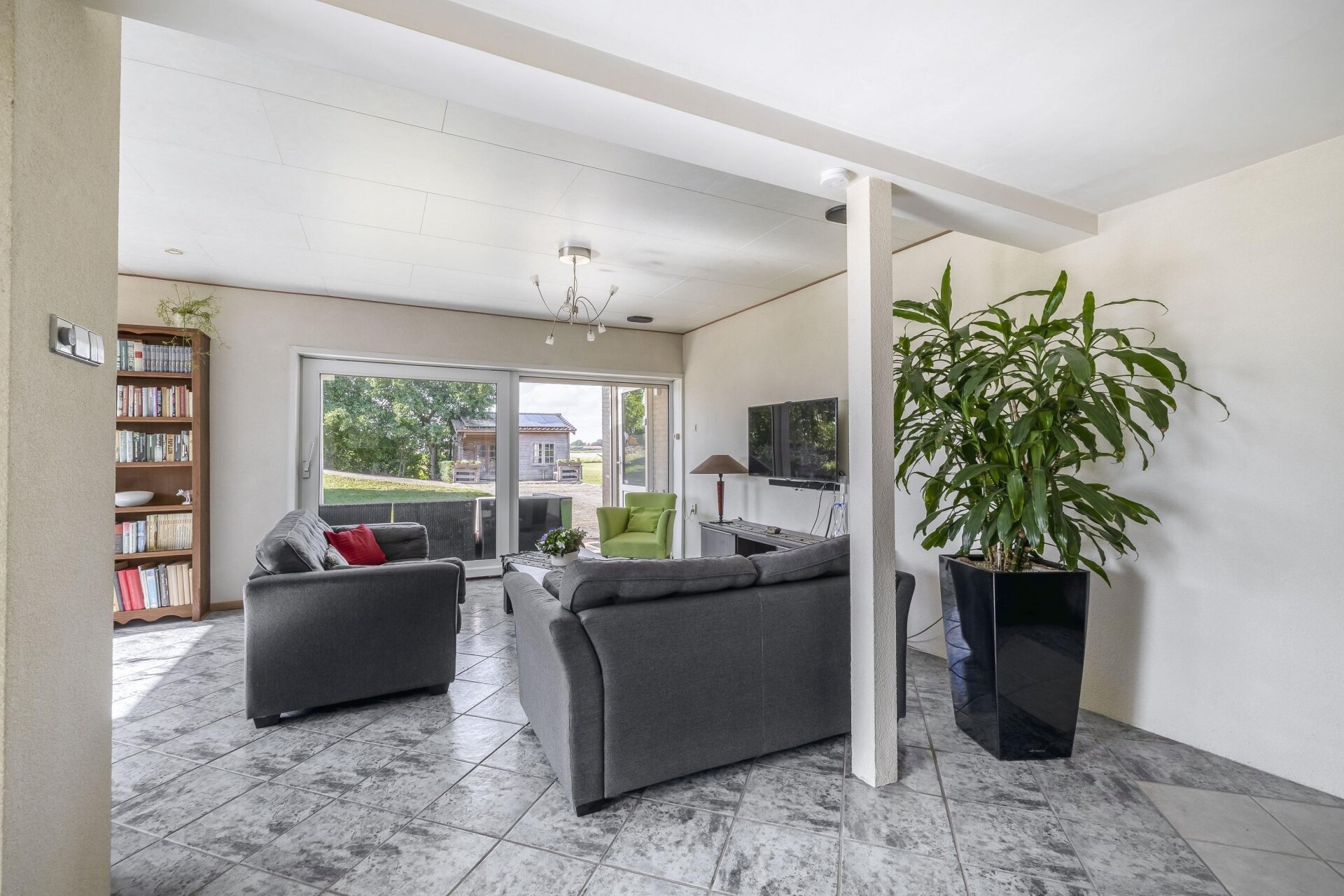De begane grond is ruim opgezet en biedt directe toegang tot zowel de keuken als de woonkamer. Vanuit de woonkamer kijk je uit over de achtertuin én over de uitgestrekte landerijen die achter het perceel liggen. Dat vrije uitzicht geeft elke dag weer een gevoel van ruimte en rust. De woonkamer zelf is neutraal afgewerkt en biedt genoeg ruimte voor een royale zithoek en een eettafel. Bovendien beschikken de woonkamer, keuken en gang over comfortabele vloerverwarming.