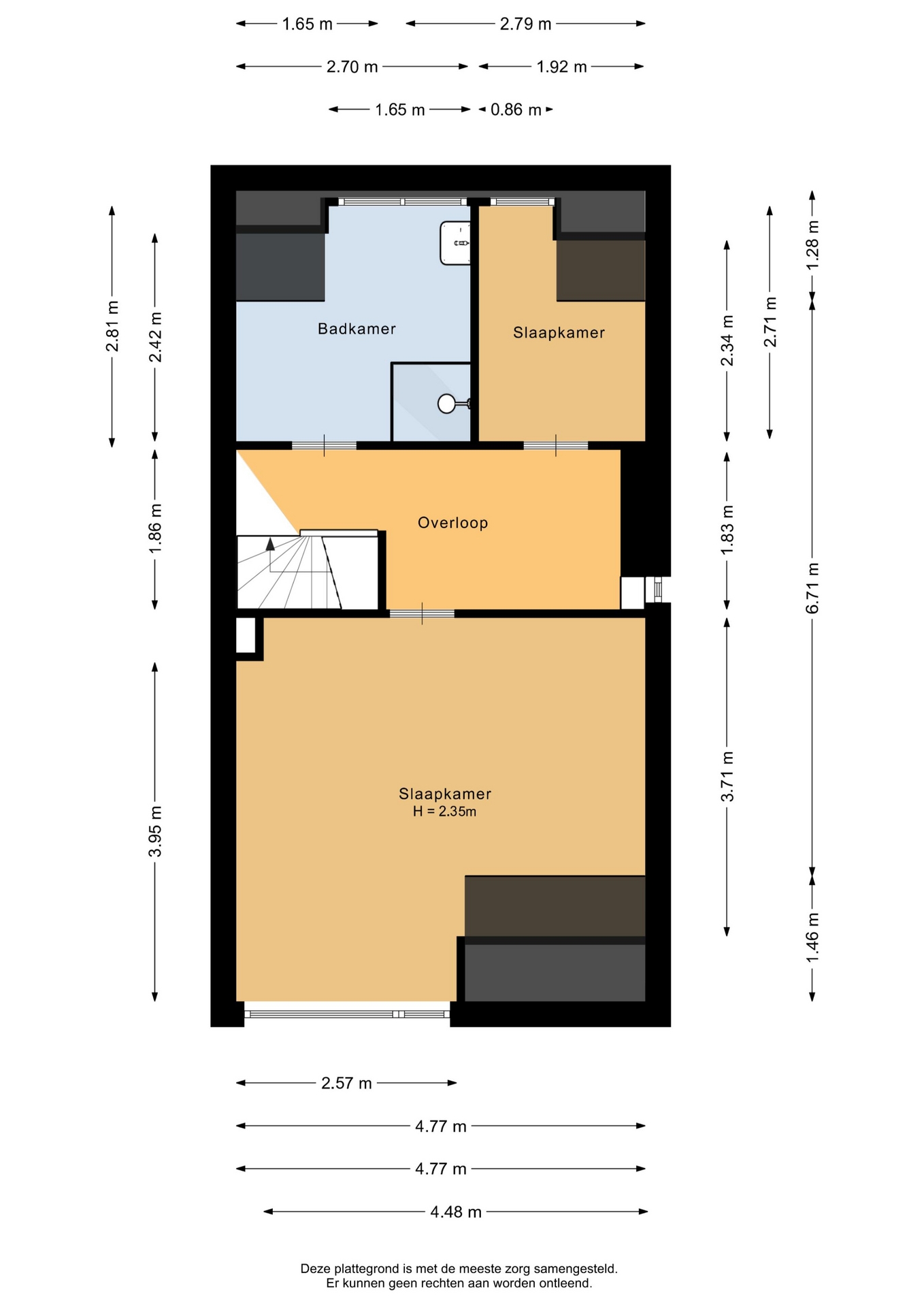 “Deze informatie is door ons met de nodige zorgvuldigheid samengesteld. Onzerzijds wordt echter geen enkele aansprakelijkheid aanvaard voor enige onvolledigheid, onjuistheid of anderszins, dan wel de gevolgen daarvan. Alle opgegeven maten en oppervlakten zijn indicatief.”
