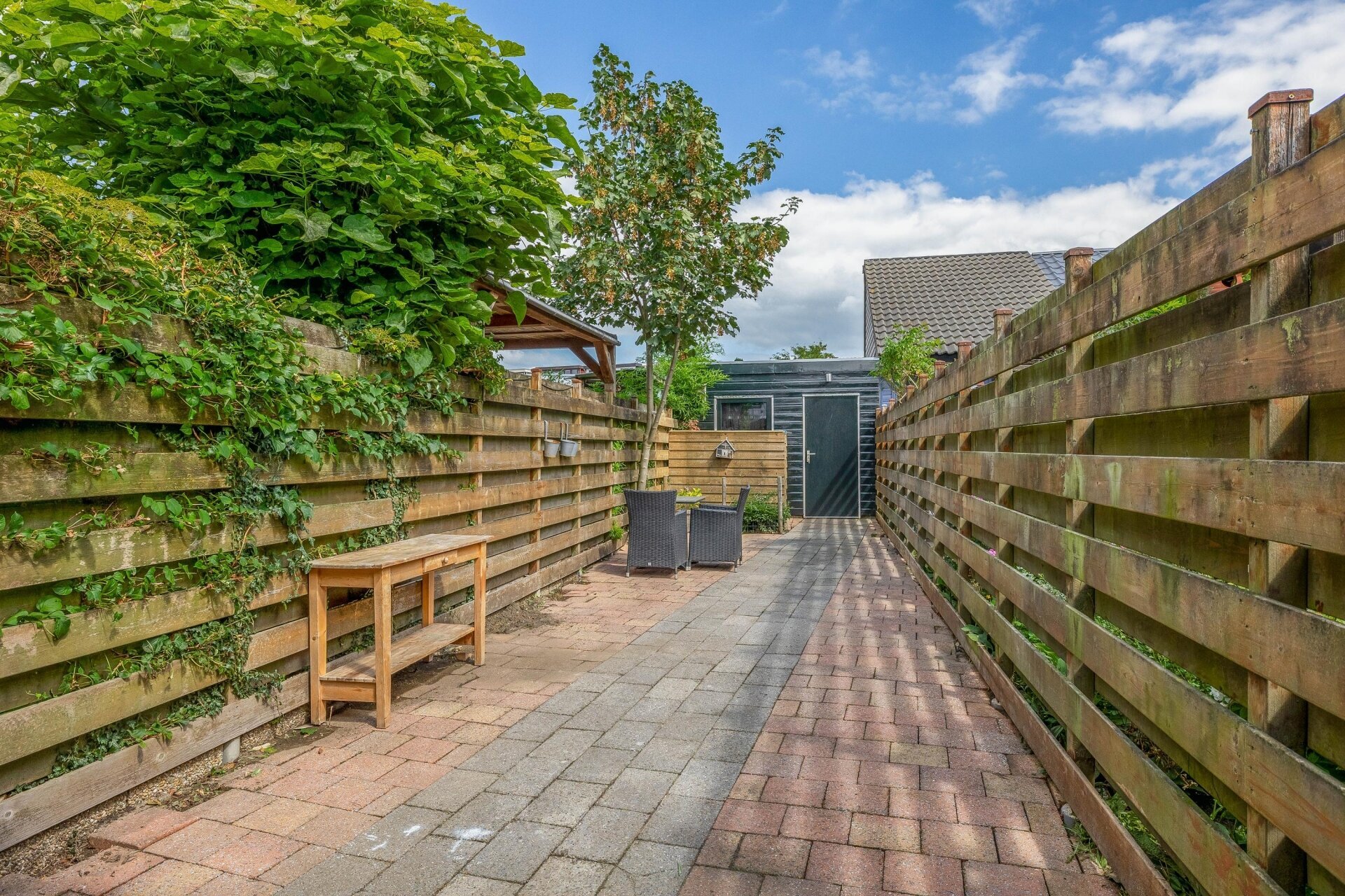 De achtertuin is maar liefst 19 meter diep. Ruimte genoeg voor een moestuin, tuinfeestje of zelfs een tuinkantoor. De ligging is op het oosten, door de diepte is er altijd een plekje in de zon. De overkapping is een gezellige plek om ook s' avonds buiten te zitten. Je geniet hier van de rust en privacy! De ruime berging aan de achterzijde met elektrische deur en achterom is ideaal voor al je opbergruimte. Er zijn ook nog mogelijkheden om de berging te vergroten.