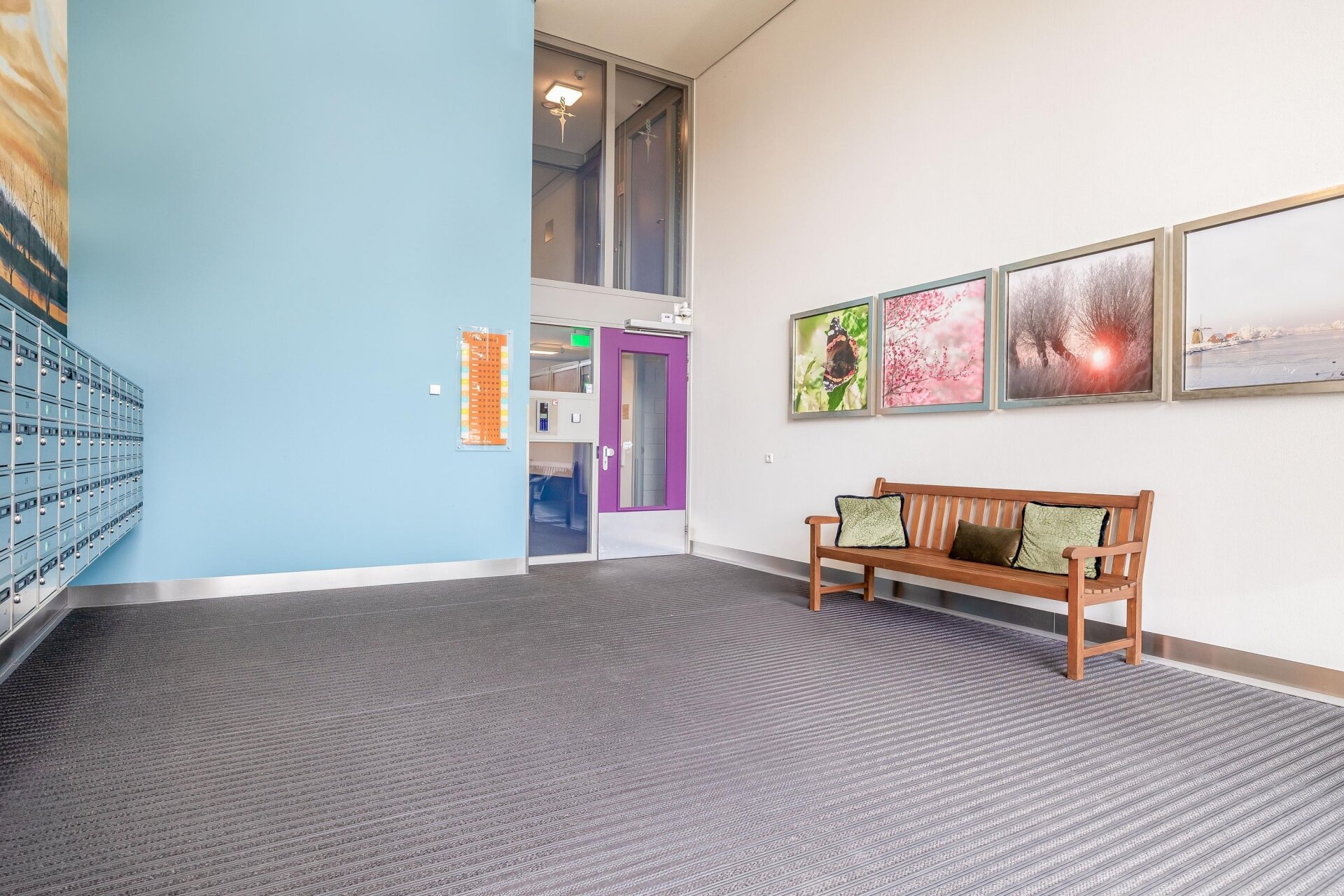Bij binnenkomst treft u een verzorgde centrale entree met bellentableau, brievenbussen, lift en trapopgang. Op de begane grond beschikt u over een eigen berging voorzien van elektra – ideaal voor fiets of extra opslag.