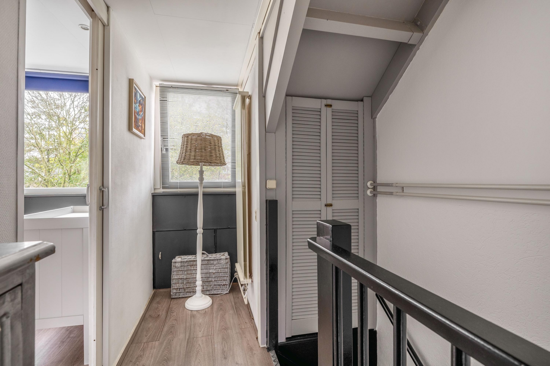 Ook het balkon op de eerste verdieping is op het zuidoosten georiënteerd en biedt een fijne plek voor een kop koffie in de ochtendzon.