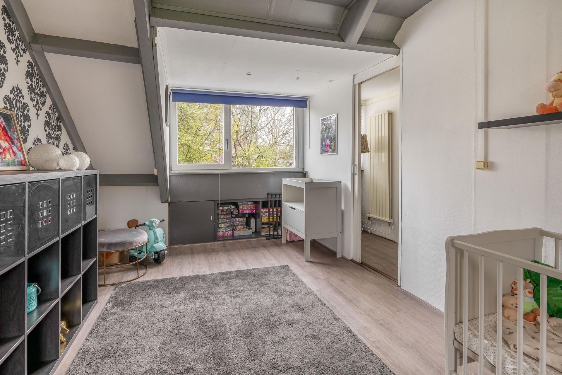De zolderverdieping is momenteel ingericht als extra kamer, maar biedt volop ruimte om twee volwaardige (slaap)kamers te creëren. Ideaal voor jonge gezinnen of thuiswerkers die net wat meer ruimte kunnen gebruiken. De wasruimte bevindt zich eveneens op zolder, waar zich tevens de opstelruimte van de CV-ketel bevindt.