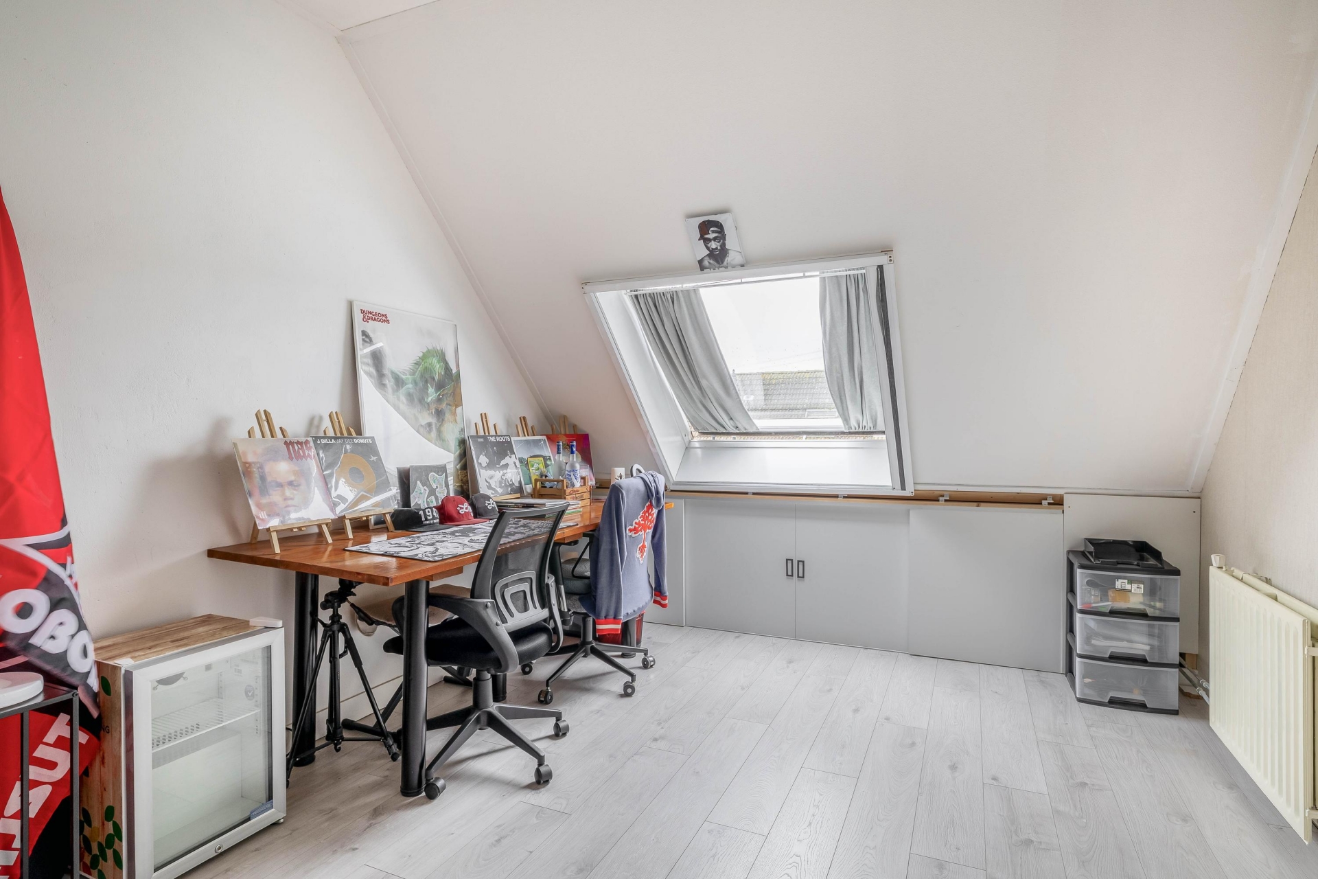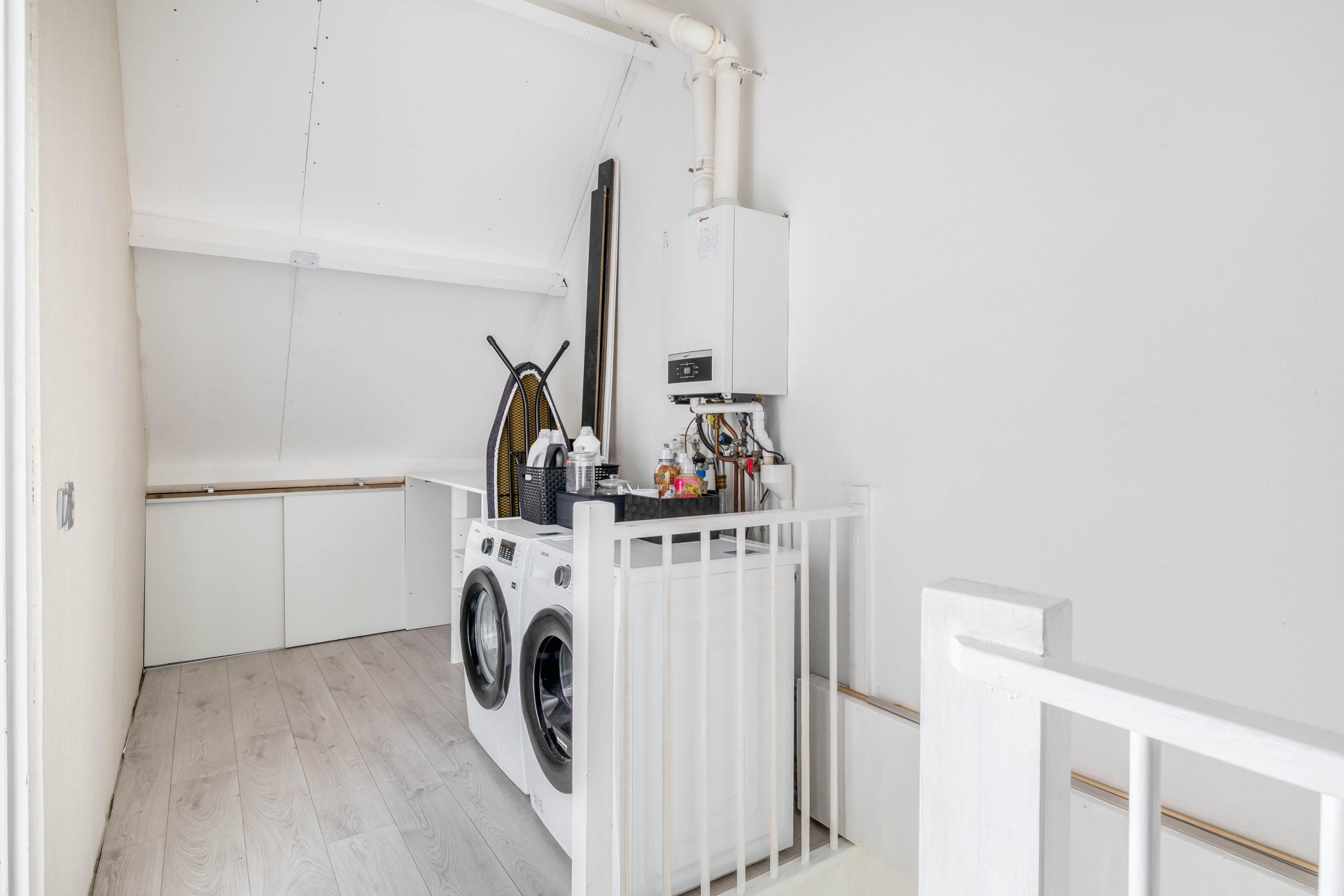De tweede verdieping is een volwaardige extra woonlaag. Hier vind je de vierde slaapkamer met dakraam, wat zorgt voor prettig daglicht. Daarnaast is er op de overloop voldoende ruimte voor de wasopstelling en de CV-ketel (Nefit HR, 2016). De knieschotten zorgen voor extra bergruimte.