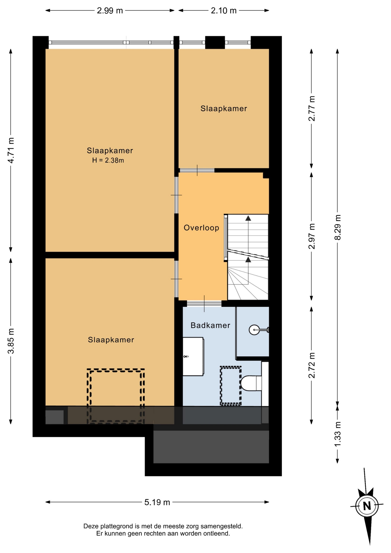 “Deze informatie is door ons met de nodige zorgvuldigheid samengesteld. Onzerzijds wordt echter geen enkele aansprakelijkheid aanvaard voor enige onvolledigheid, onjuistheid of anderszins, dan wel de gevolgen daarvan. Alle opgegeven maten en oppervlakten zijn indicatief.”