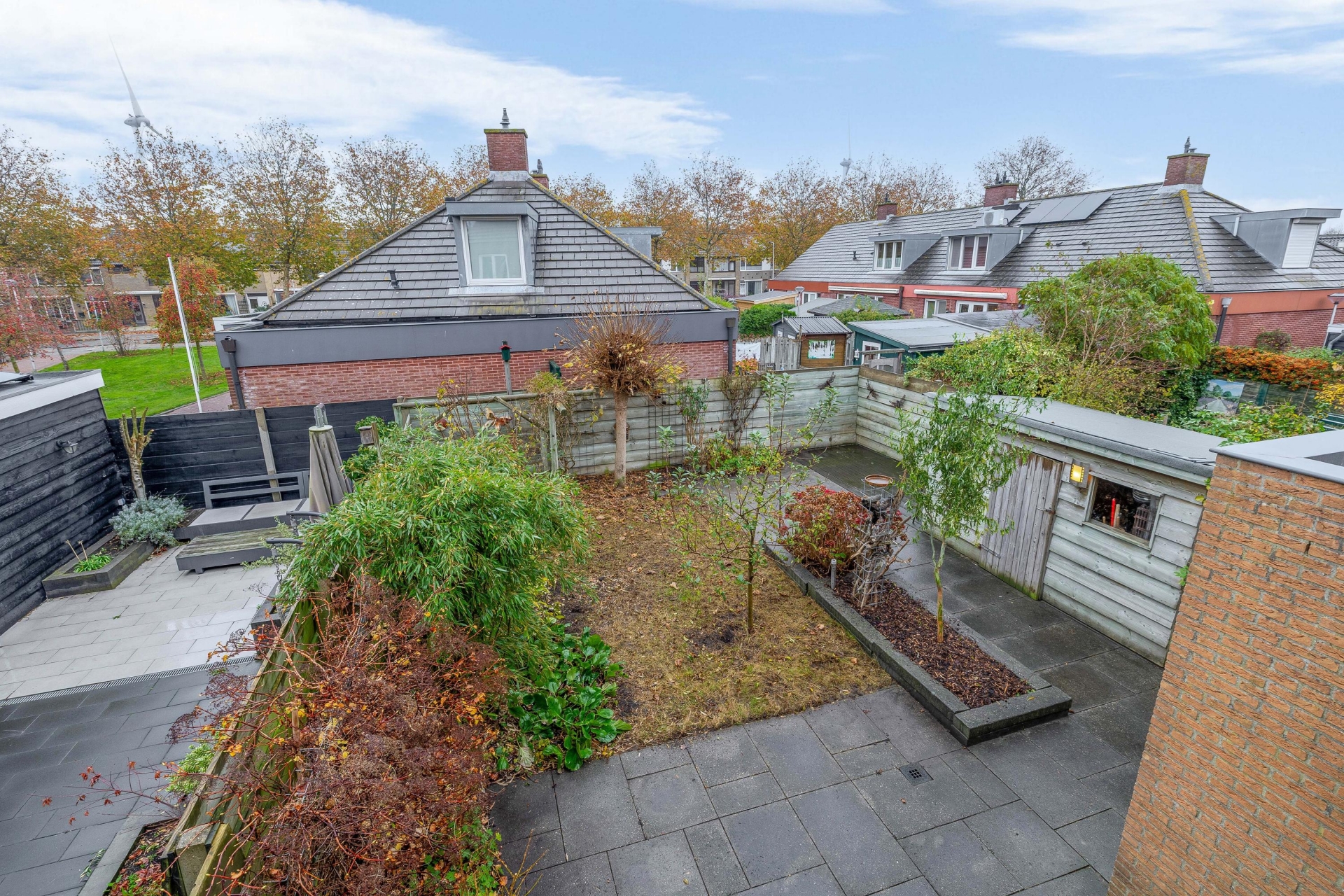 Met een perceel van 280 m² beschikt dit huis over een flinke achtertuin van ca. 125 m², én een zij- en voortuin. De tuin ligt op het noorden en oosten, waardoor je 's ochtends en begin van de middag volop van de zon kunt genieten. Door de vrije ligging aan de zijkant voelt het huis extra ruimtelijk aan, en is er veel privacy. De tuin is verzorgd aangelegd en biedt ruimte genoeg voor speeltoestellen, groen én een royaal terras. Achterom is aanwezig.