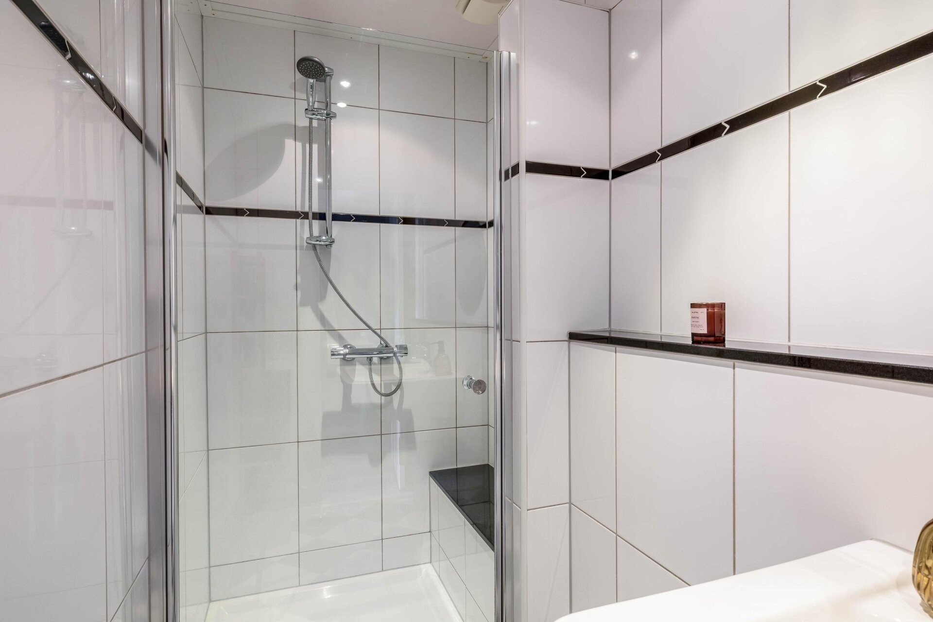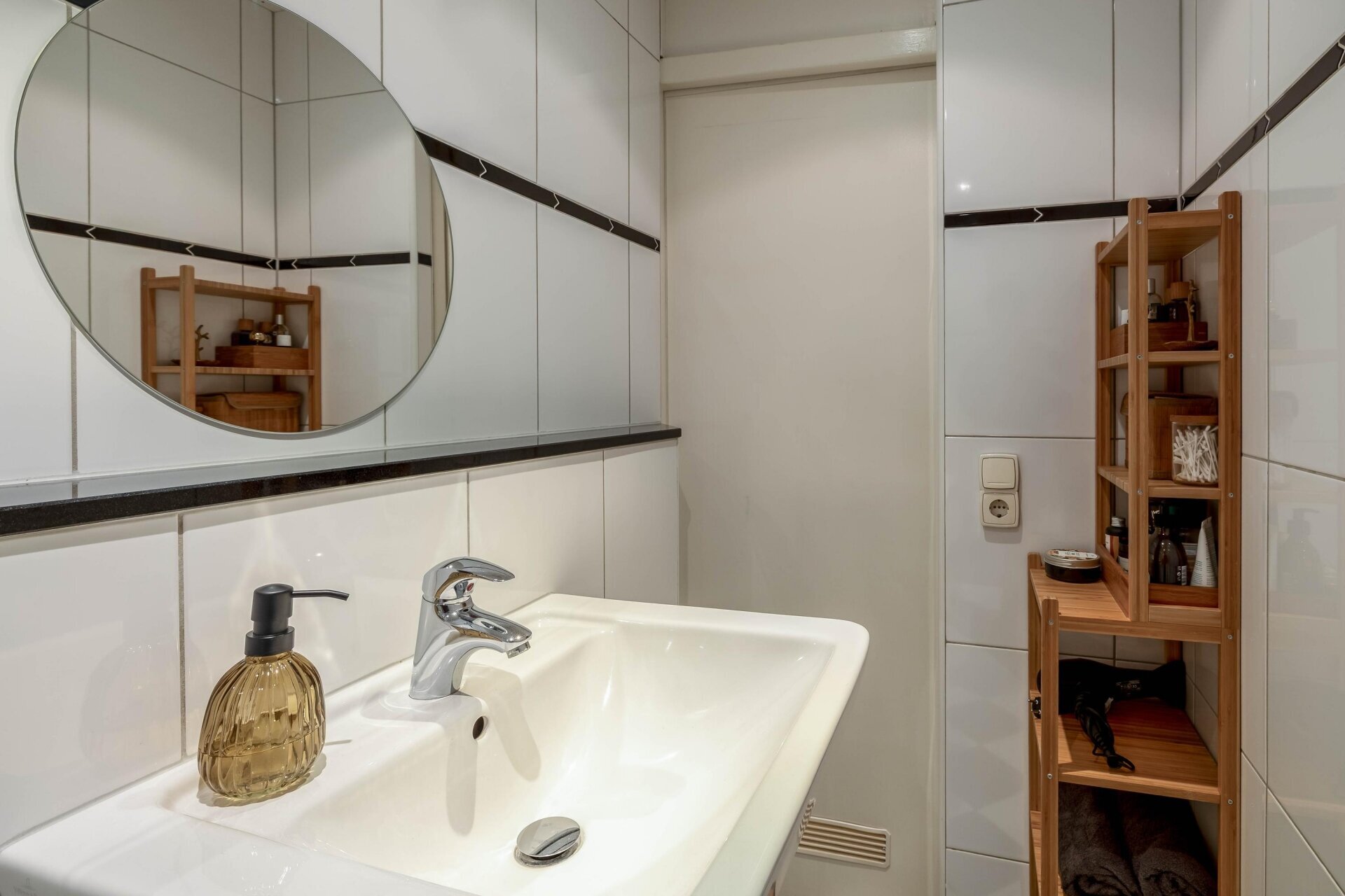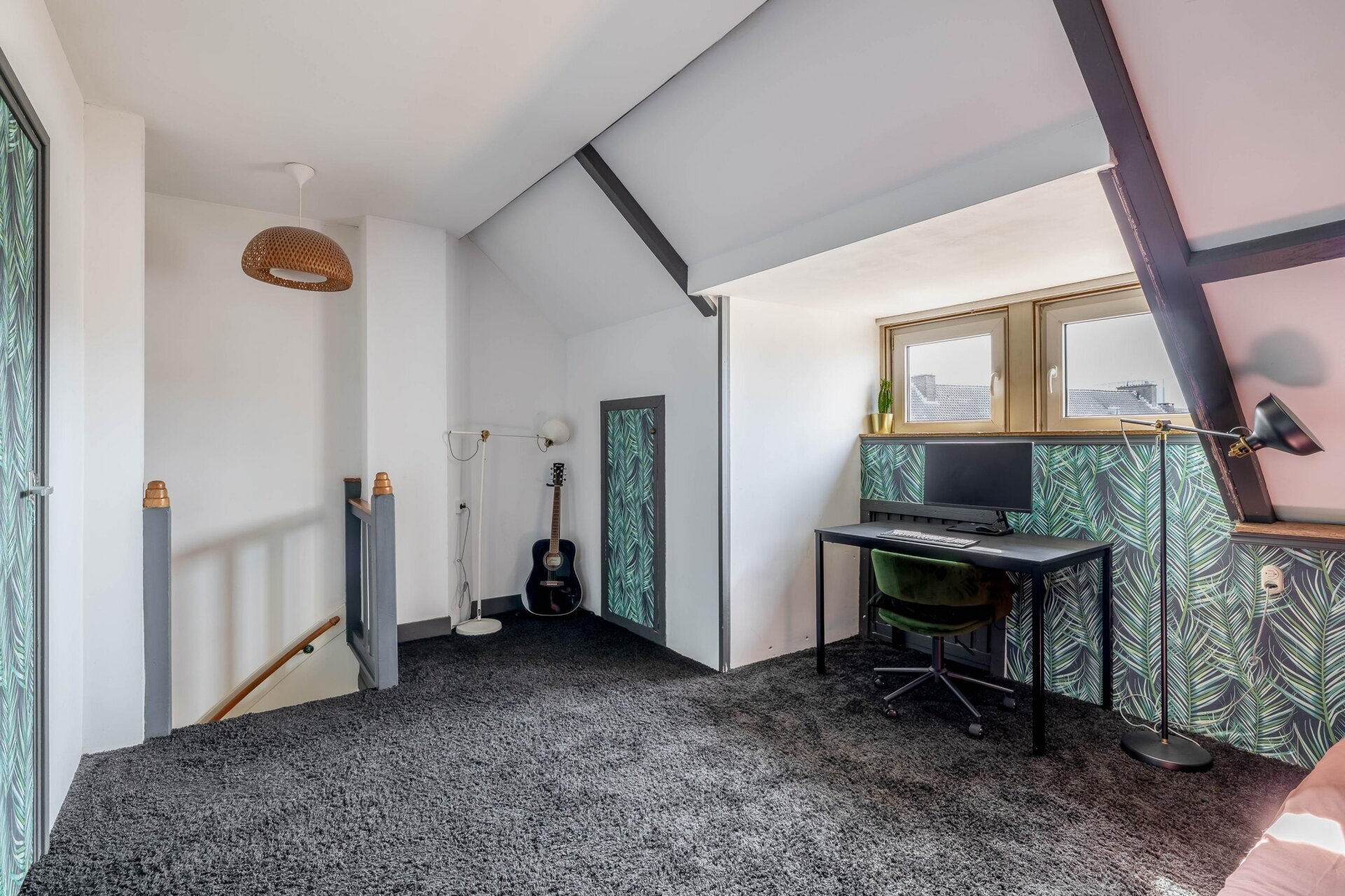 Op de halve derde verdieping bevinden zich twee slaapkamers, beide met openslaande deuren naar het tweede balkon (met HR-glas). De badkamer is in 2006 vernieuwd, volledig betegeld en voorzien van een douchecabine en wastafel. De halve vierde verdieping is in 2017 grondig verbouwd en geïsoleerd. Hier vind je de derde slaapkamer met een charmant dakkapel, een vaste kast en extra bergruimte. In een aparte kast zitten de wasmachineaansluiting en de cv-combiketel (Remeha, 2021).