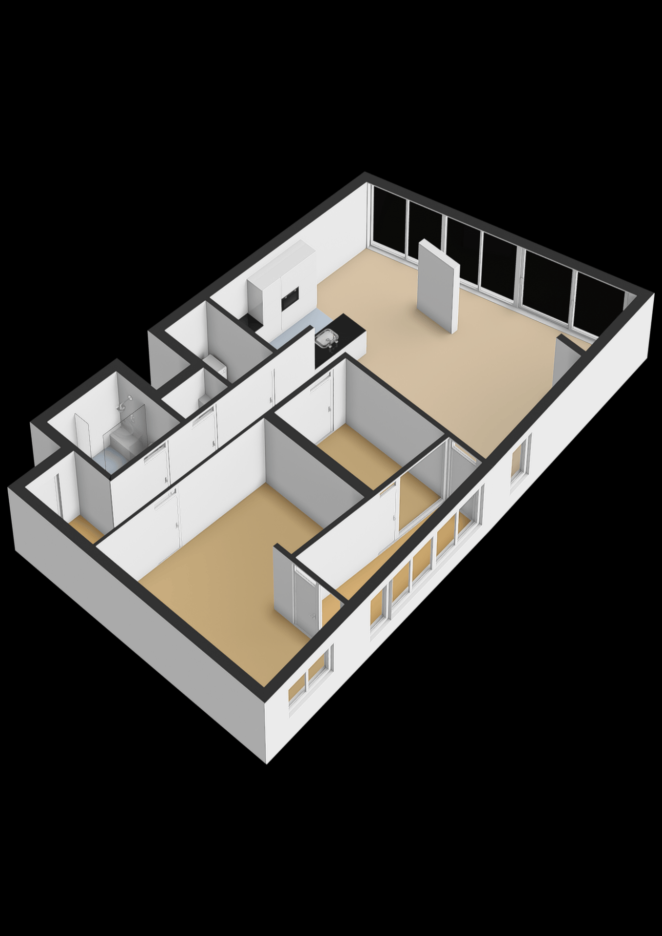 De hoofdslaapkamer is royaal opgezet en biedt volop ruimte voor een groot bed, kastenwand en eventueel een werk- of zithoek. De tweede slaapkamer is veelzijdig inzetbaar als logeerkamer, kinderkamer of thuiskantoor. Oorspronkelijk beschikte het appartement over drie slaapkamers; deze indeling is eenvoudig weer terug te brengen voor wie behoefte heeft aan extra kamers.