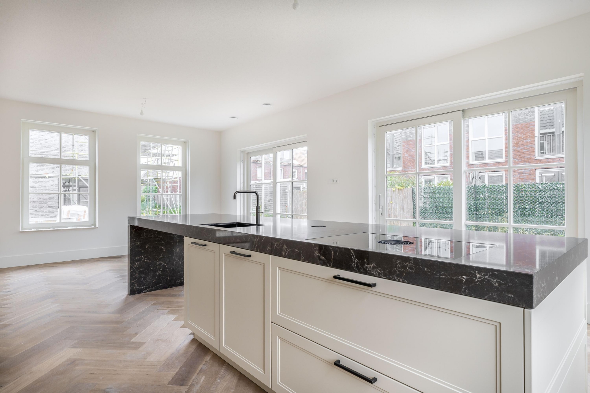 Welkom in de prachtige, royale hal met een doorkijk naar de tweede verdieping – een entree die direct indruk maakt! Vanuit hier bereikt u de moderne toiletruimte met vrijhangend closet en fonteintje, de technische ruimte met o.a. de warmtepomp en meterkast. Vanuit de hal heeft u toegang tot de lichte en ruime woonkamer. De moderne keuken, gelegen aan de andere zijde van de woning, is voorzien van een stijlvol kook- en spoeleiland en uitgerust met luxe inbouwapparatuur zoals een combi-oven, stoomoven, inductiekookplaat, koelkast, vriezer en vaatwasser. Via de grote schuifdeuren stapt u zo de zonnige tuin in, waar u volop kunt genieten van rust en ruimte. Aan de voorzijde van de woning zal je in de toekomst over twee eigen parkeerplaatsen naast elkaar beschikken. De begane grond is geheel voorzien van comfortabele vloerverwarming.