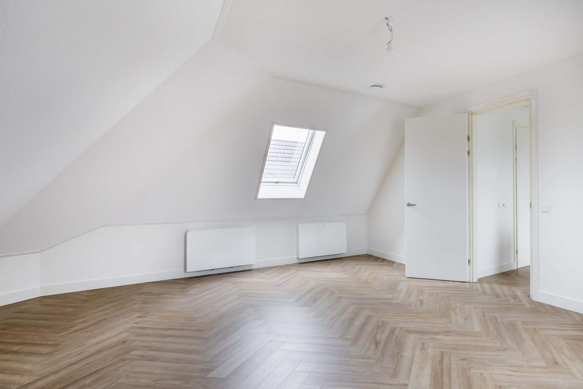 Deze verdieping biedt verrassend veel ruimte. Op de ruime overloop bevind zich aansluiting voor de wasmachine. Daarnaast bevinden zich hier twee zeer ruime slaapkamers én een tweede badkamer. Via een vlizotrap is de royale bergvliering bereikbaar, ideaal voor het opbergen van seizoensspullen of andere zaken die u niet dagelijks nodig heeft.