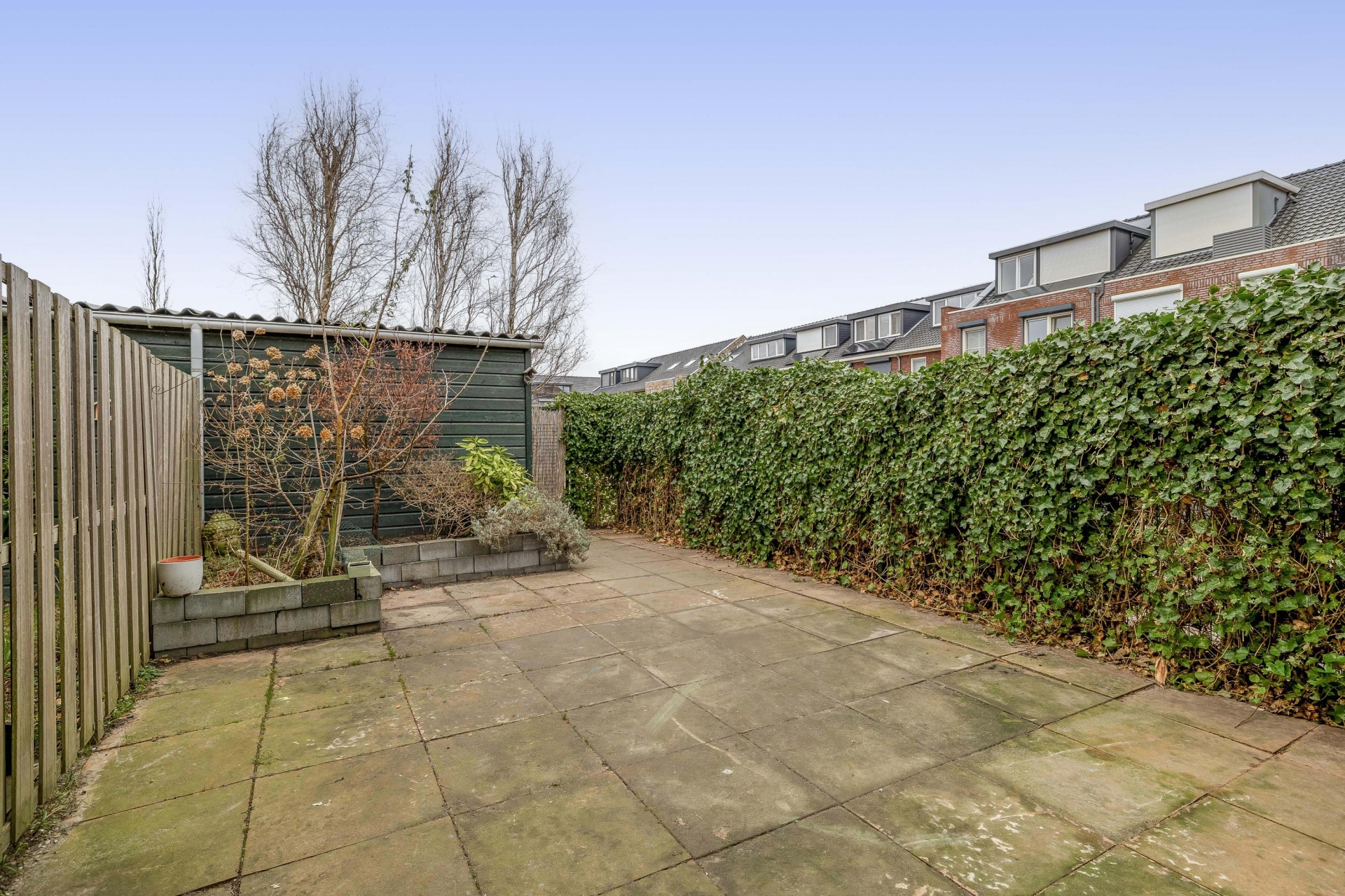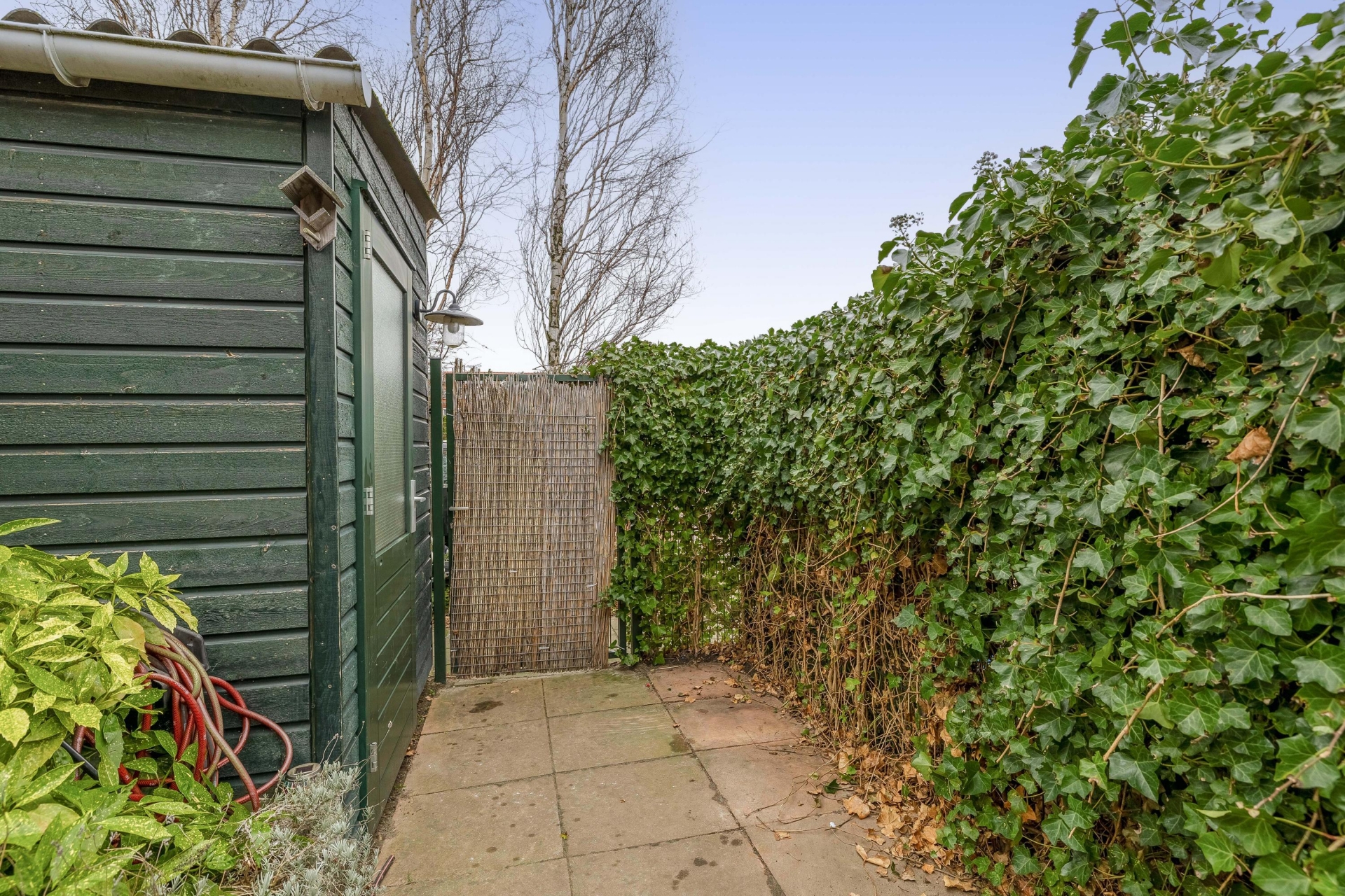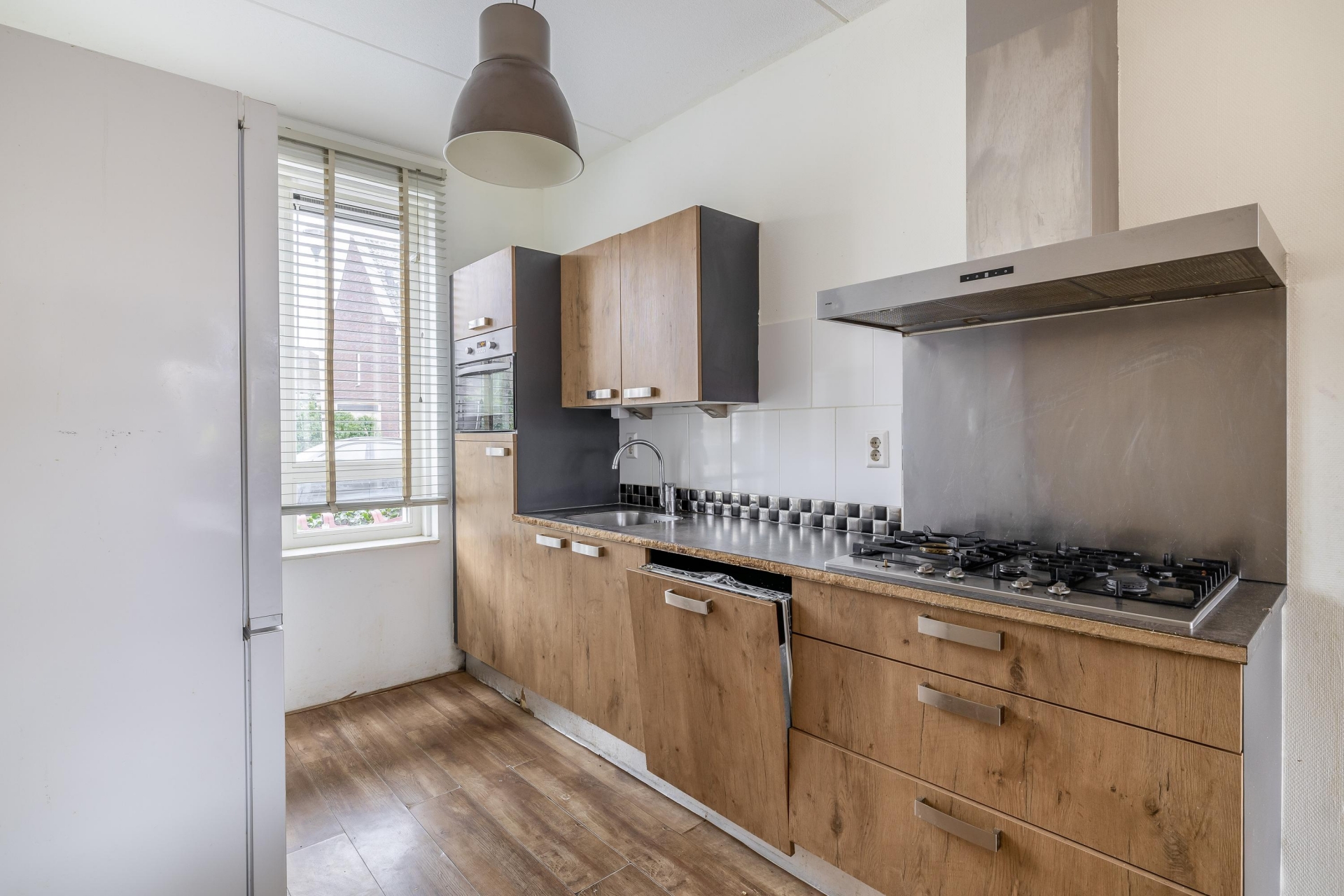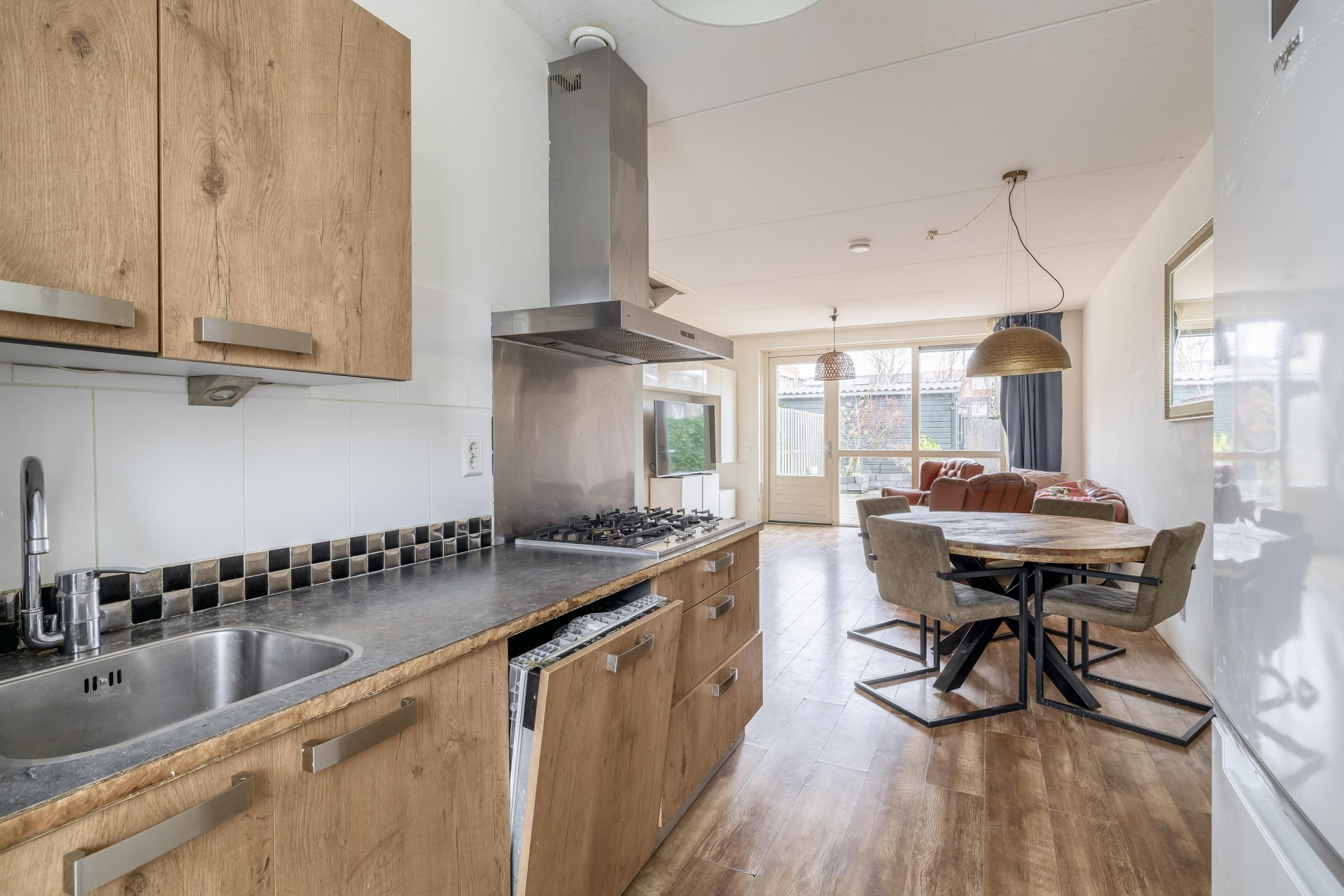 Entree naar de woning via voortuin; hal met meterkast; toiletruimte met toilet en fonteintje; lichte woonkamer voorzien van een halfopen keuken in wandopstelling aan de voorzijde van de woning. De keuken is uitgevoerd met diverse inbouwapparatuur waaronder een 5 pits gaskookplaat, koelkast, vaatwasser en afzuigkap; aan de achterzijde de ruime achtertuin met berging met elektra en een achterom naar de parkeerplaats.