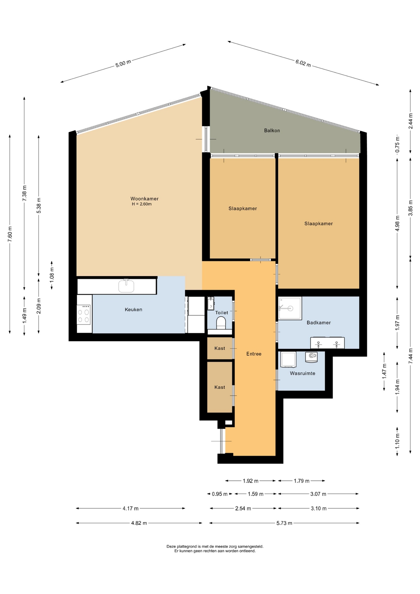 “Deze informatie is door ons met de nodige zorgvuldigheid samengesteld. Onzerzijds wordt echter geen enkele aansprakelijkheid aanvaard voor enige onvolledigheid, onjuistheid of anderszins, dan wel de gevolgen daarvan. Alle opgegeven maten en oppervlakten zijn indicatief.”