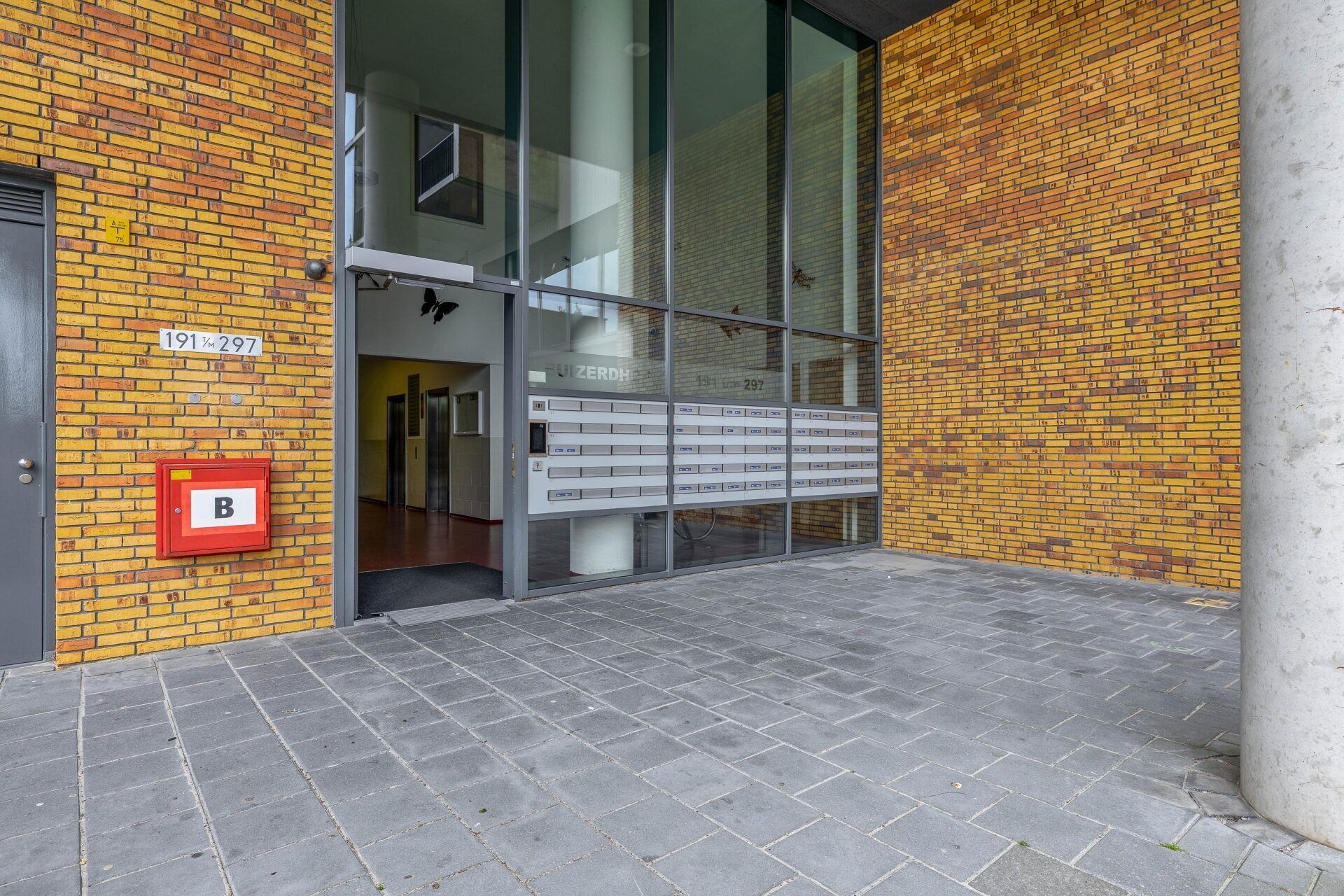 Via de afgesloten entree met videofooninstallatie en brievenbussen kom je in de centrale hal met toegang tot de liften, het trappenhuis, de gezamenlijke fietsenberging en de containerruimte. Met de lift bereik je zowel het parkeerdek op de 1e verdieping als het appartement op de 14e verdieping.