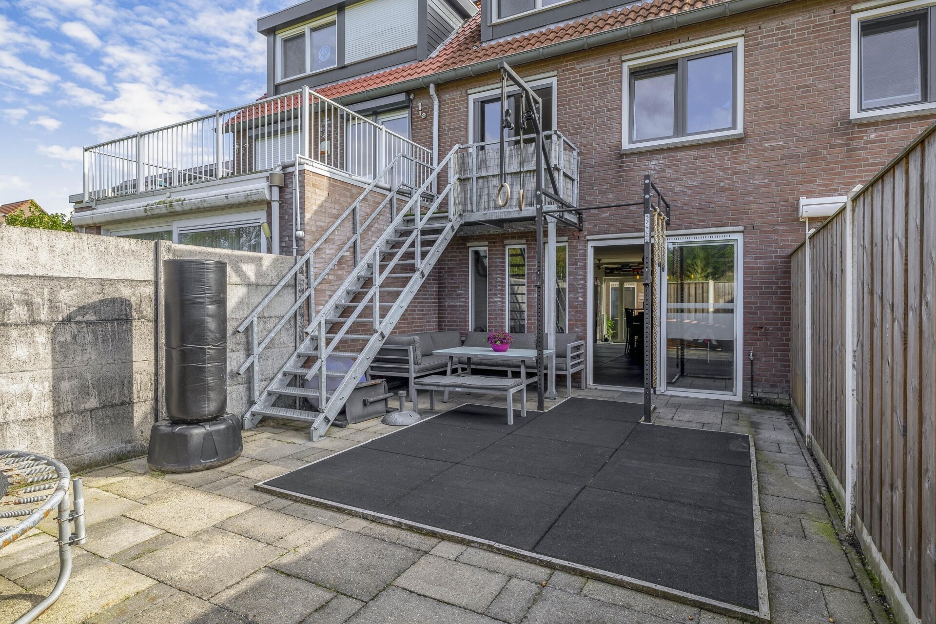 De achtertuin ligt op het westen, dus zonliefhebbers zitten hier helemaal goed. De gehele dag is er wel ergens een zonnige plek in de tuin aanwezig Vanaf de middag draait de zon naar de tuin en kun je tot in de avonduren buiten zitten. De tuin is onderhoudsvriendelijk aangelegd en biedt ruimte genoeg voor een loungeset, een eettafel en eventueel een speelplek voor kinderen. Via een achterom heb je direct toegang tot het achterpad.