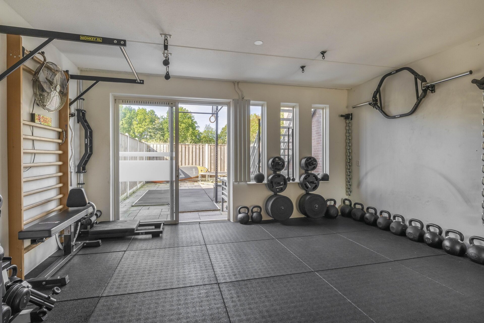 We hebben de woonkamer en keuken naar de eerste etage verplaatst om dat uitzicht optimaal te benutten. Daardoor is de begane grond nu een ruimte met eindeloze mogelijkheden — een hobbykamer, kantoor of zelfs een mancave. Deze ruimte heeft bovendien een aparte ingang, los van het leefgedeelte van het huis. Ideaal voor wie werk en privé graag gescheiden houdt. De tuin ligt op de zon. Vooral aan de rechterzijde is het heerlijk vertoeven; daar liggen we regelmatig uit de wind te genieten zodra de zon zich laat zien (en dat is in Nederland vaker dan je denkt). Voor wie liever een traditionele indeling wil met de woonkamer op de begane grond: dat is eenvoudig te realiseren. Door één muurtje te verwijderen en de keuken weer beneden te plaatsen (alle leidingen liggen er nog), heb je zo de oorspronkelijke indeling terug.