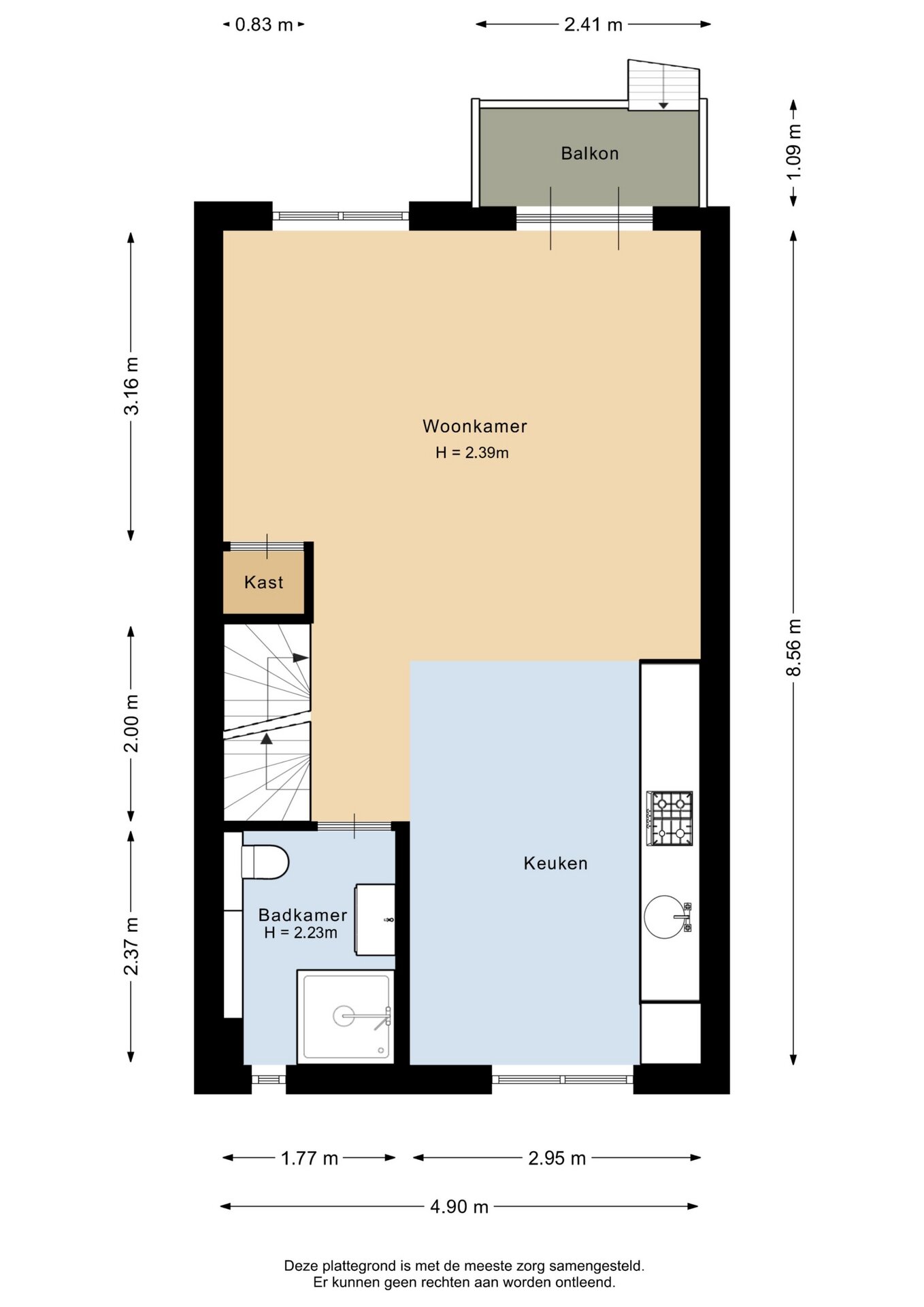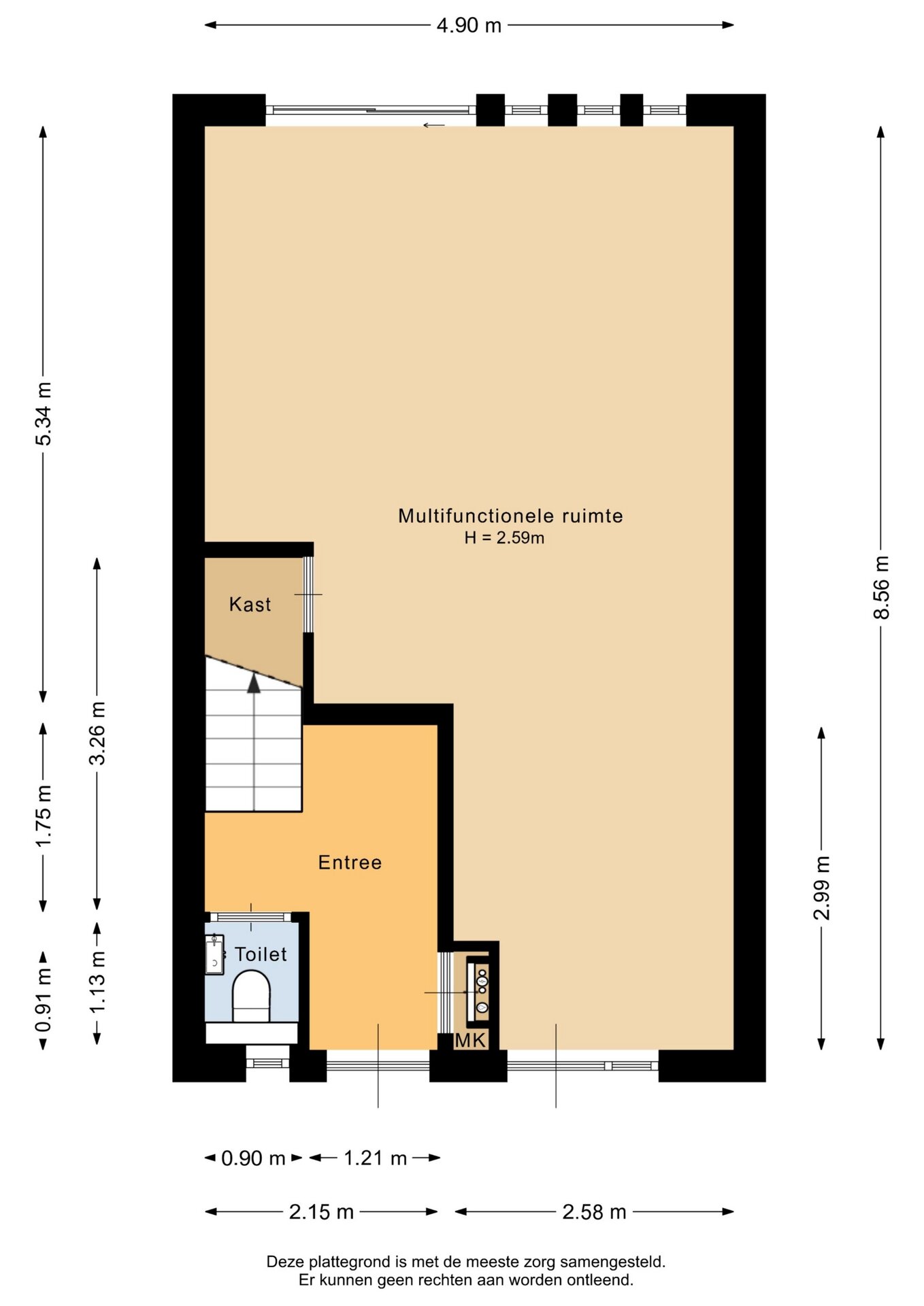 De rechter entree geeft toegang tot de begane grond, de oorspronkelijke woonkamer en positie van de keukenopstelling, deze ruimte is nog naar wens in te richten. Alles kan weer terug gebracht worden naar de oorspronkelijke indeling (woonkamer en keuken) of als vrij in te delen en/of als praktijkruimte in gebruik te nemen.