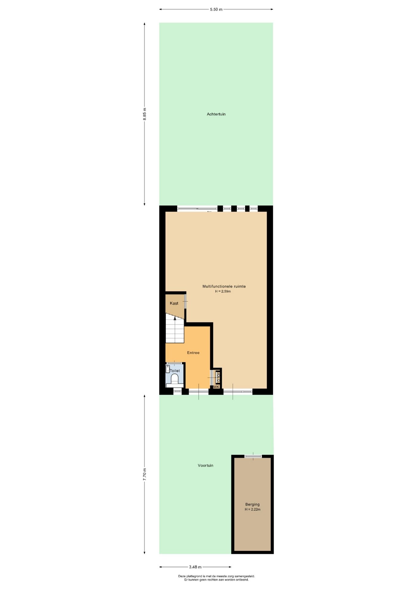 De woning is voorzien van 2 entree's. De linker entree geeft toegang naar de hal, met toilet en trapopgang naar de woonkamer, die bevindt zich nu namelijk op de eerste verdieping.