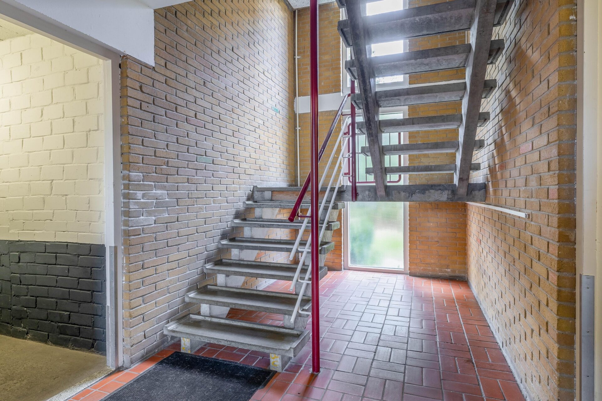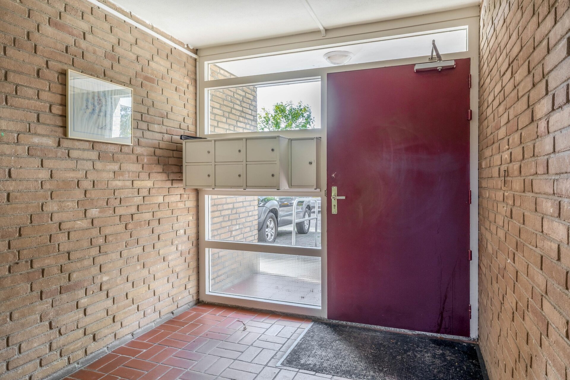 Begane grond: afgesloten portiek met brievenbussen, intercom, trapopgang en toegang tot de eigen berging (ca. 7 m²).