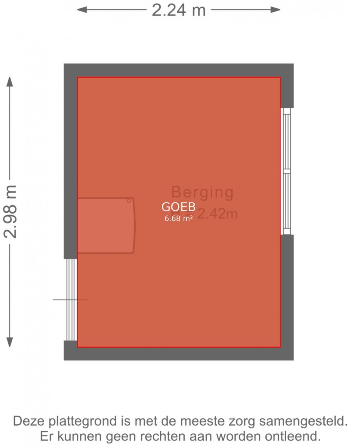 Deze informatie is door ons met de nodige zorgvuldigheid samengesteld. Onzerzijds wordt echter geen enkele aansprakelijkheid aanvaard voor enige onvolledigheid, onjuistheid of anderszins, dan wel de gevolgen daarvan. Alle opgegeven maten en oppervlakten zijn indicatief. Van toepassing zijn de NVM voorwaarden.