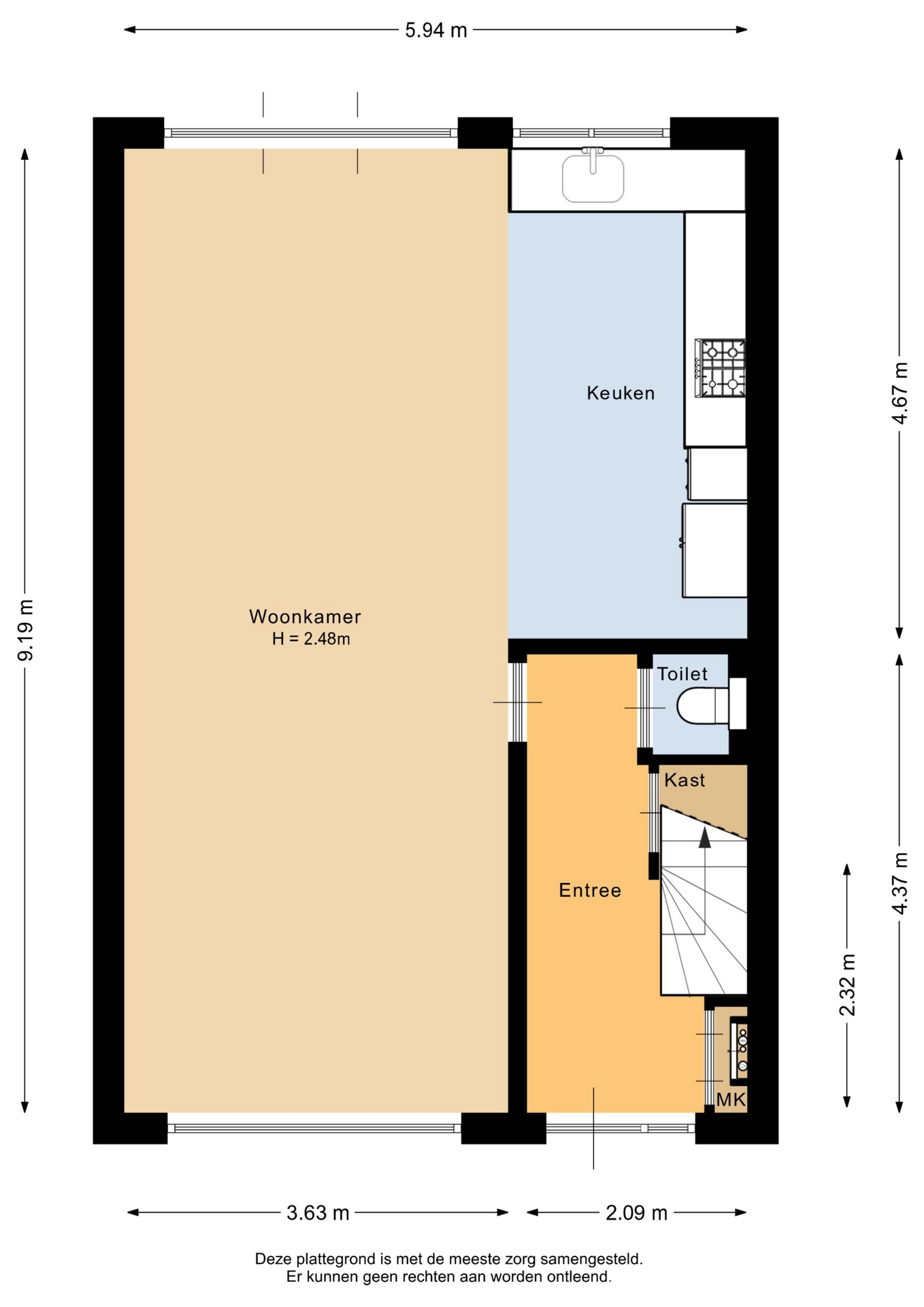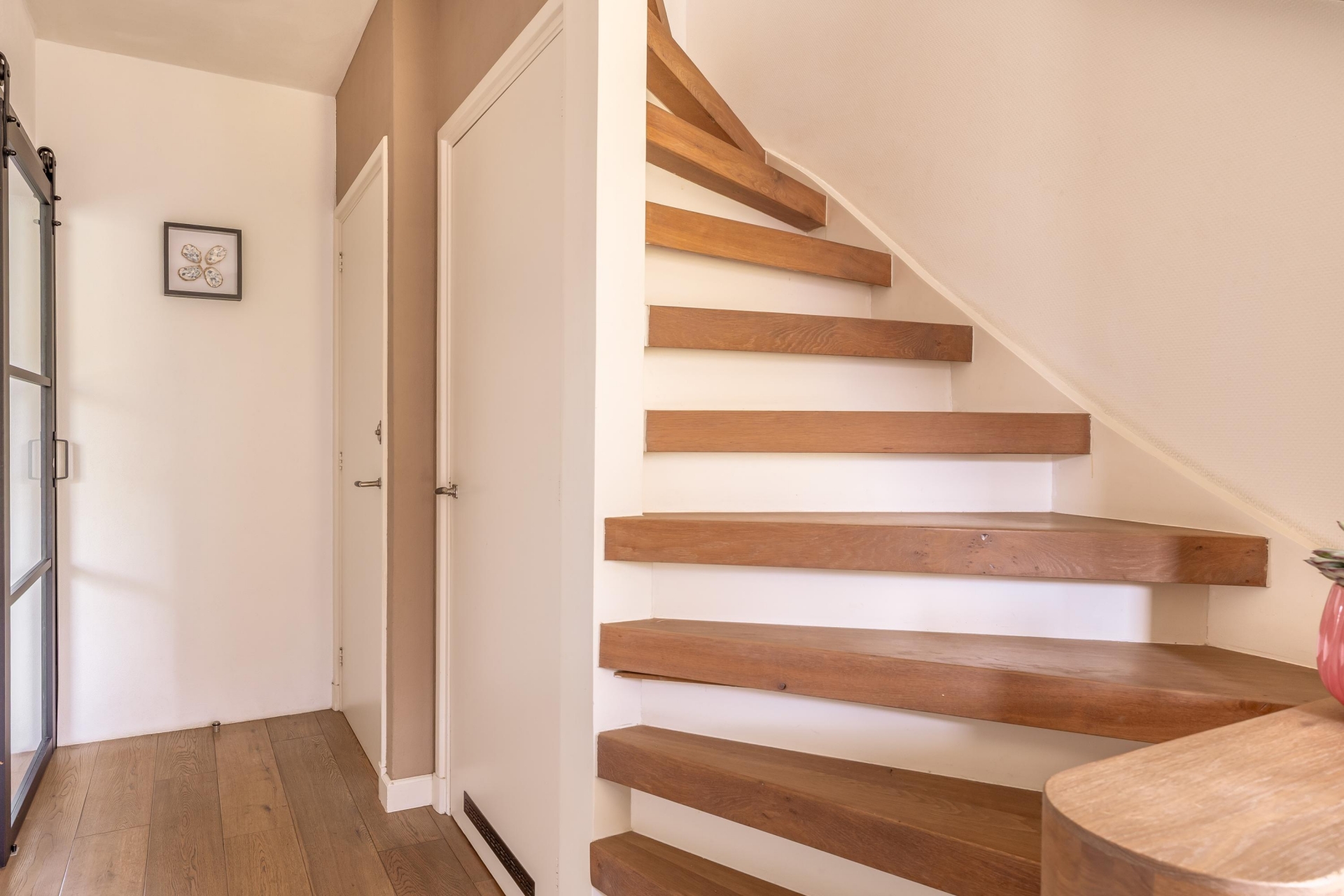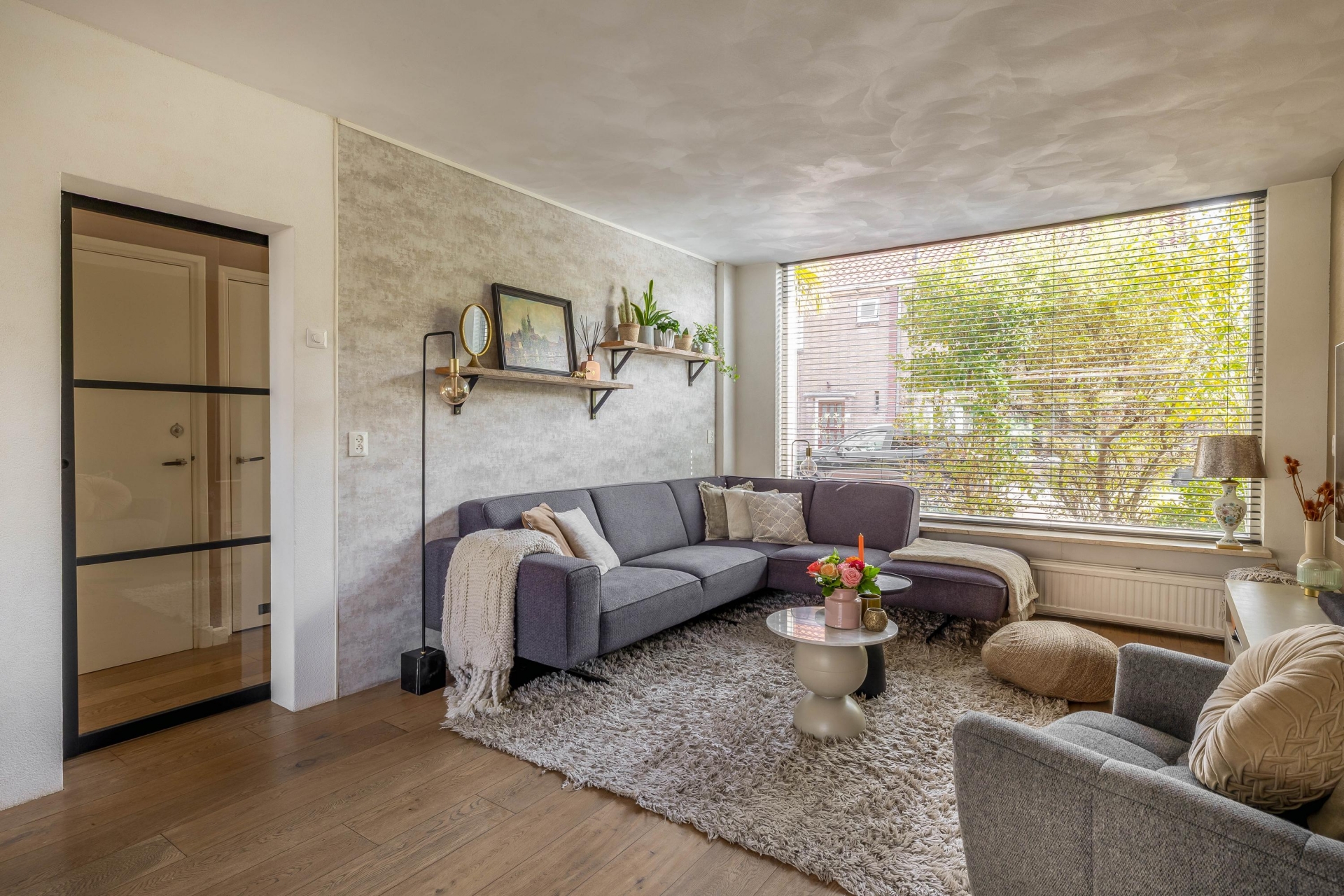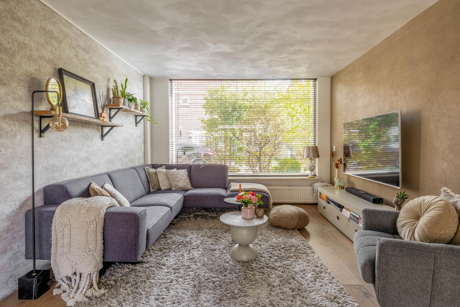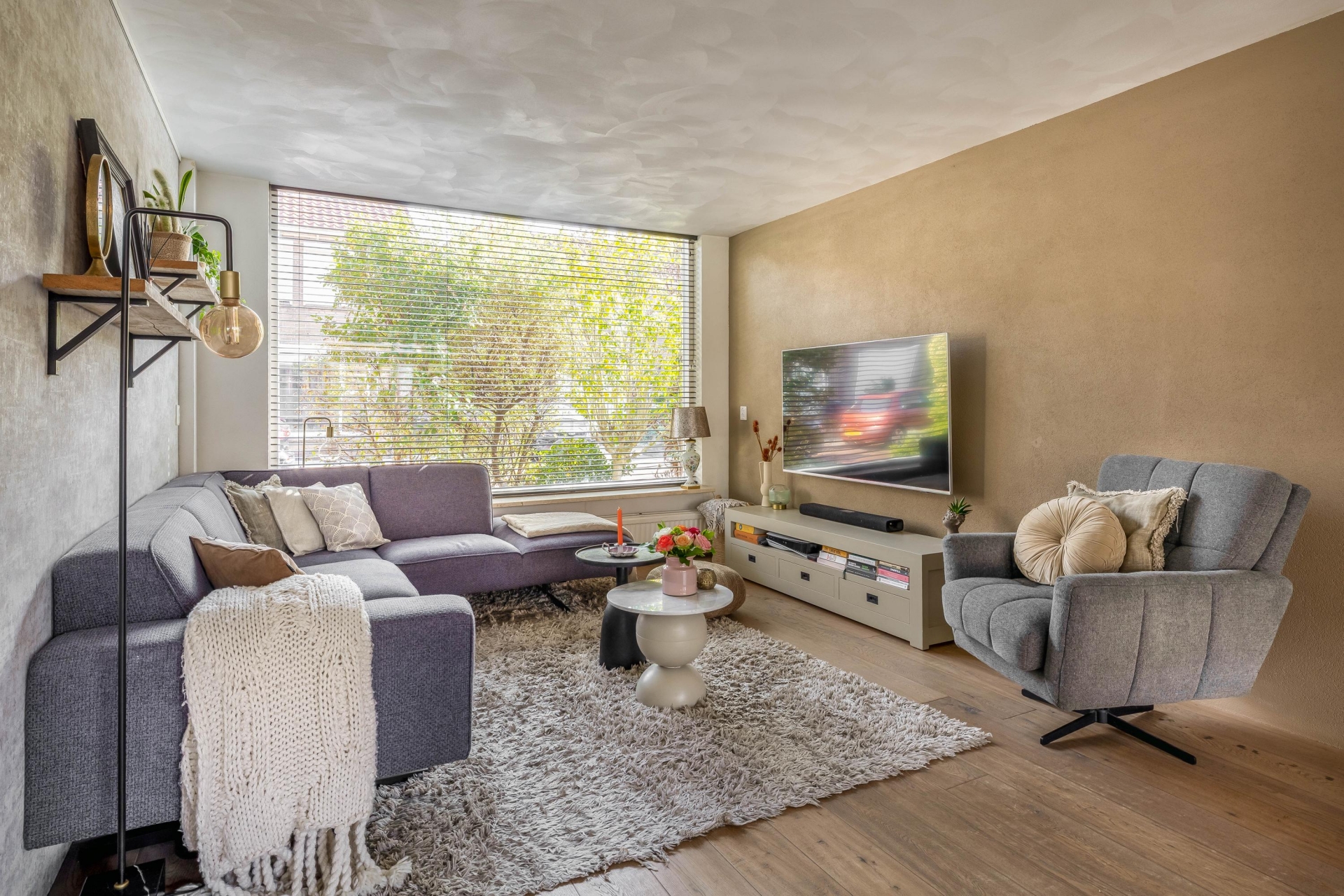 Bij binnenkomst valt direct de uitgebouwde woonkamer op: een heerlijke open ruimte met een warme sfeer, strak gestucte wanden en een natuurlijke lichtinval. De openslaande deuren naar de tuin zorgen voor een fijne verbinding tussen binnen en buiten. De zithoek aan de voorzijde kijkt uit op de rustige straat, terwijl het eetgedeelte aan de tuinzijde perfect aansluit op de moderne woonkeuken. De keuken heeft een frisse en eigentijdse uitstraling met een rustig kleurenpalet en praktische opstelling. Je vindt hier onder meer een vijfpits gasfornuis, een moderne afzuigkap, een combi-oven en een grote Amerikaanse koelkast. Ideaal voor de kookliefhebber die van ruimte én sfeer houdt.