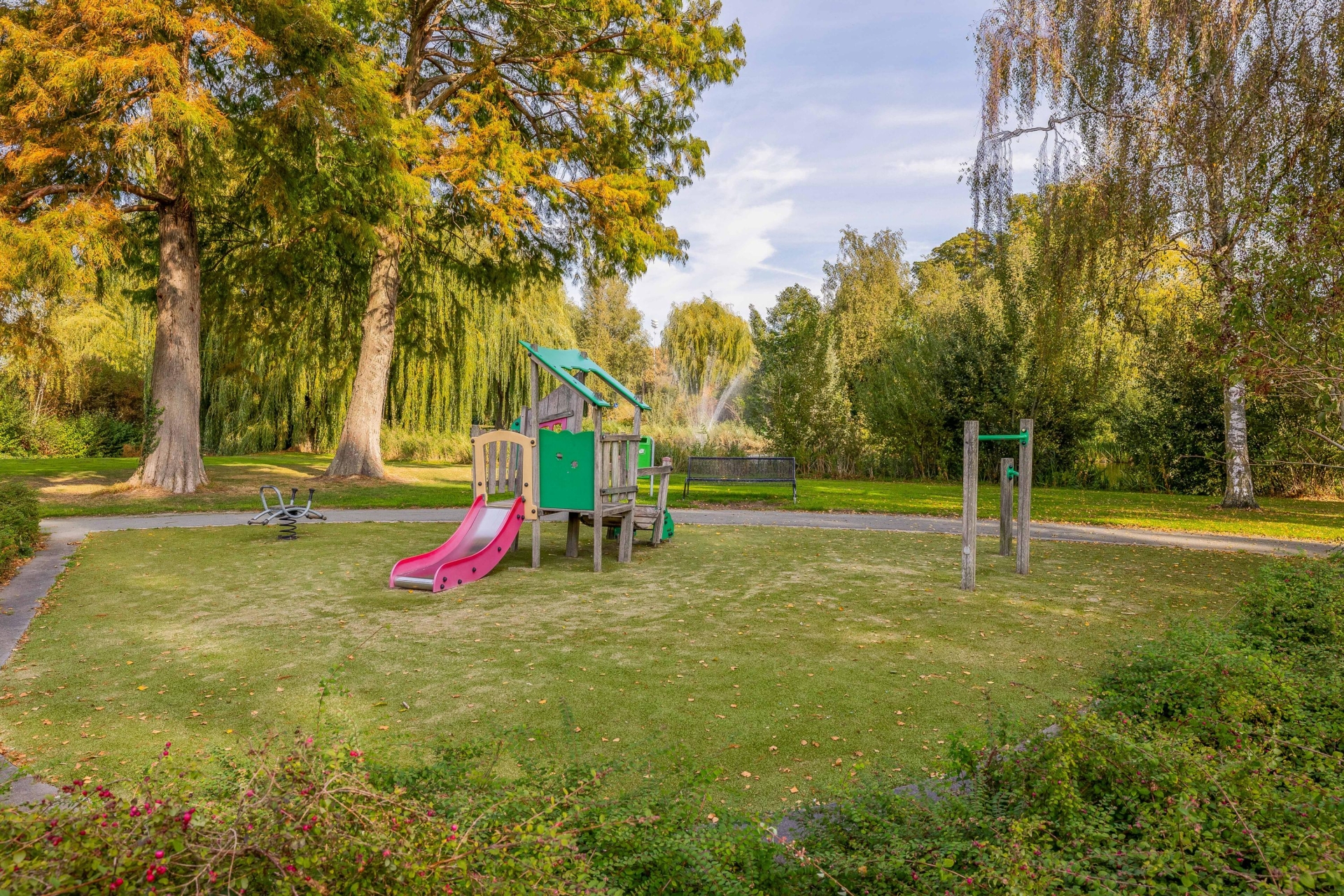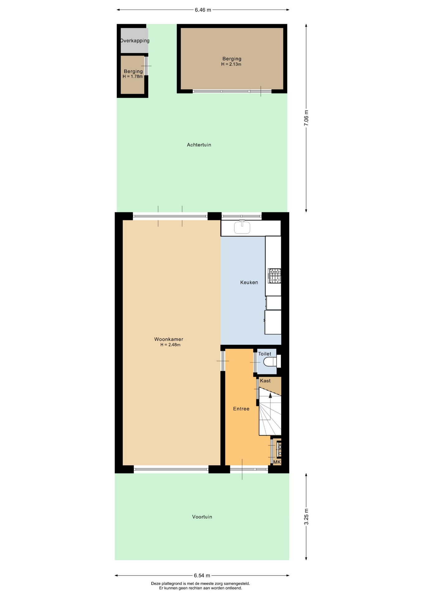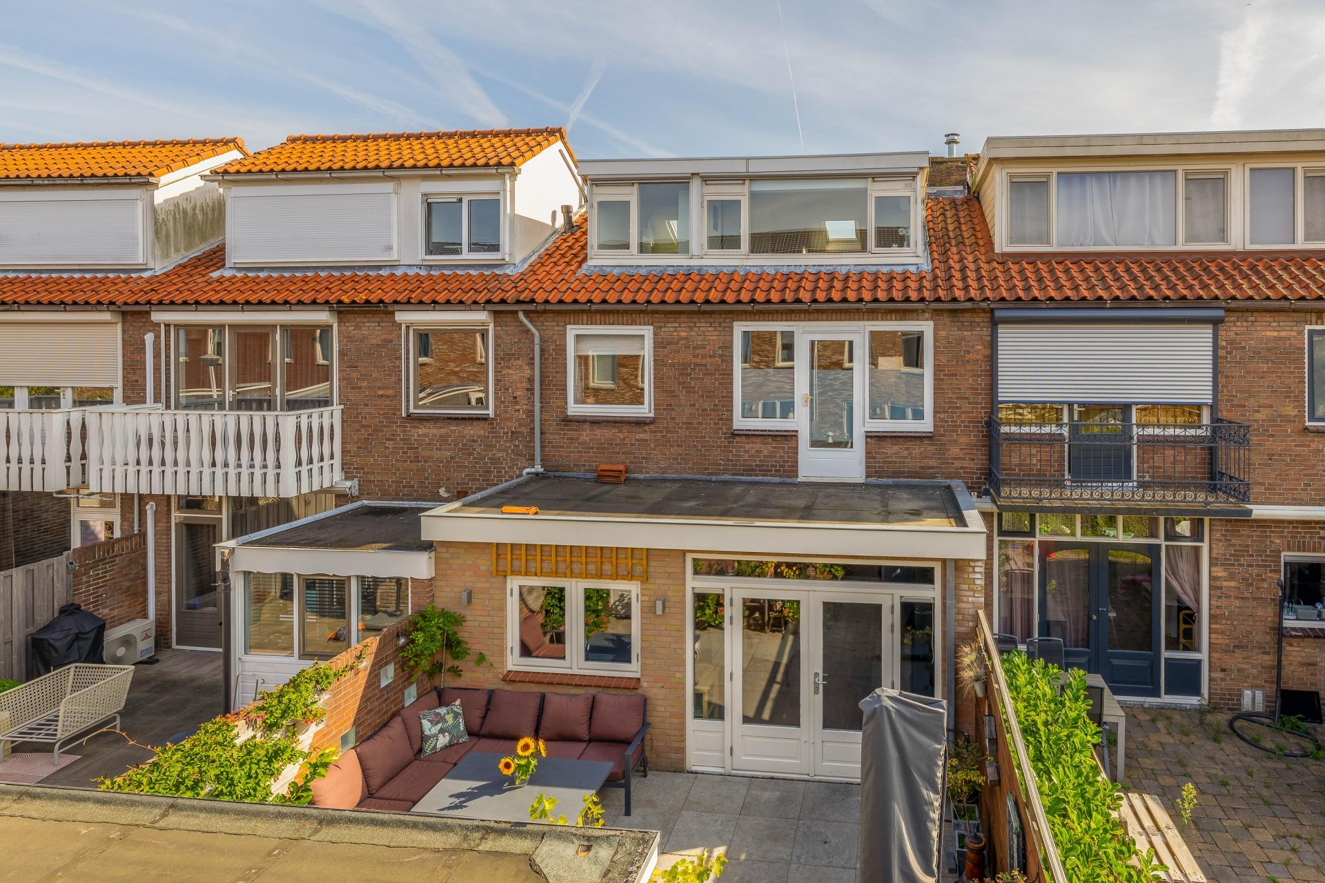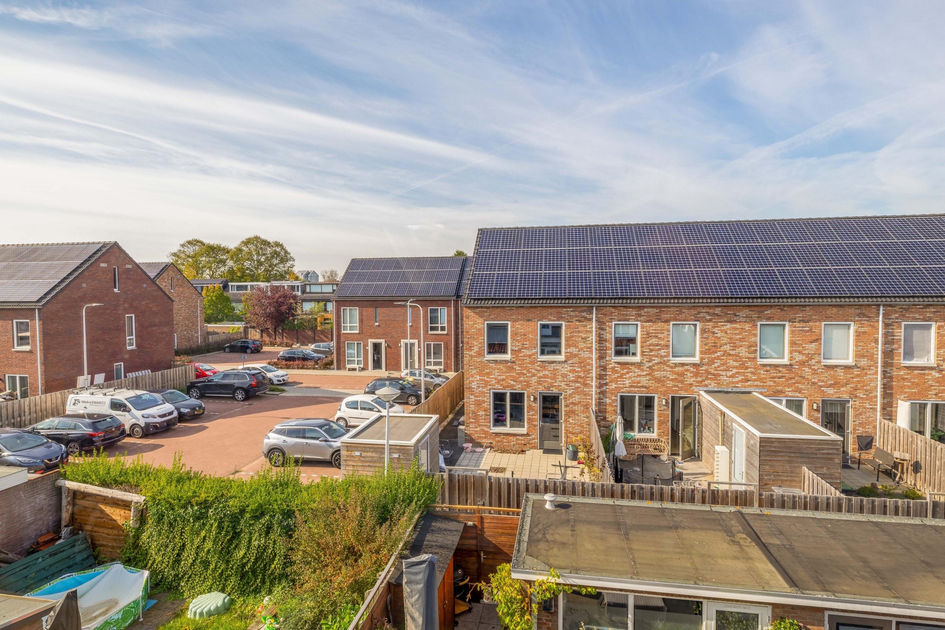 De achtertuin is onderhoudsvriendelijk aangelegd met grote tegels, groenborders en genoeg plek voor een loungeset of eettafel. Dankzij de ligging op het noordwesten heb je hier in de middag en avondzon een heerlijk plekje om te ontspannen. Achterin staat een vrijstaande stenen berging met elektra – ideaal voor fietsen, gereedschap of de barbecue. Via de achterom kom je zo uit op een pad richting de openbare parkeerplaatsen. Ook aan de voorzijde is het netjes aangelegd met een eigen pad naar de voordeur en volwassen beplanting voor privacy en uitstraling.