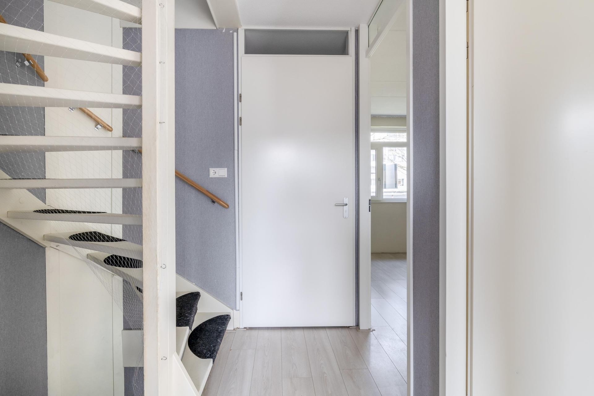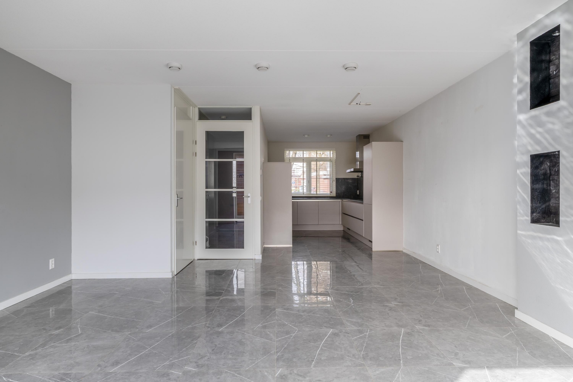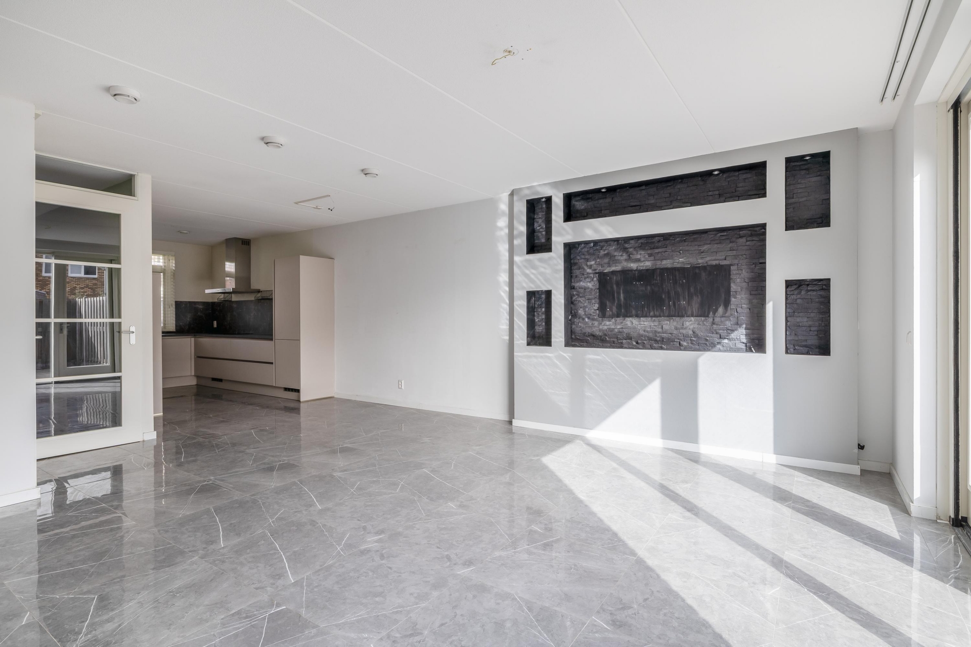 Via de verzorgde entree met hal, meterkast en toilet kom je in de woonkamer. Direct valt op hoe licht en ruim de leefruimte aanvoelt. Grote ramen zorgen voor veel daglicht en een prettige sfeer in huis.