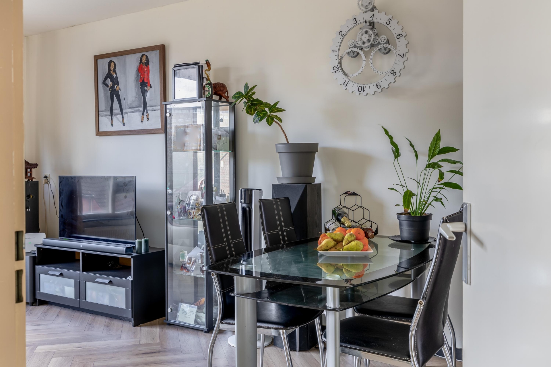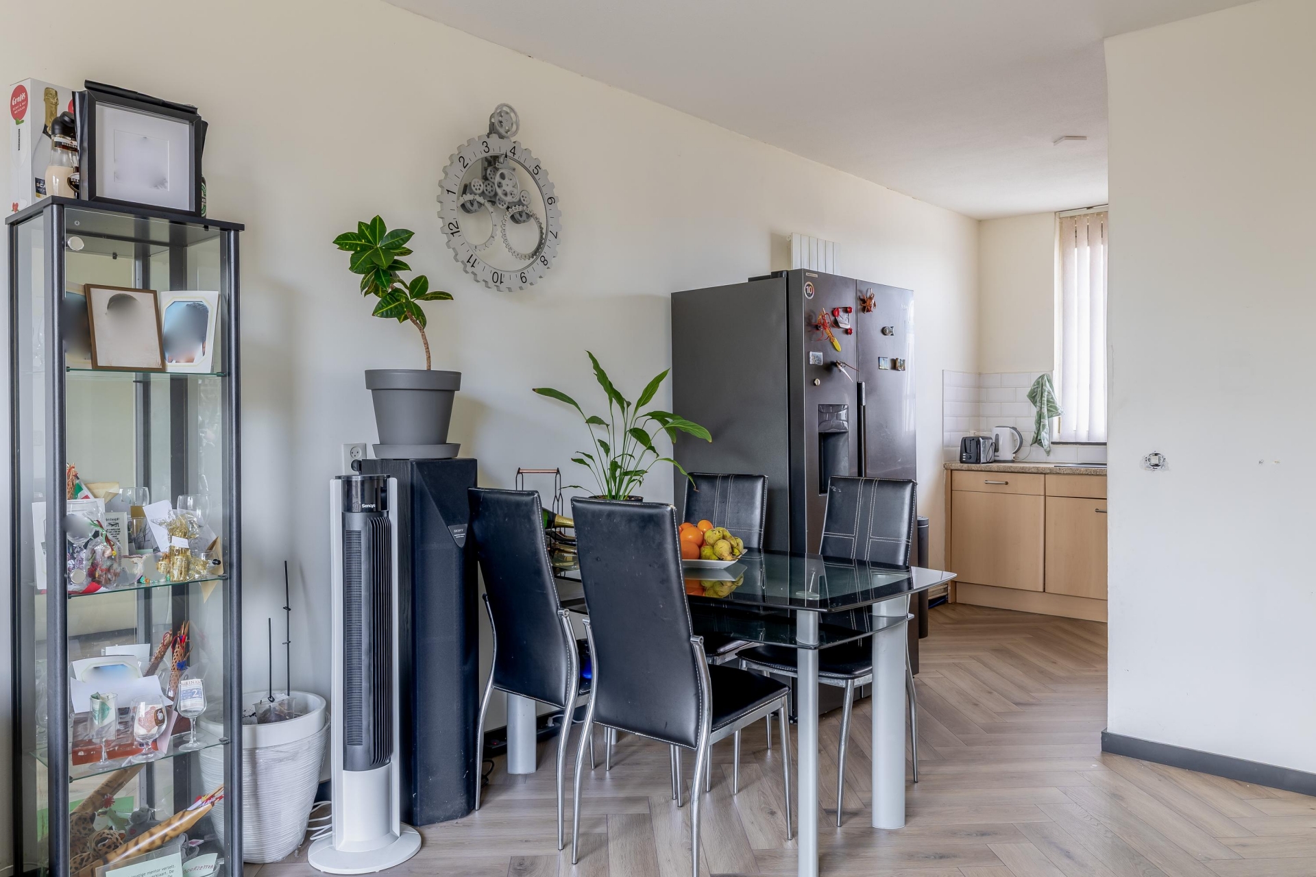 De woonkamer is ruim opgezet en biedt voldoende plek voor zowel een comfortabele zithoek als een gezellige eethoek. De open verbinding met de keuken maakt het geheel extra prettig. Of je nu lekker op de bank zit of aan tafel eet, je staat altijd in contact met de ruimte.