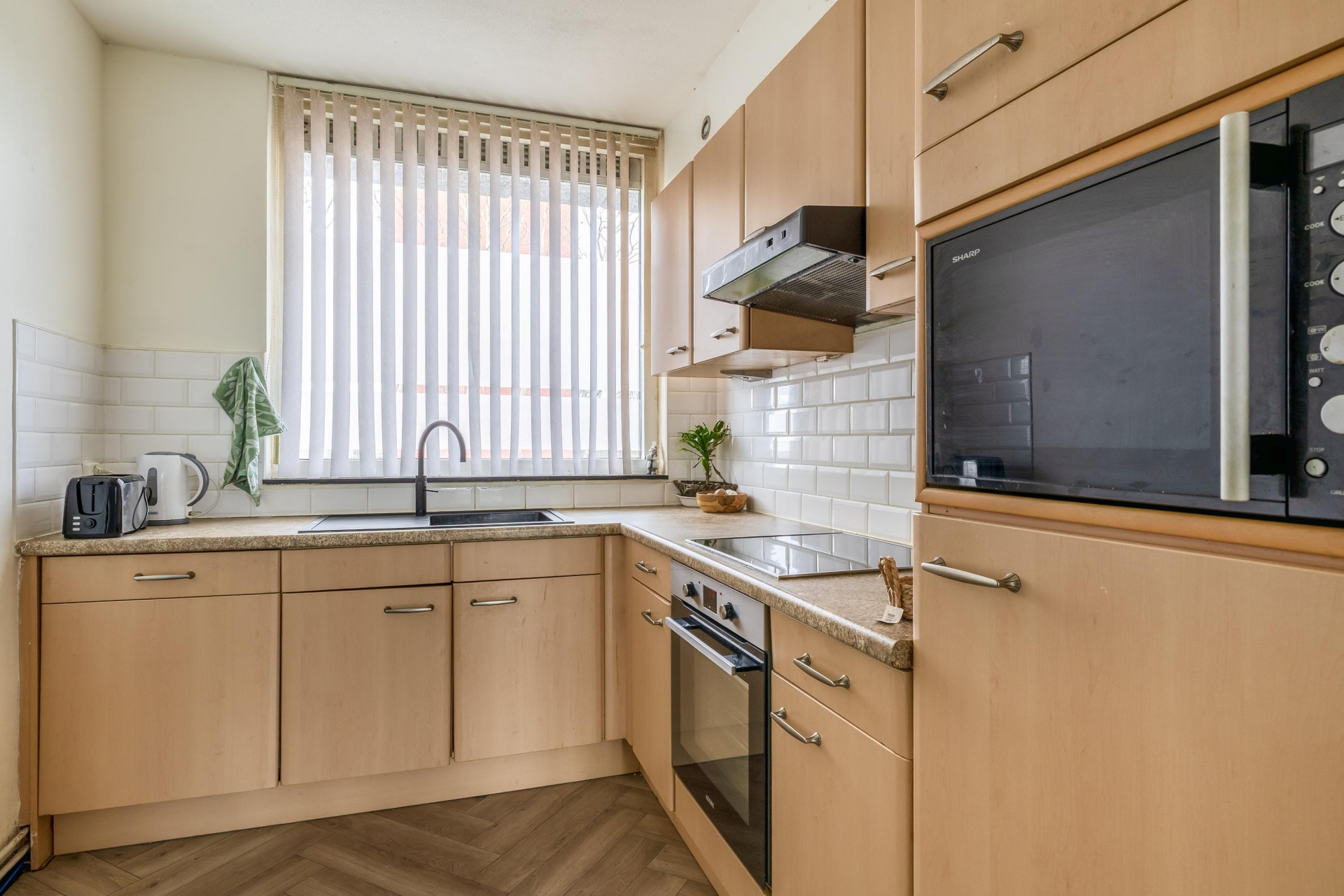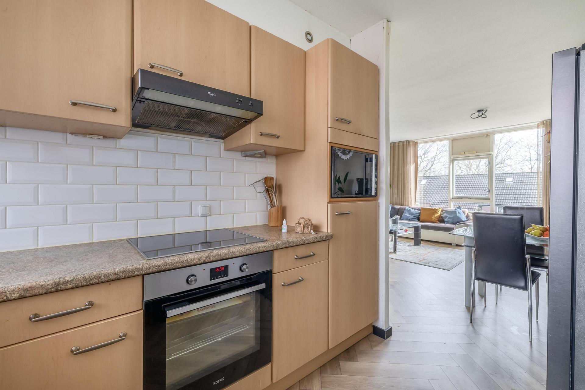 De keuken is functioneel ingericht en voorzien van de benodigde inbouwapparatuur. Hier heb je alles bij de hand om dagelijks comfortabel te koken.