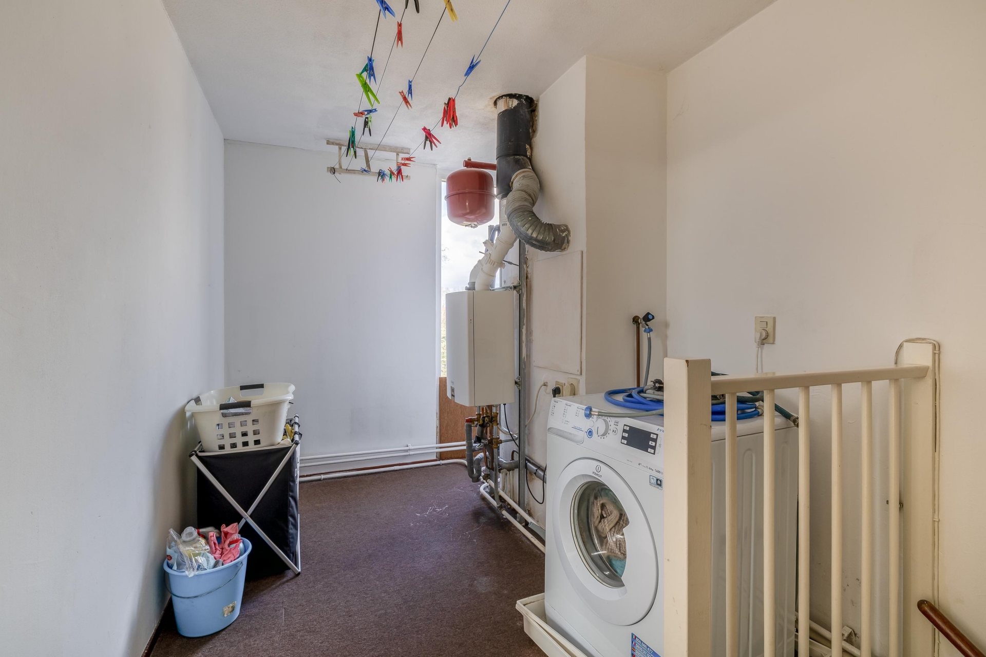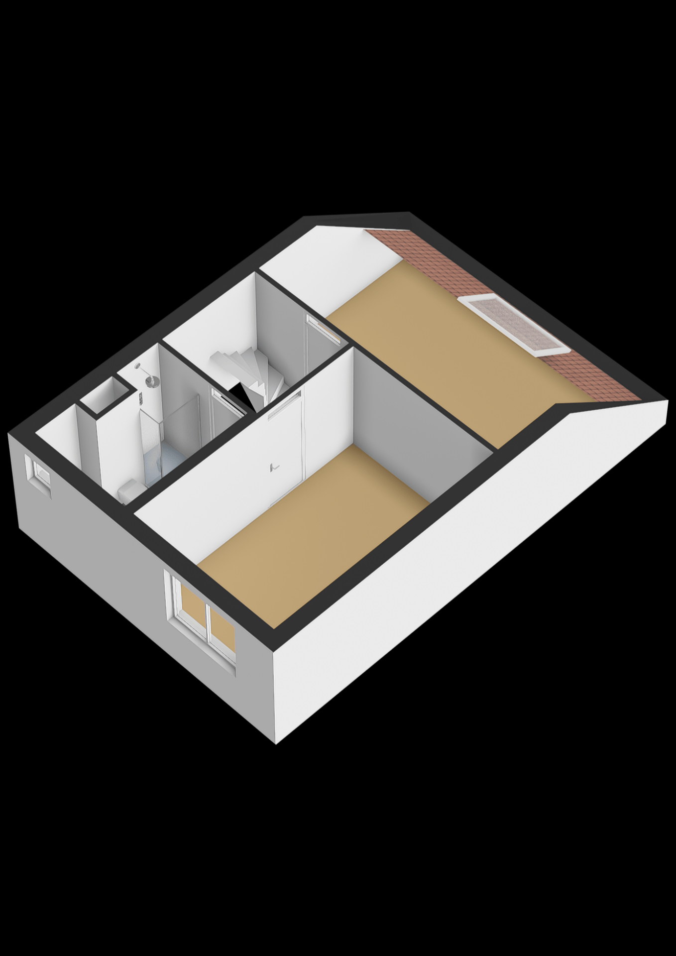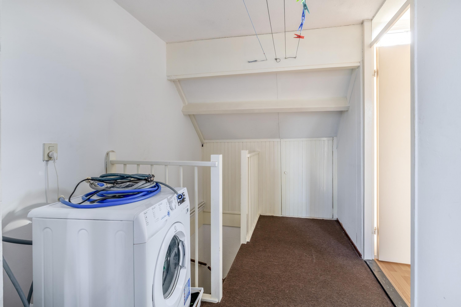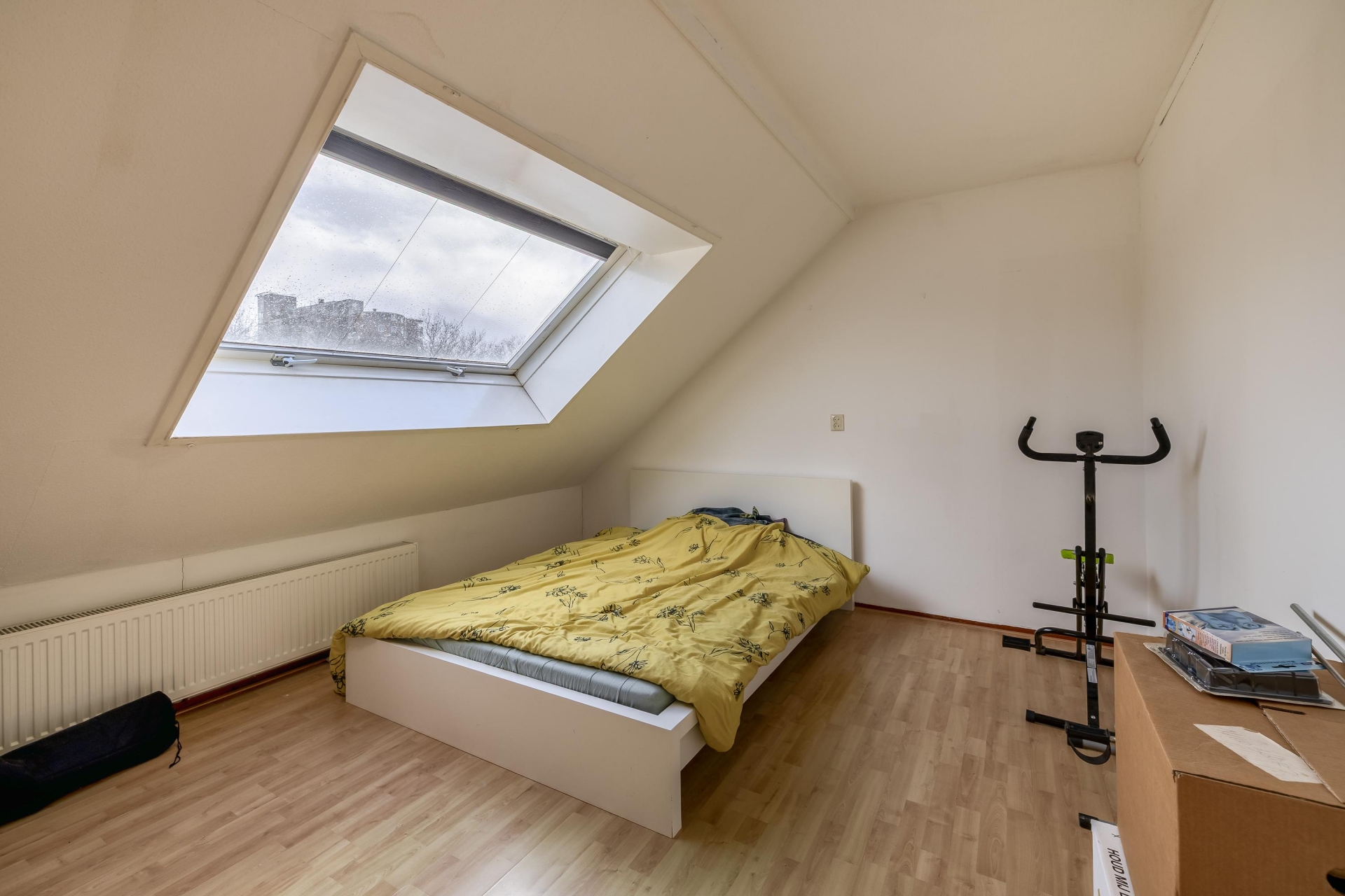 Op de bovenste verdieping bevindt zich de derde slaapkamer. Dankzij de kap en het dakraam heeft deze kamer een eigen karakter en veel lichtinval. Ook is hier een aparte wasruimte met opstelling voor de wasmachine en de cv-ketel (Remeha Avanta, 2021). Daarnaast is er praktische bergruimte aanwezig achter de knieschotten.