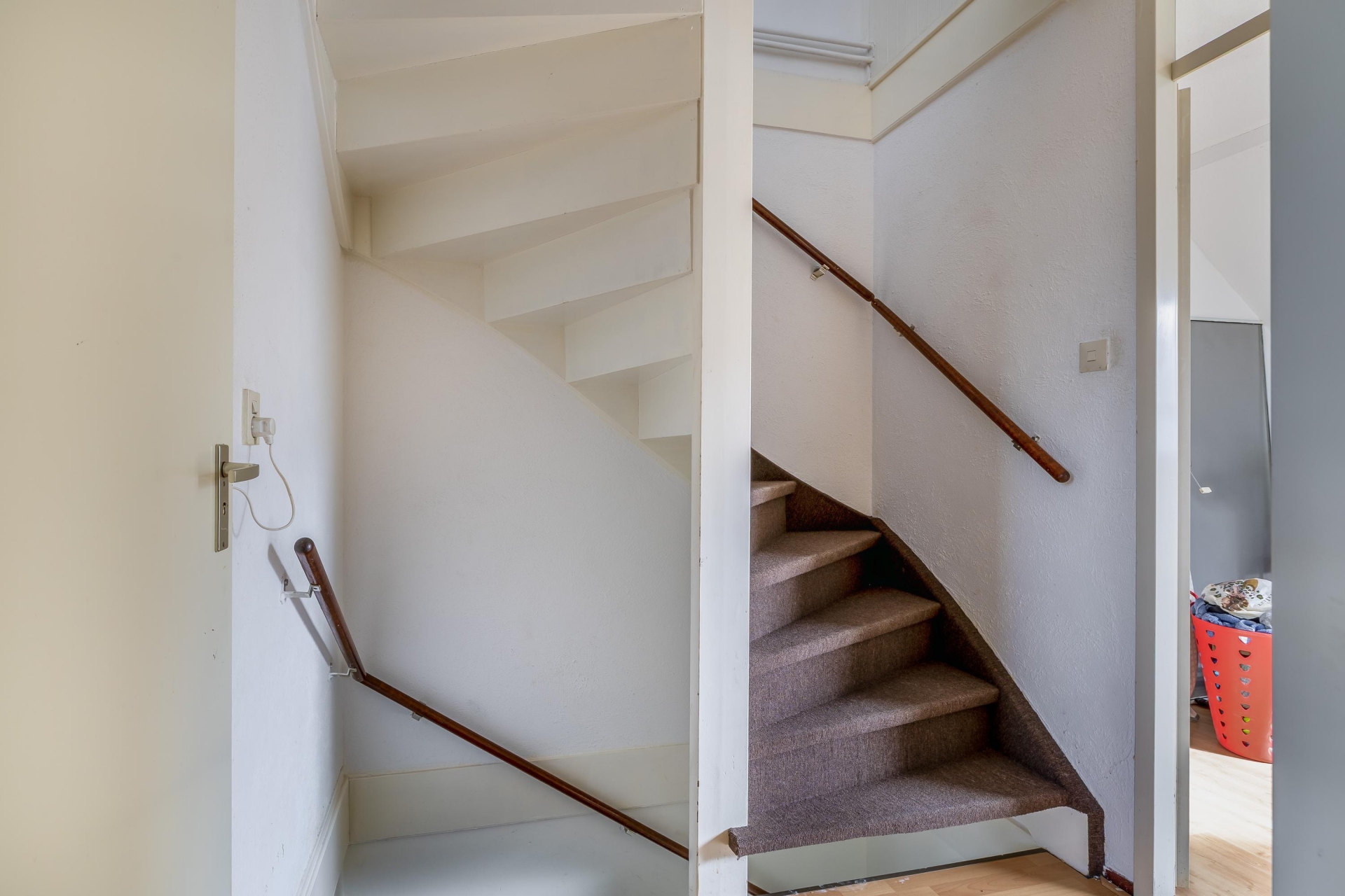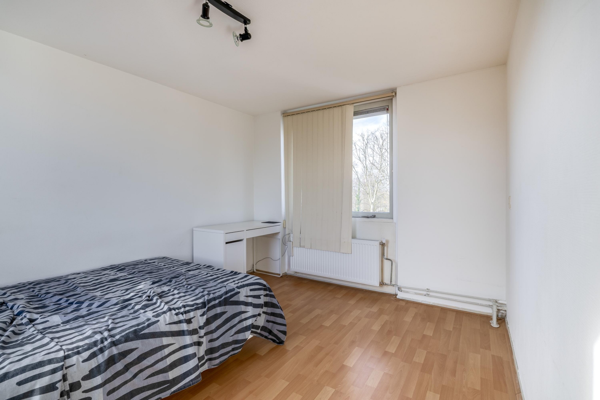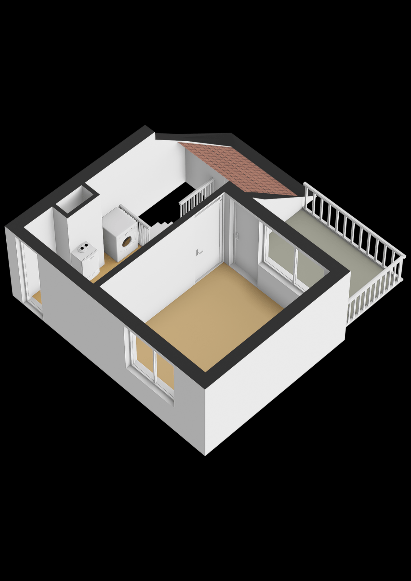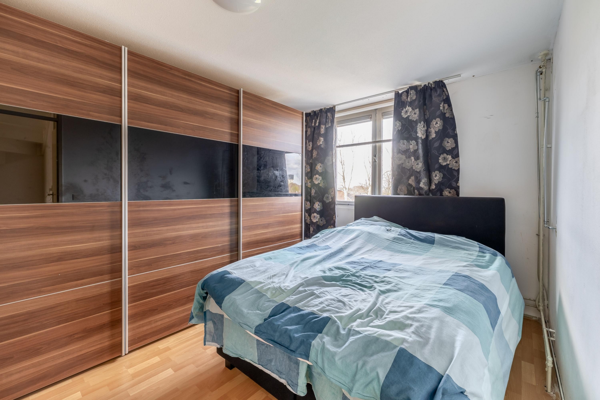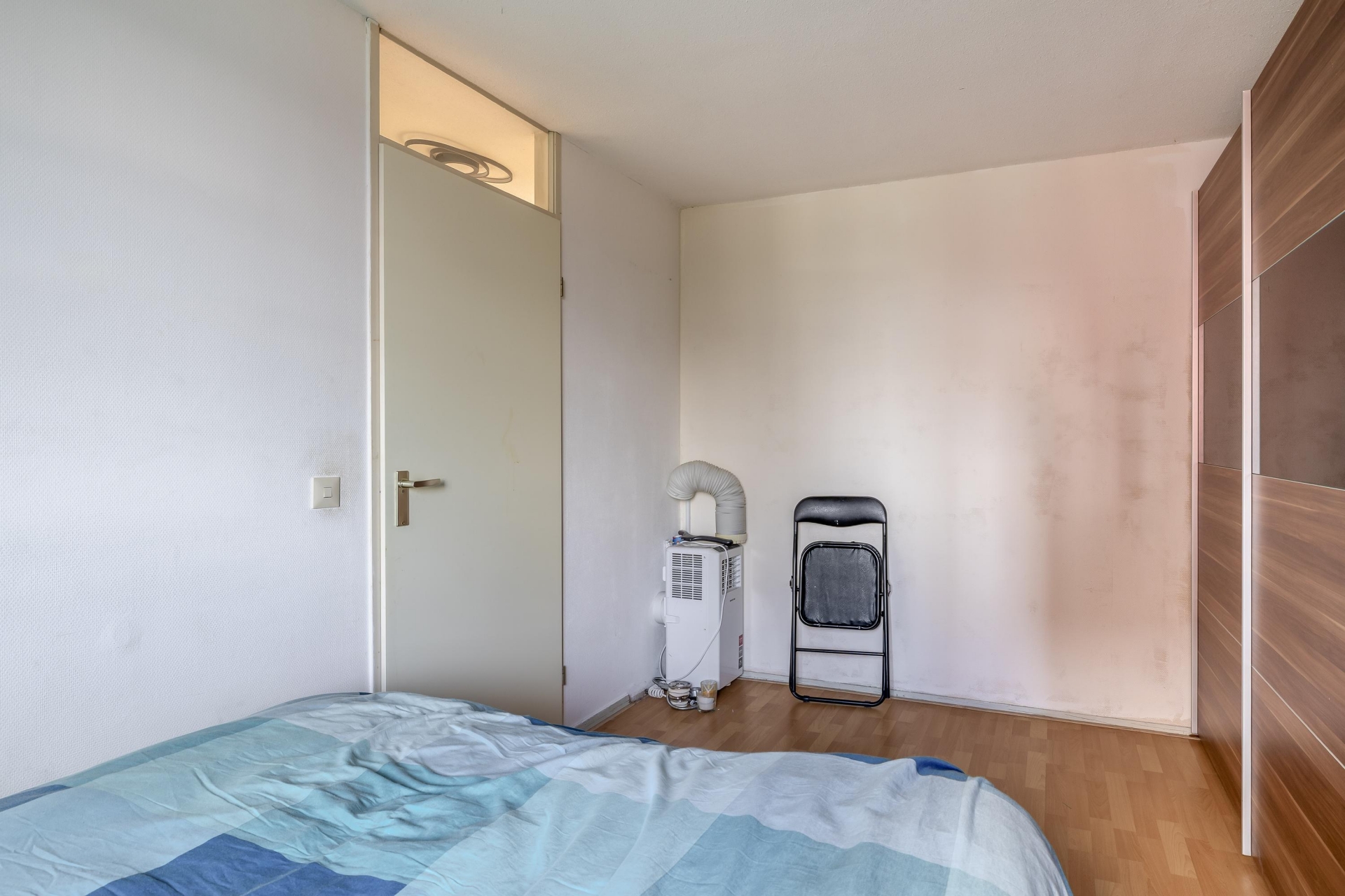 Op de bovenste verdieping bevindt zich de derde slaapkamer. Dankzij de kap en het dakraam heeft deze kamer een eigen karakter en veel lichtinval. Ook is hier een aparte wasruimte met opstelling voor de wasmachine en de cv-ketel (Remeha Avanta, 2021). Daarnaast is er praktische bergruimte aanwezig achter de knieschotten.