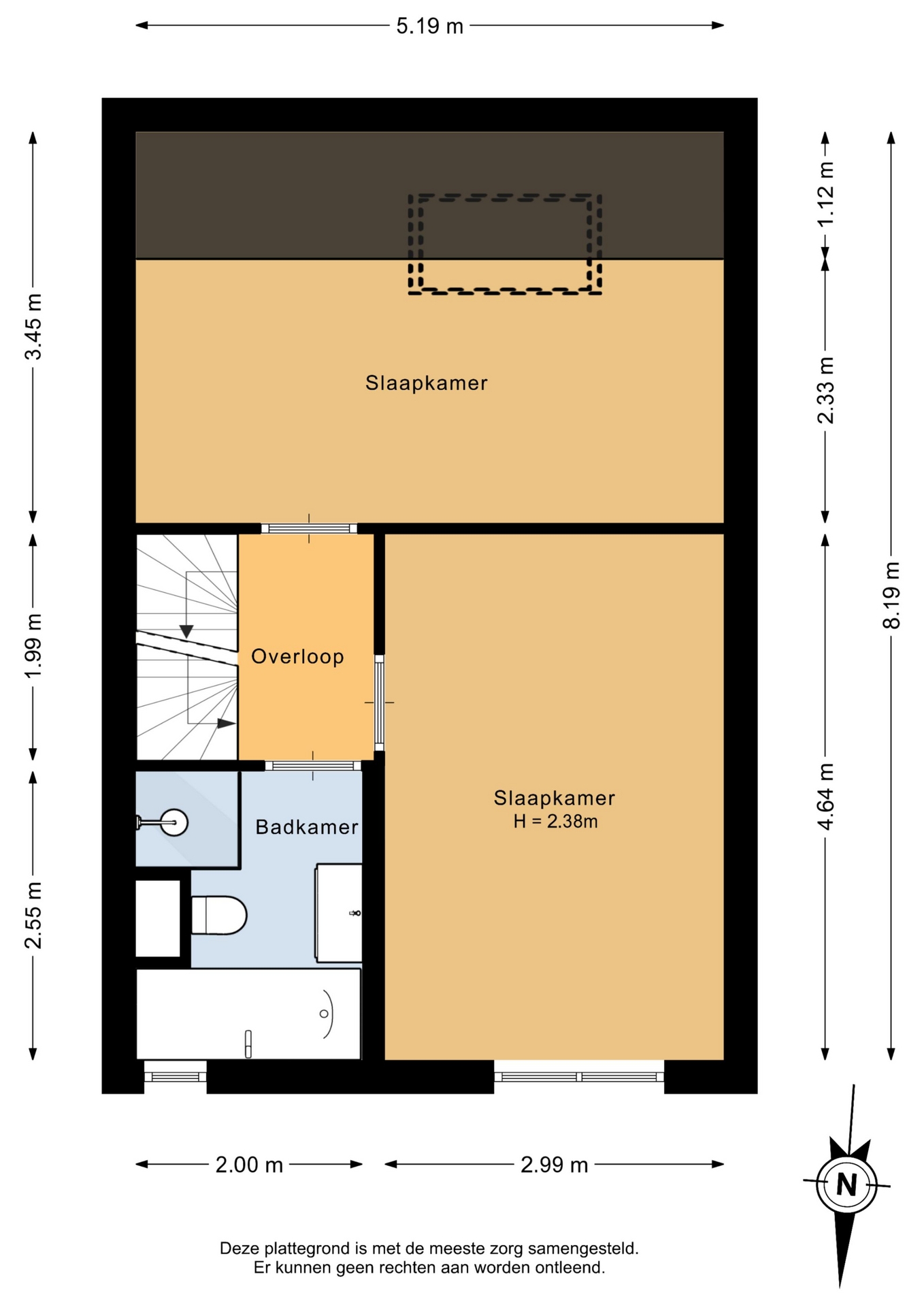 “Deze informatie is door ons met de nodige zorgvuldigheid samengesteld. Onzerzijds wordt echter geen enkele aansprakelijkheid aanvaard voor enige onvolledigheid, onjuistheid of anderszins, dan wel de gevolgen daarvan. Alle opgegeven maten en oppervlakten zijn indicatief.”
