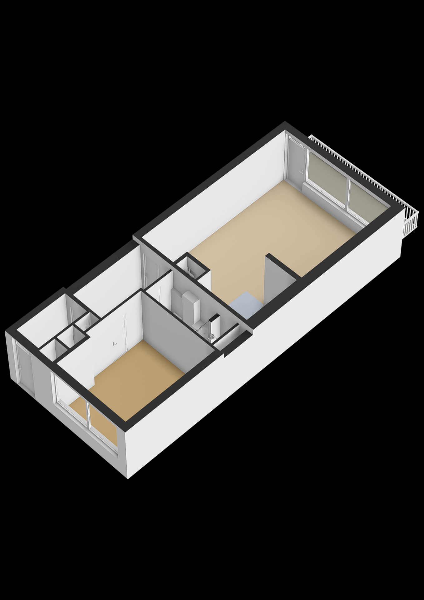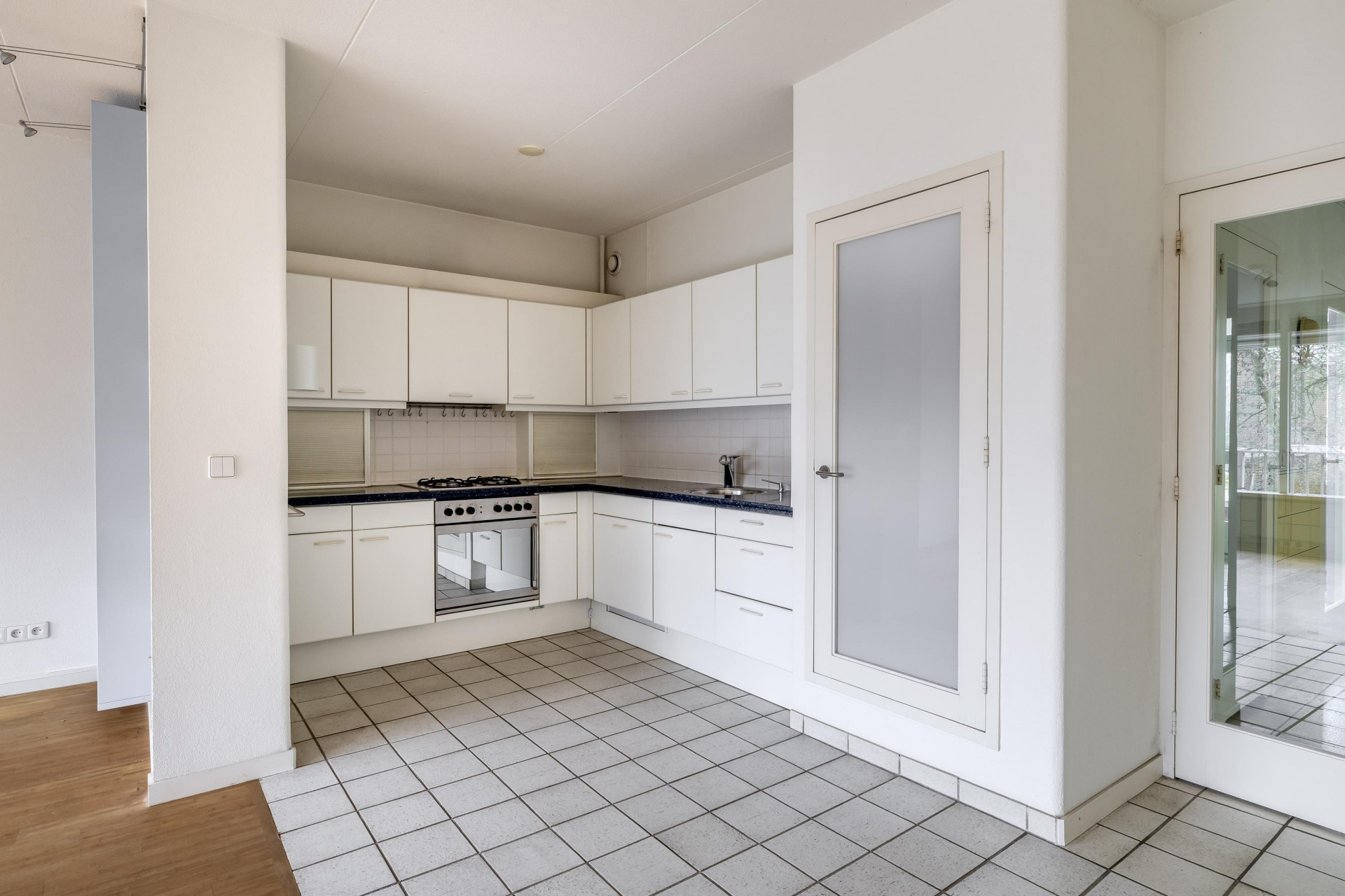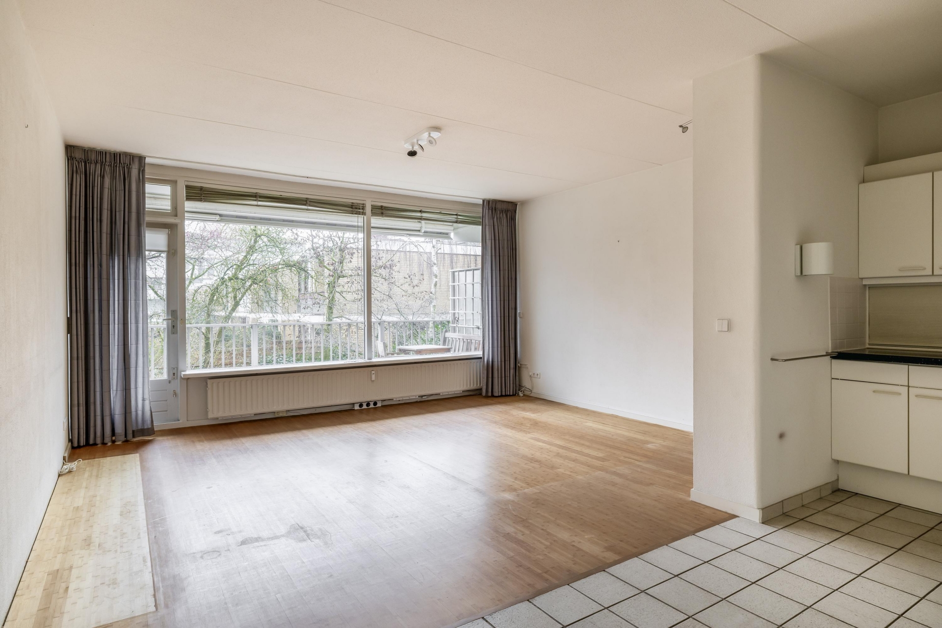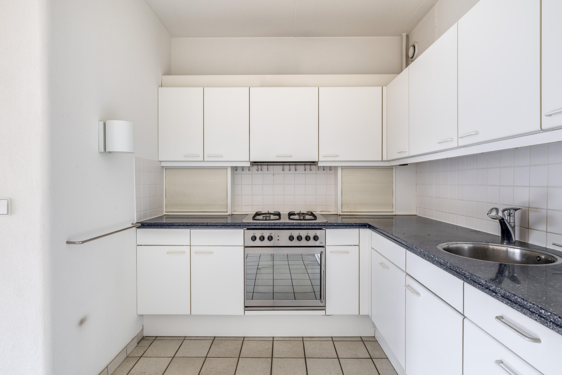 Woningentree via vestibule en gang, voorzien van plavuizen vloer en met garderobe- en meterkast; woon-eetkamer, voorzien van laminaatvloer en met een open keuken met een L-vormige blok met oven, kookplaat, aansluiting wasmachine en een vaste kast met boiler en een deur naar het zonnige balkon over de volle breedte met elektrische zonwering; slaapkamer, voorzien van laminaatvloer; badkamer, voorzien van douche, wastafelmeubel en toilet; (fietsen-)berging in de onderbouw.