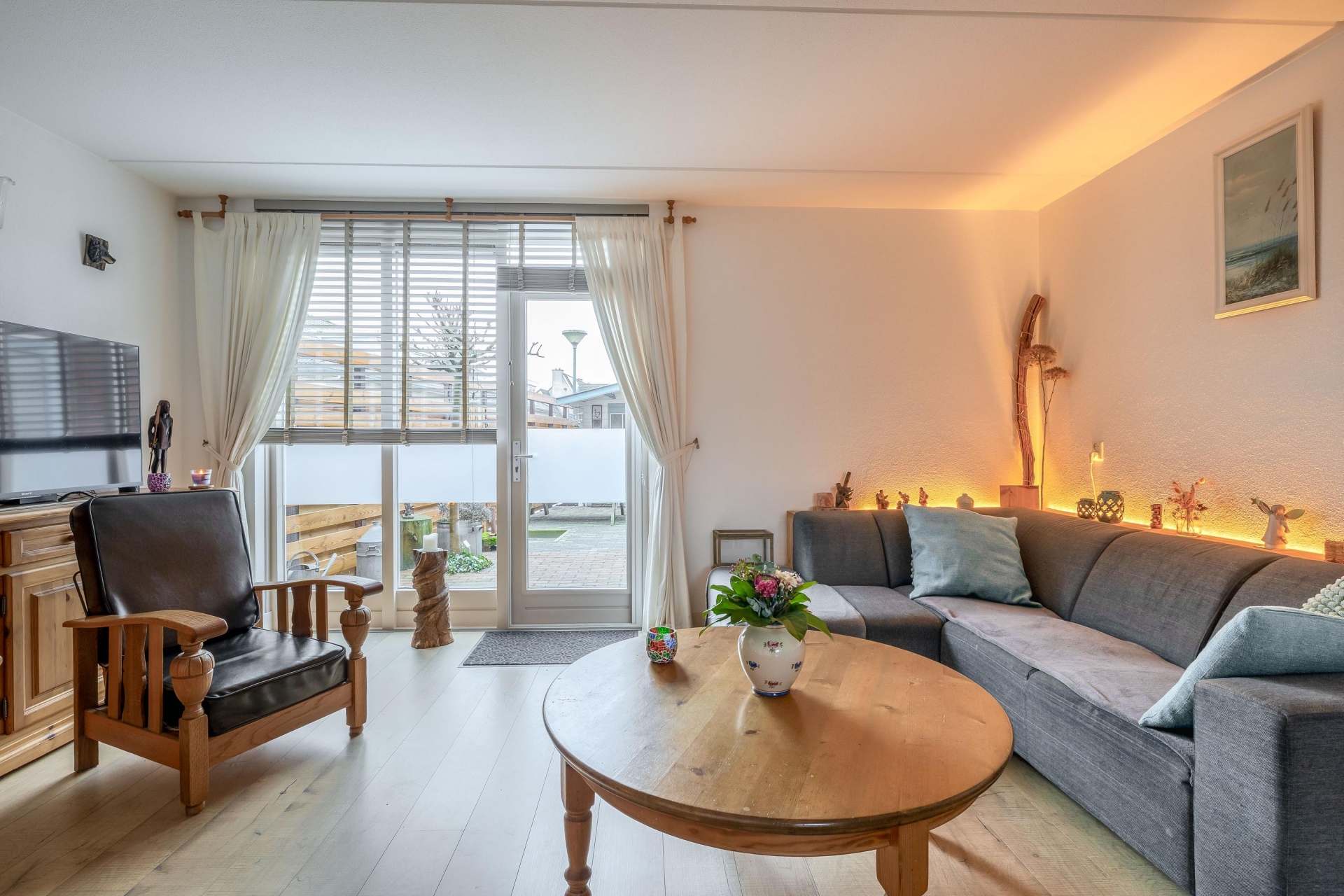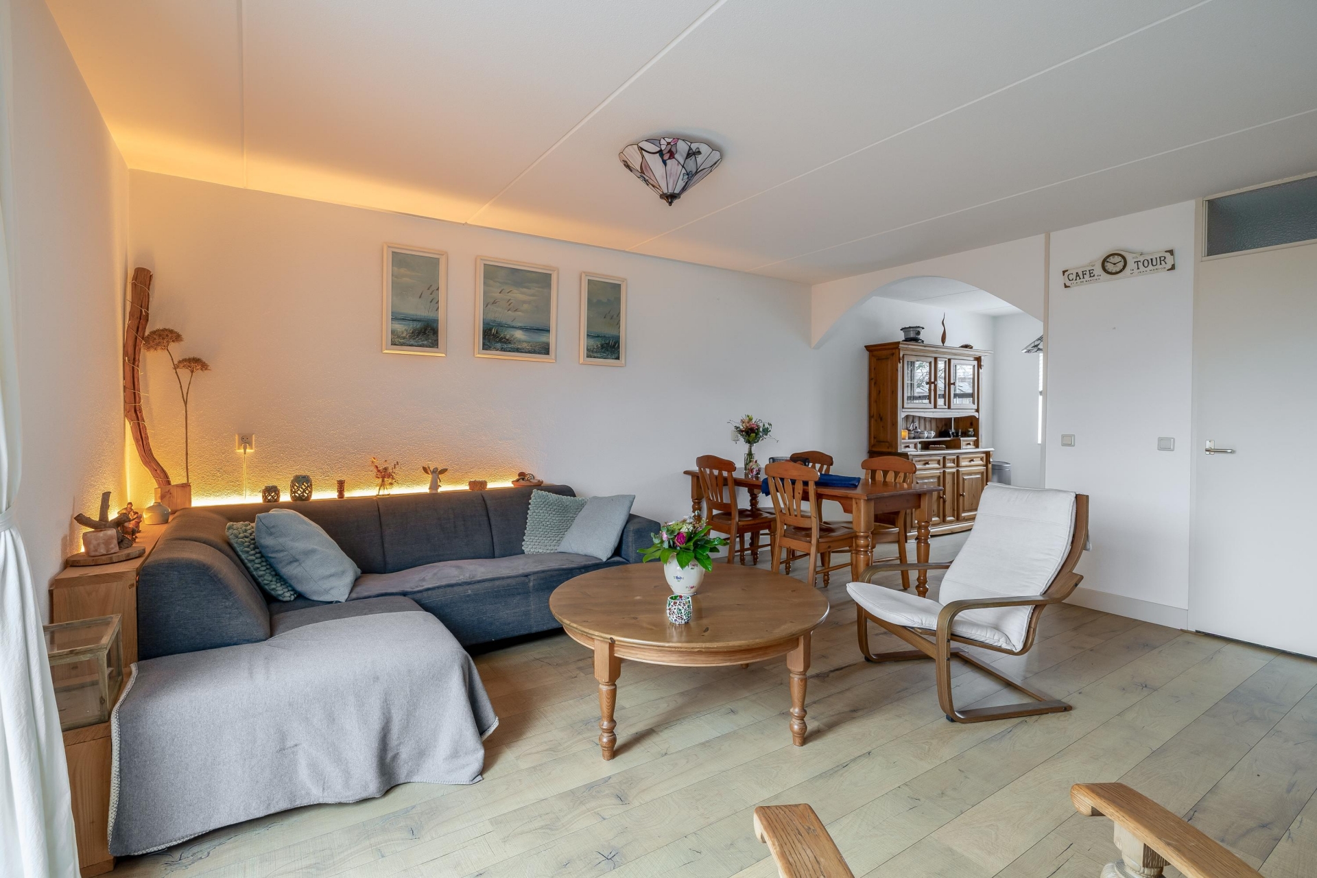 LICHTE WOONKAMER MET HOUTKACHEL