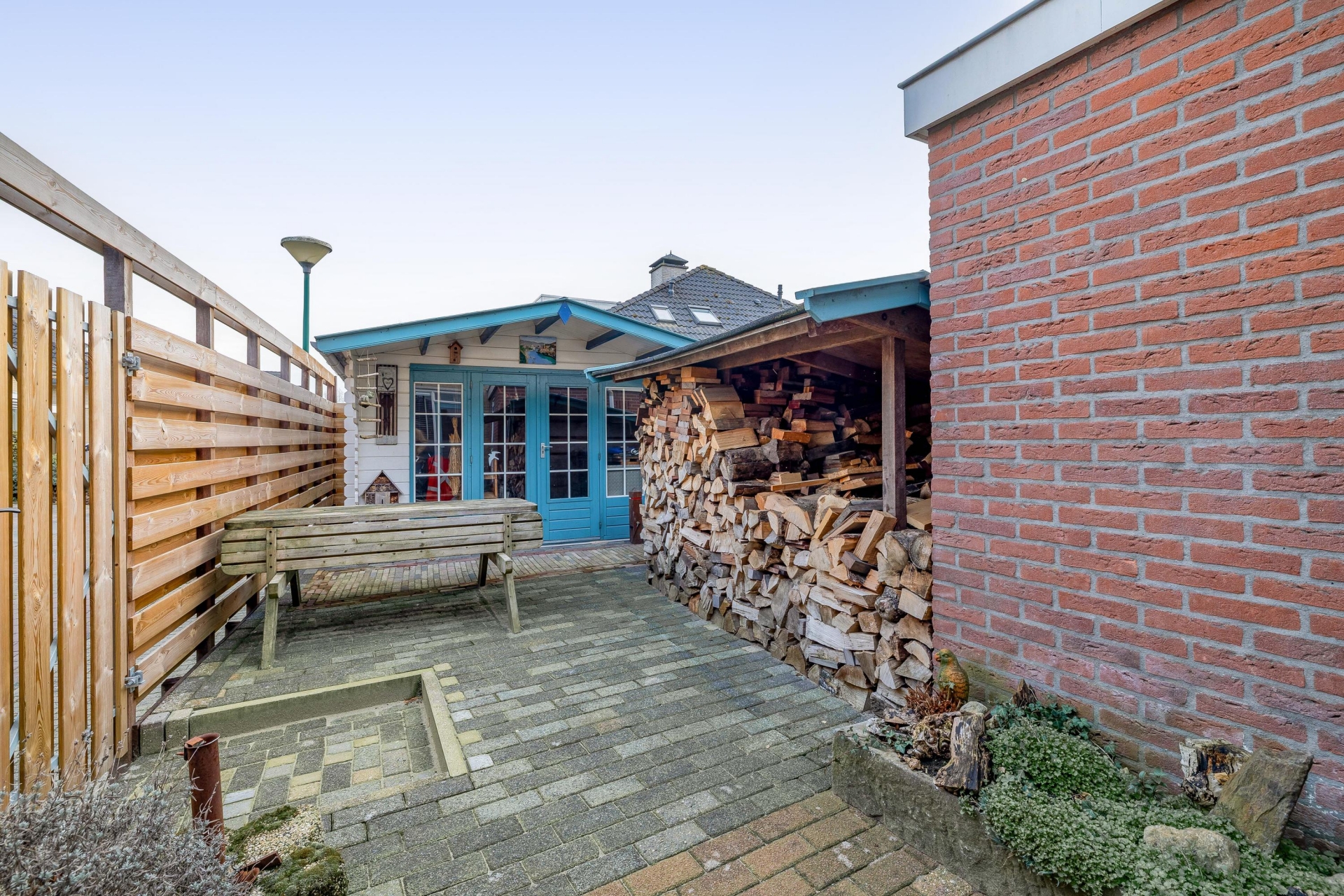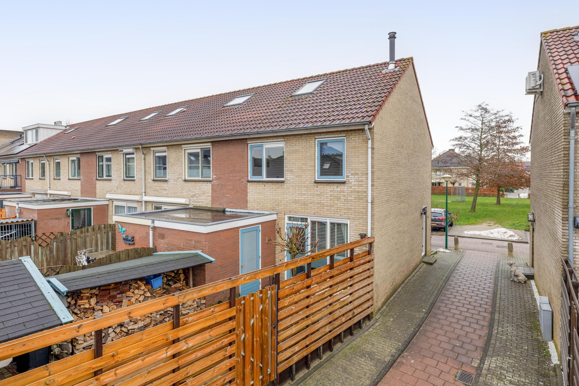 Doordat het een hoekperceel is, ervaar je net dat beetje extra vrijheid en rust in de tuin. Bovendien is de tuin via een eigen achterom bereikbaar, wat het dagelijks gebruik erg praktisch maakt.