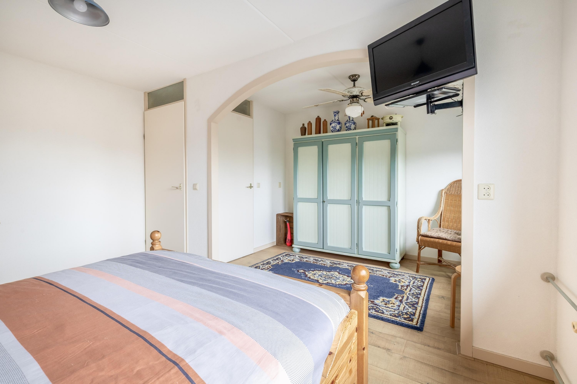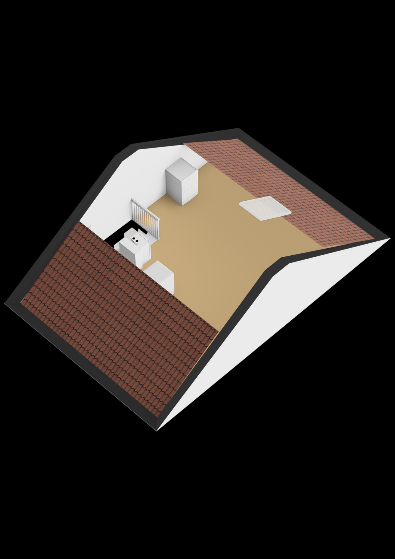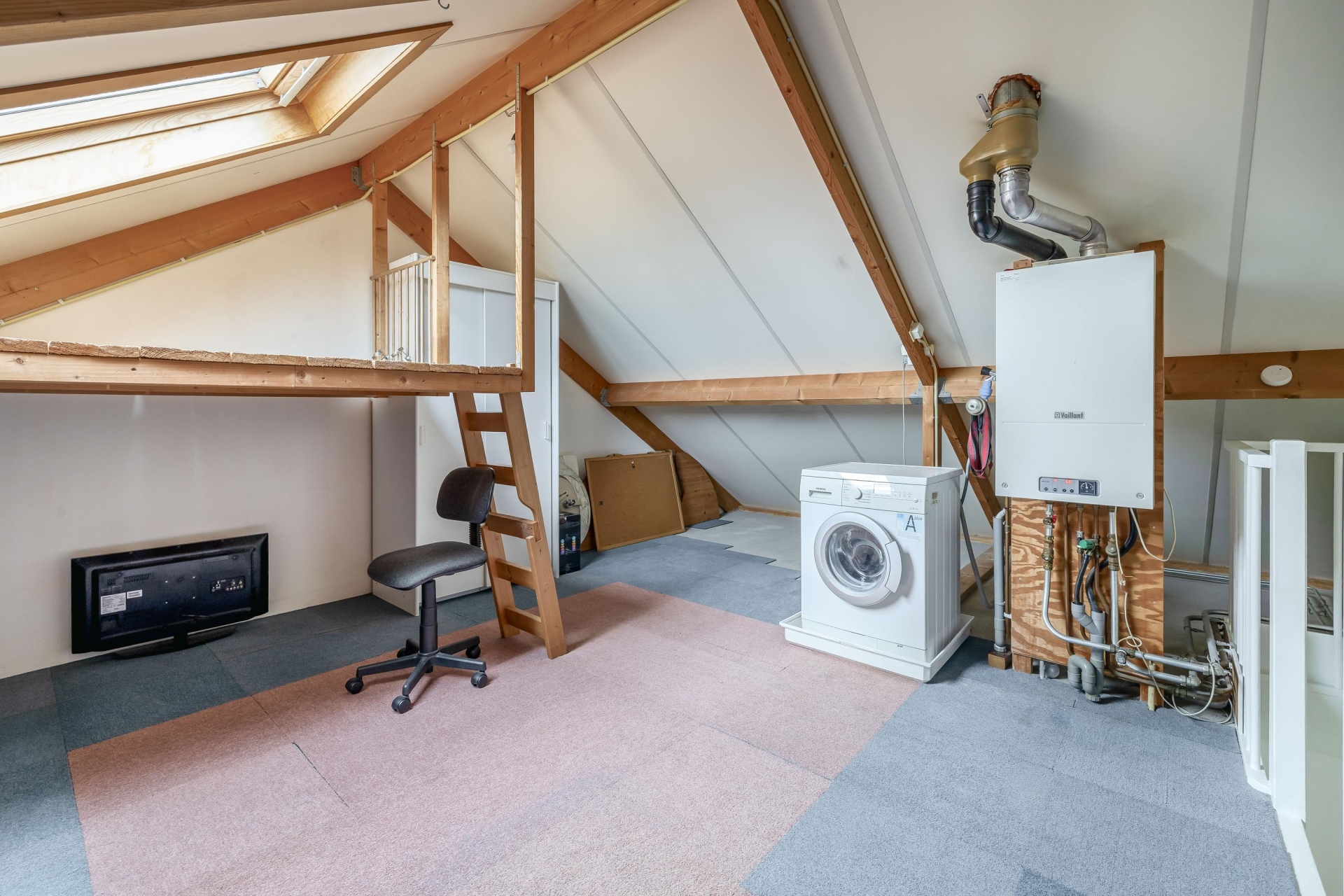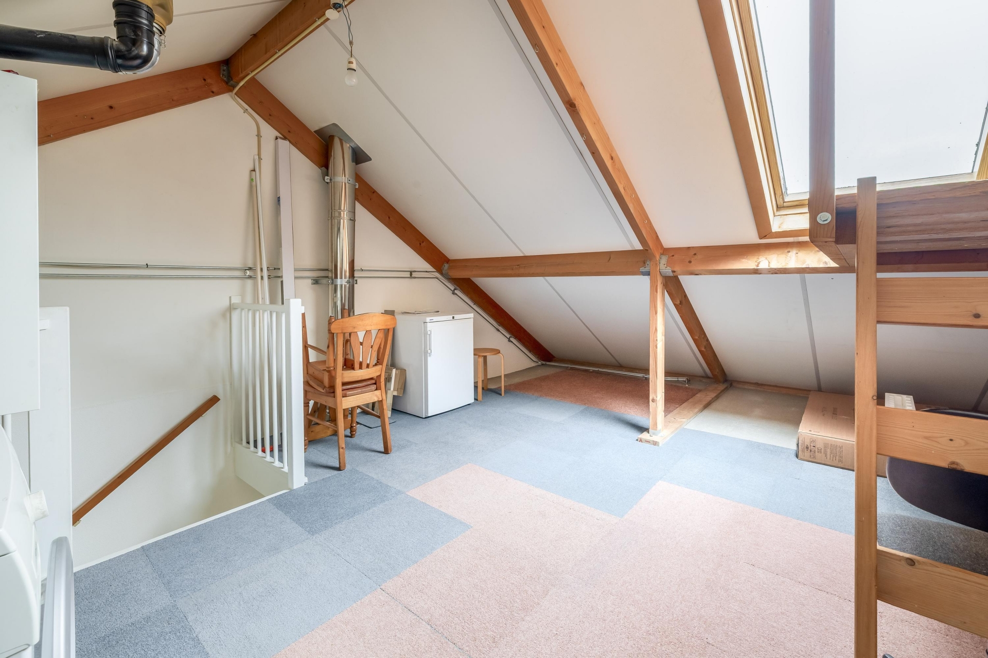 Op de tweede verdieping bevindt zich een vierde slaapkamer, bereikbaar via een vaste trap. Deze ruimte is ideaal als logeerkamer, werkkamer of als vierde slaapkamer. Er is hier ook plek voor de wasmachine en voldoende bergruimte onder de schuine kap.