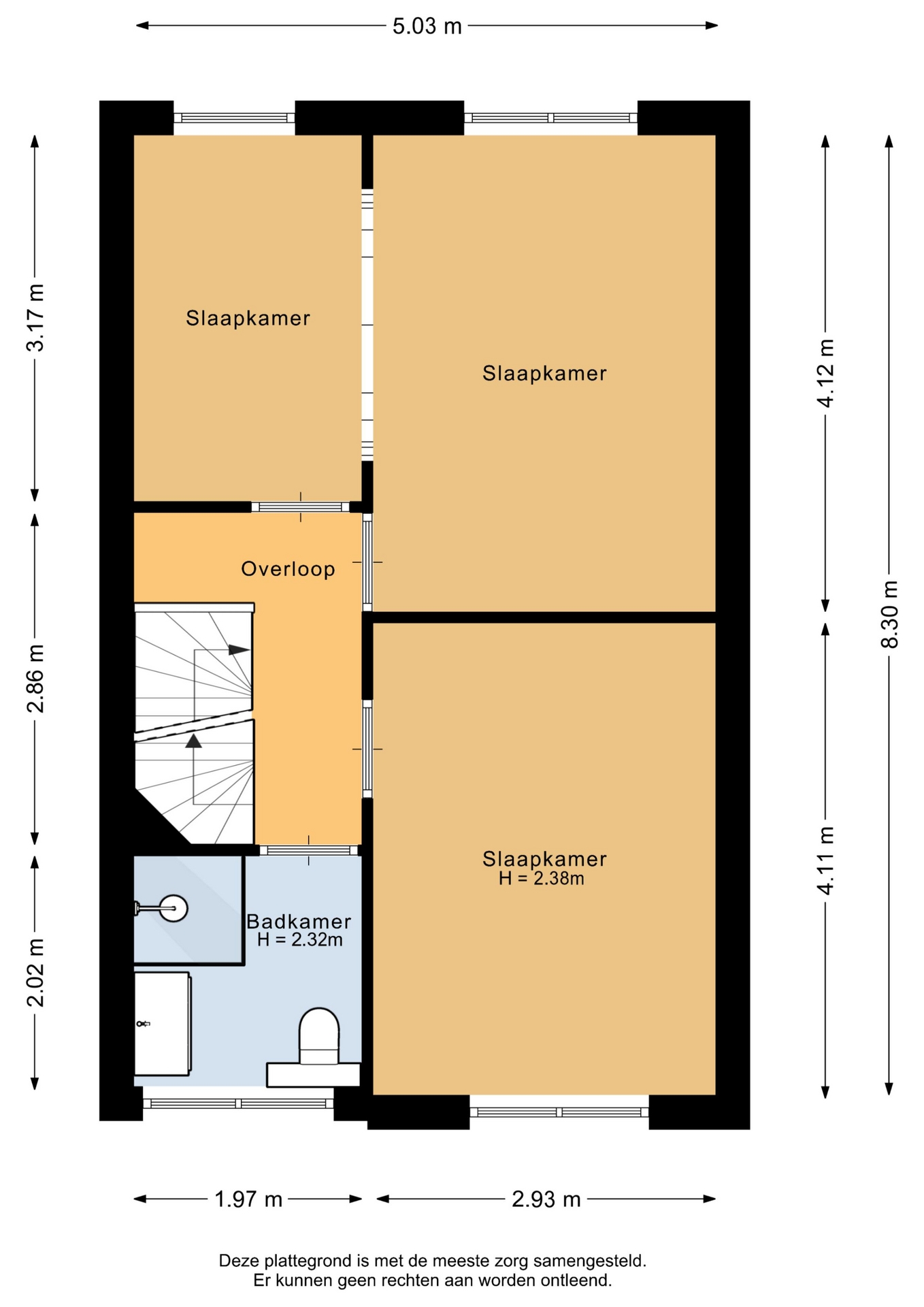“Deze informatie is door ons met de nodige zorgvuldigheid samengesteld. Onzerzijds wordt echter geen enkele aansprakelijkheid aanvaard voor enige onvolledigheid, onjuistheid of anderszins, dan wel de gevolgen daarvan. Alle opgegeven maten en oppervlakten zijn indicatief.”
