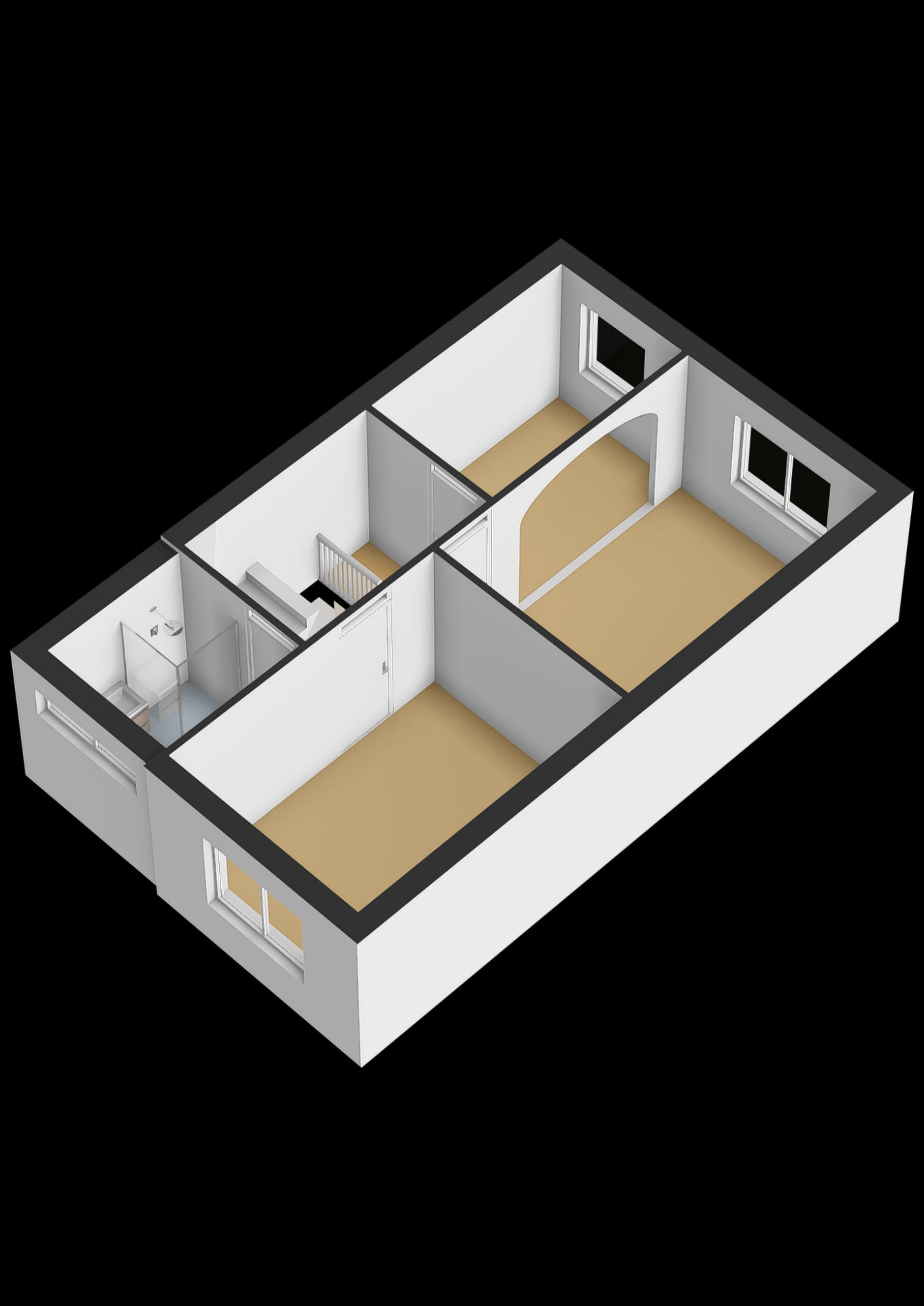 Op de eerste verdieping zijn 2 (voorheen 3) slaapkamers te vinden. De kamers zijn netjes afgewerkt en voorzien van grote ramen met prettig daglicht. De badkamer is modern en slim ingedeeld met een ruime inloopdouche, een wastafelmeubel en een tweede toilet. Met een simpele aanpassing is de 3e slaapkamer makkelijk te realiseren.