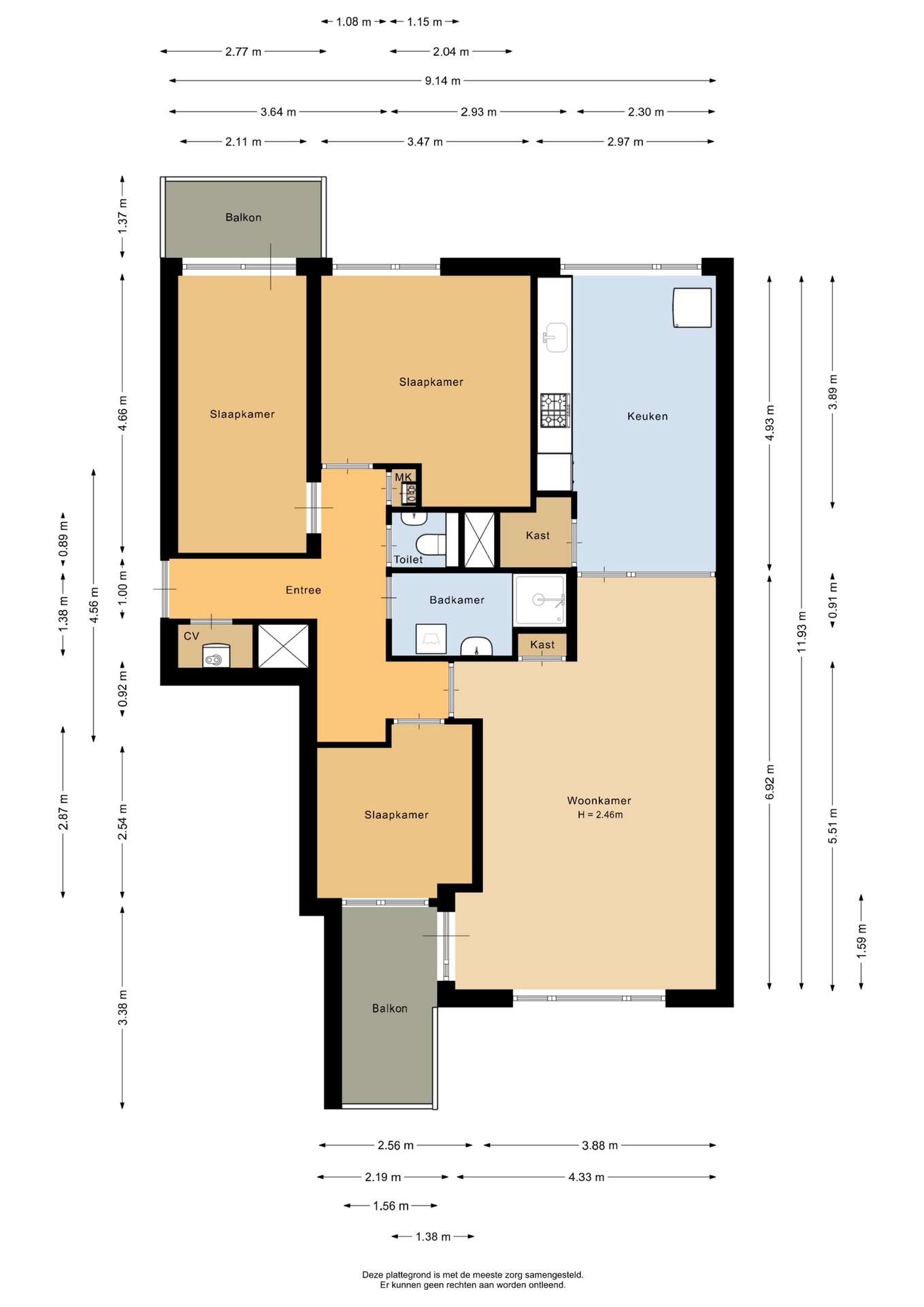 “Deze informatie is door ons met de nodige zorgvuldigheid samengesteld. Onzerzijds wordt echter geen enkele aansprakelijkheid aanvaard voor enige onvolledigheid, onjuistheid of anderszins, dan wel de gevolgen daarvan. Alle opgegeven maten en oppervlakten zijn indicatief.”