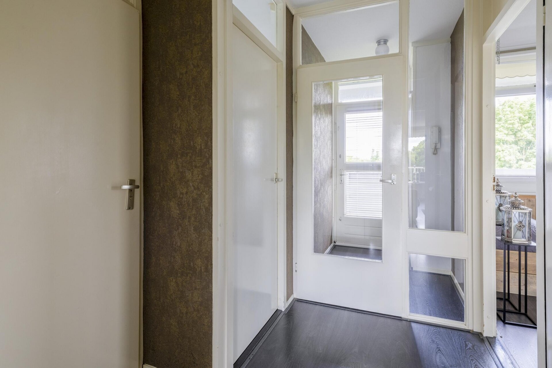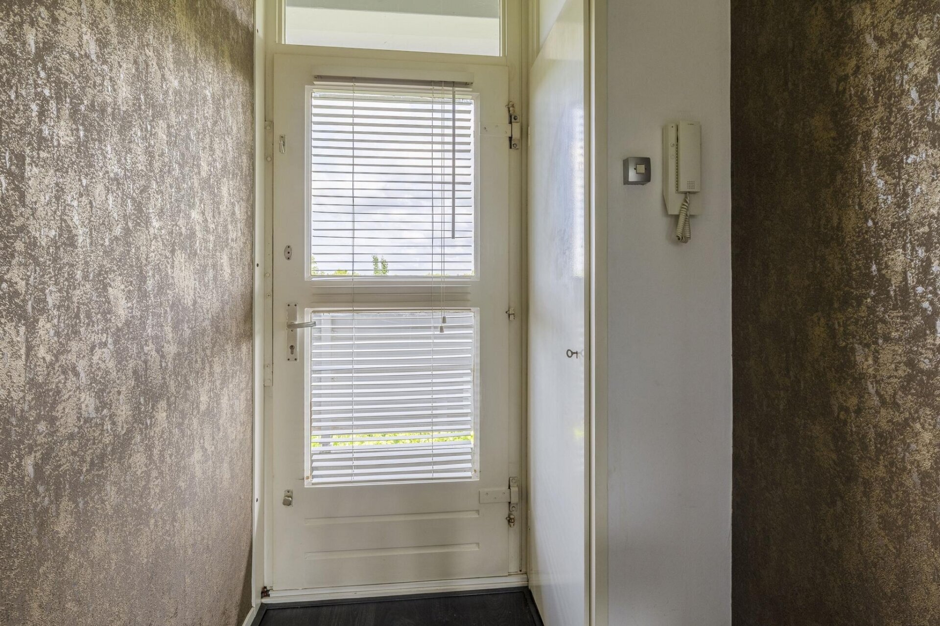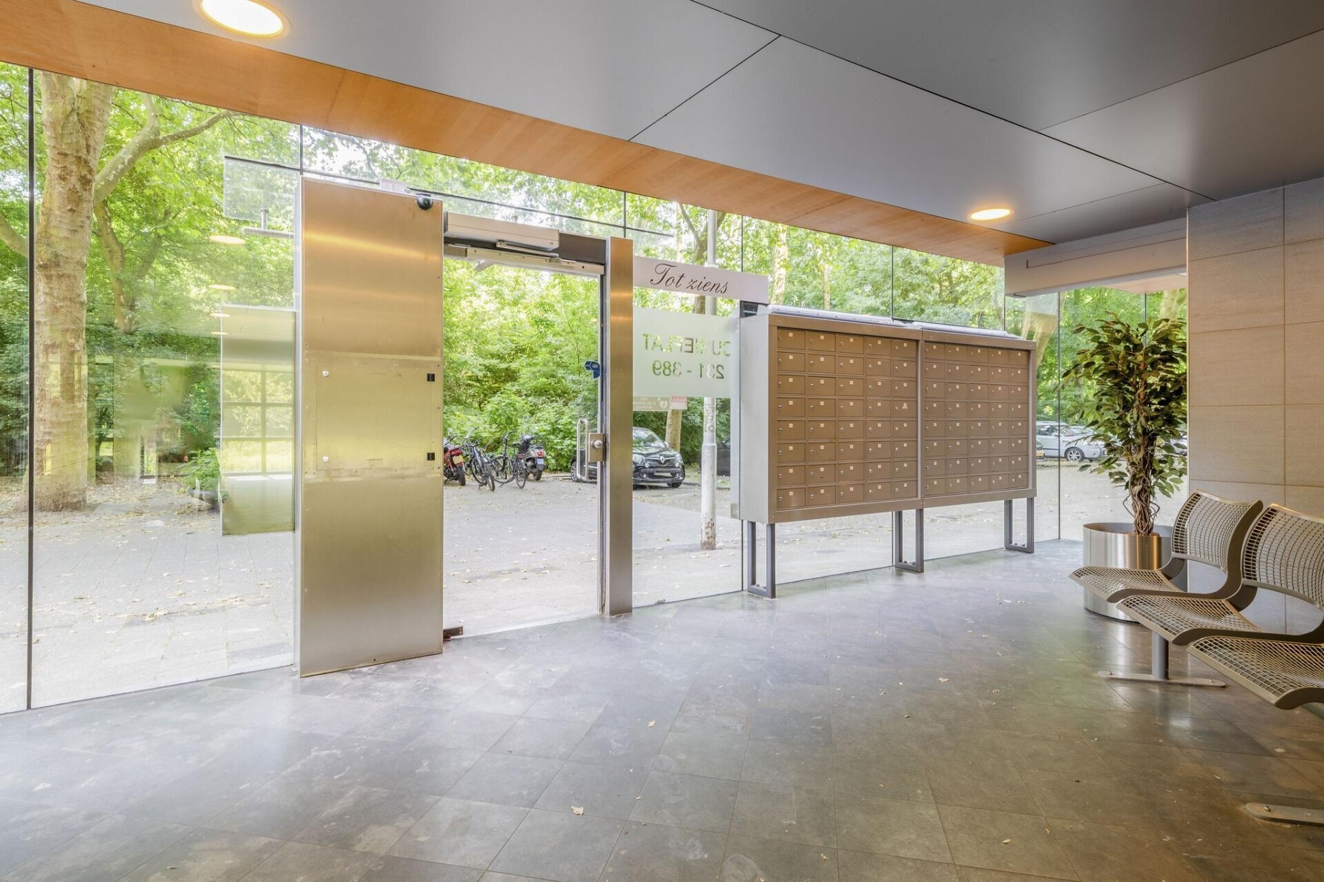 Afgesloten entree met bellentableau en brievenbussen. Vanuit de entree is er toegang tot de lift, het trappenhuis en tot de bergingen in de onderbouw. Middels de lift is er toegang tot de 6e verdieping waar het appartement zich bevindt.