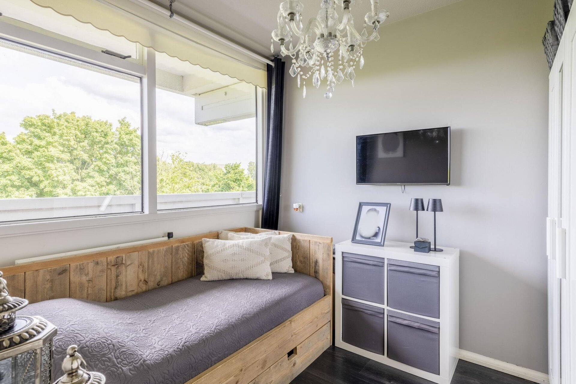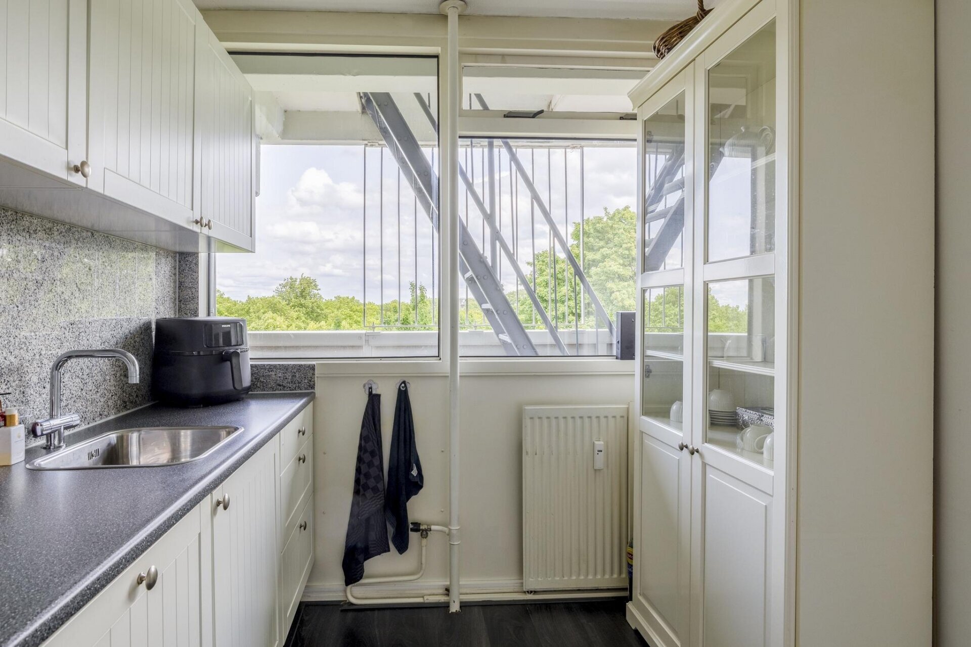 Entree, hal met toegang tot de keuken, welke zich aan de voorzijde bevindt. De dichte keuken is voorzien van diverse inbouwapparatuur. Vanuit de entree kom je uit in de hal waar de overige vertrekken bereikbaar zijn. Zo zijn er 2 slaapkamers, een inpandige berging, een badkamer en een separaat toilet. De badkamer is centraal gelegen en beschikt over een douche, wastafel met meubel en de opstelling voor de wasmachine. De woonkamer ligt aan de achterzijde van het complex. Hierdoor is er een fraai uitzicht over de binnentuin. Vanaf de woonkamer is er toegang tot het balkon, welke een zonnige ligging heeft op het westen. Dit maakt het mogelijk om de hele middag/avond van de zon te kunnen genieten.