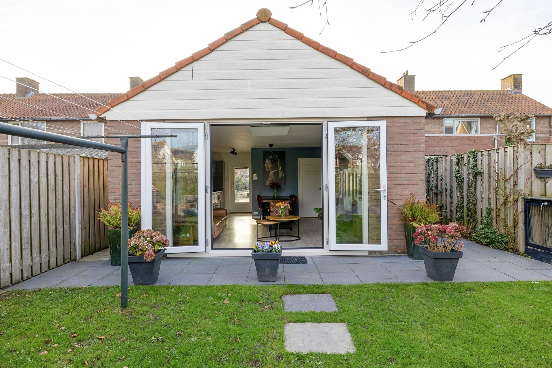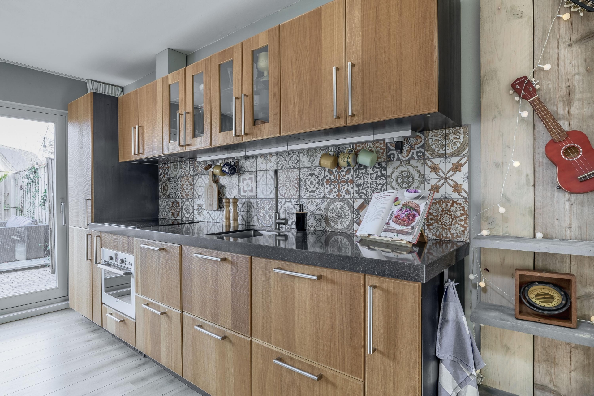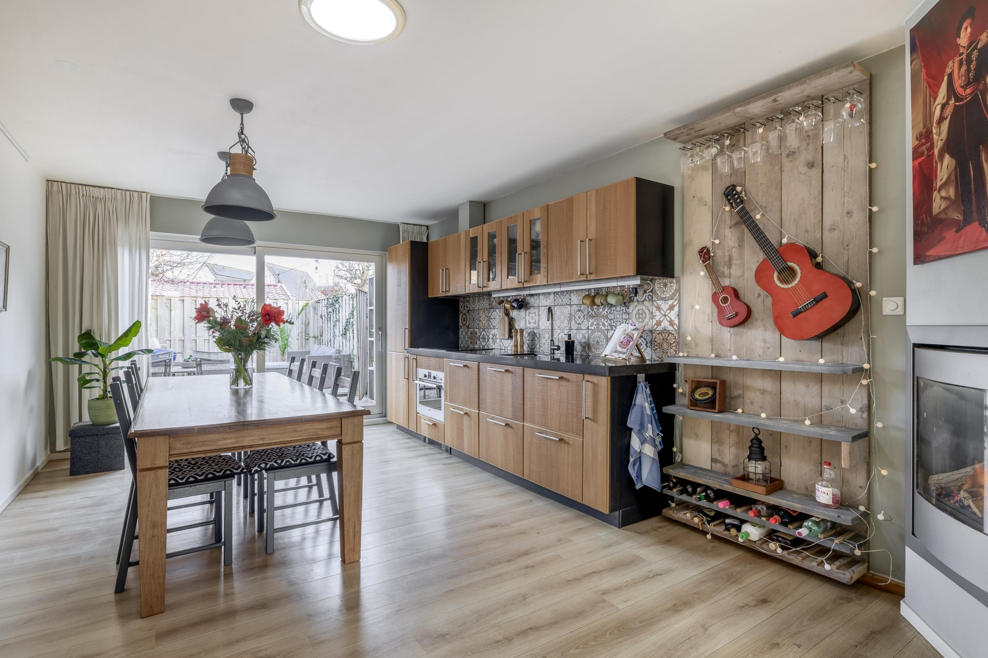 Bij binnenkomst valt meteen op hoe verzorgd en modern deze woning is. Via de hal met keurig en modern toilet v.v. hangend closet en trap naar eerste verdieping kom je in de lichte woonkamer met grote raampartijen en sfeervolle gashaard. De gezellige woonkeuken is aan de achterzijde en geeft uitzicht op de tuin. De moderne keuken (2016) is ruim, voorzien van de benodigde inbouwapparatuur en middels een schuifpui kom je in de achtertuin.