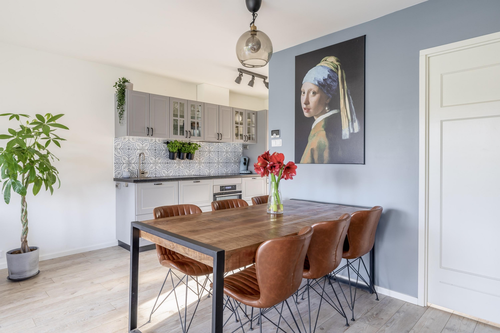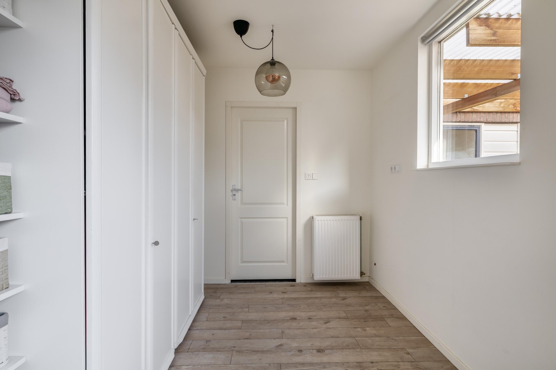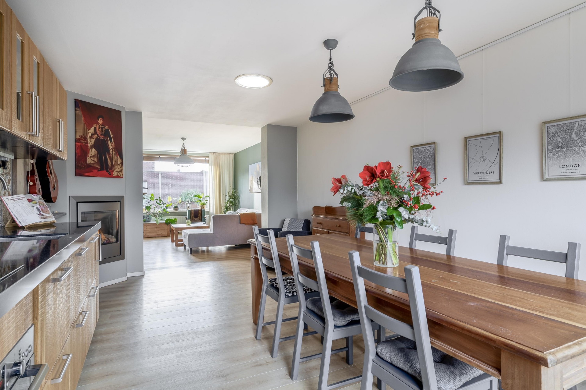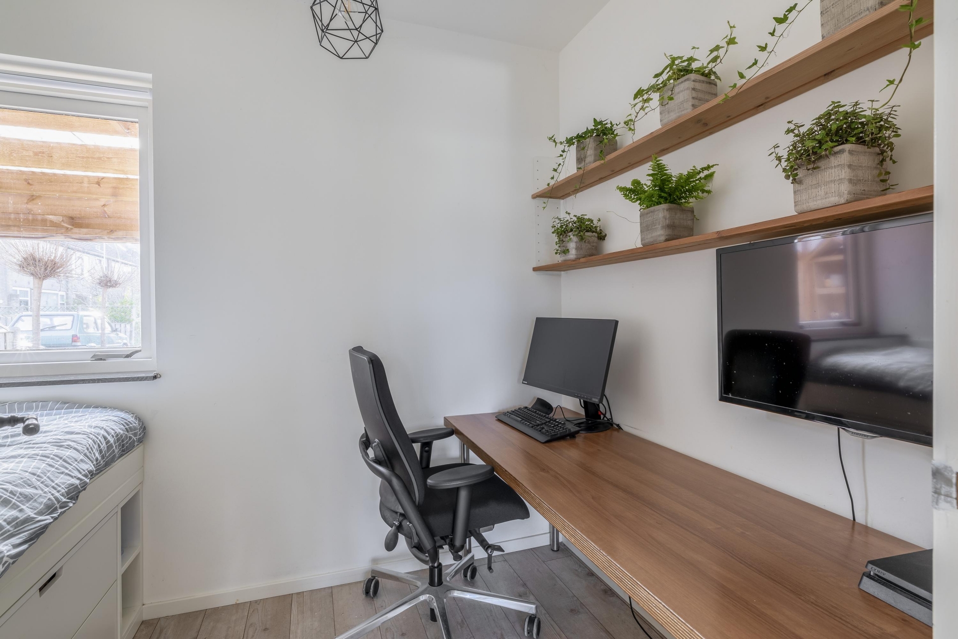 Bij binnenkomst valt meteen op hoe verzorgd en modern deze woning is. Via de hal met keurig en modern toilet v.v. hangend closet en trap naar eerste verdieping kom je in de lichte woonkamer met grote raampartijen en sfeervolle gashaard. De gezellige woonkeuken is aan de achterzijde en geeft uitzicht op de tuin. De moderne keuken (2016) is ruim, voorzien van de benodigde inbouwapparatuur en middels een schuifpui kom je in de achtertuin.
